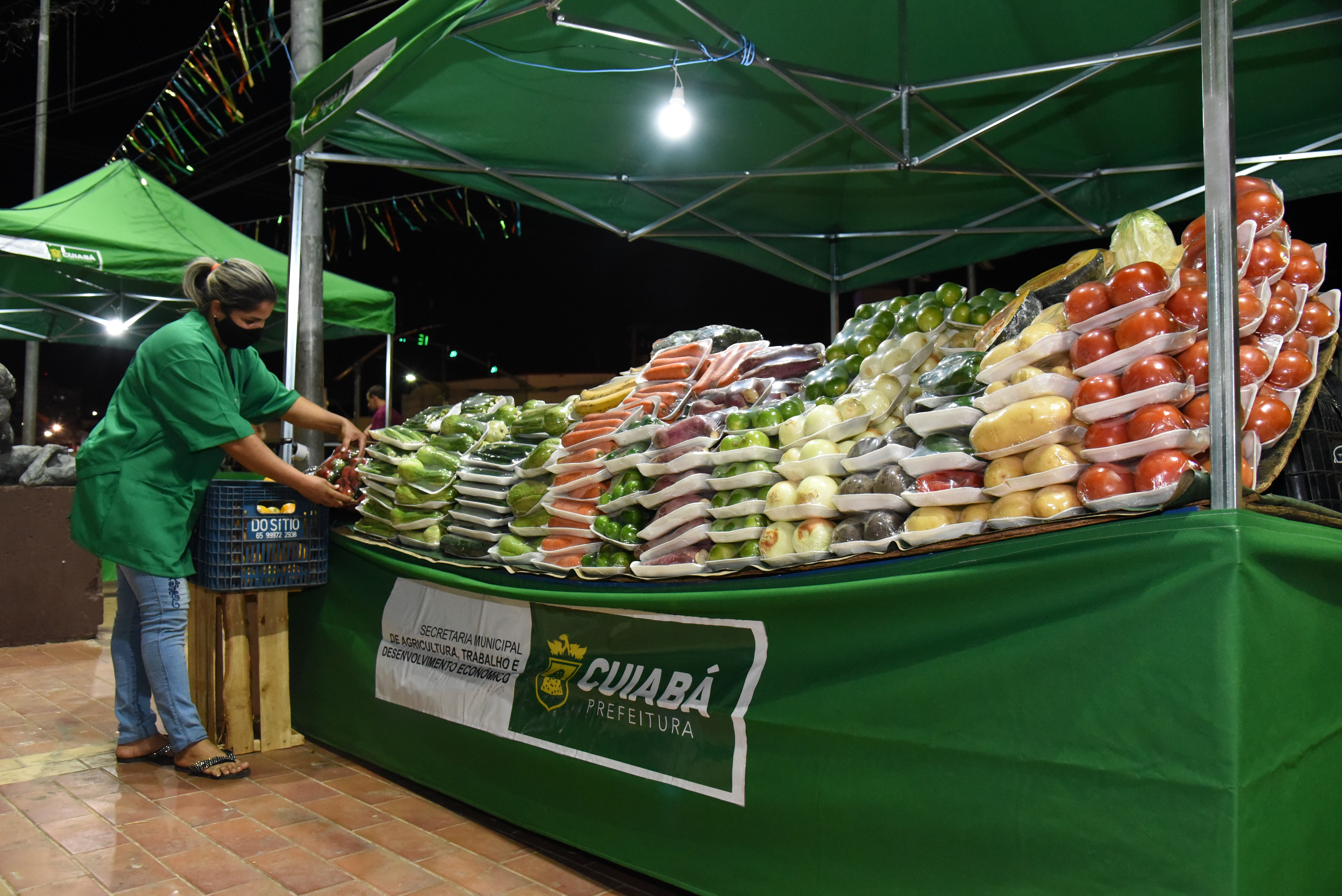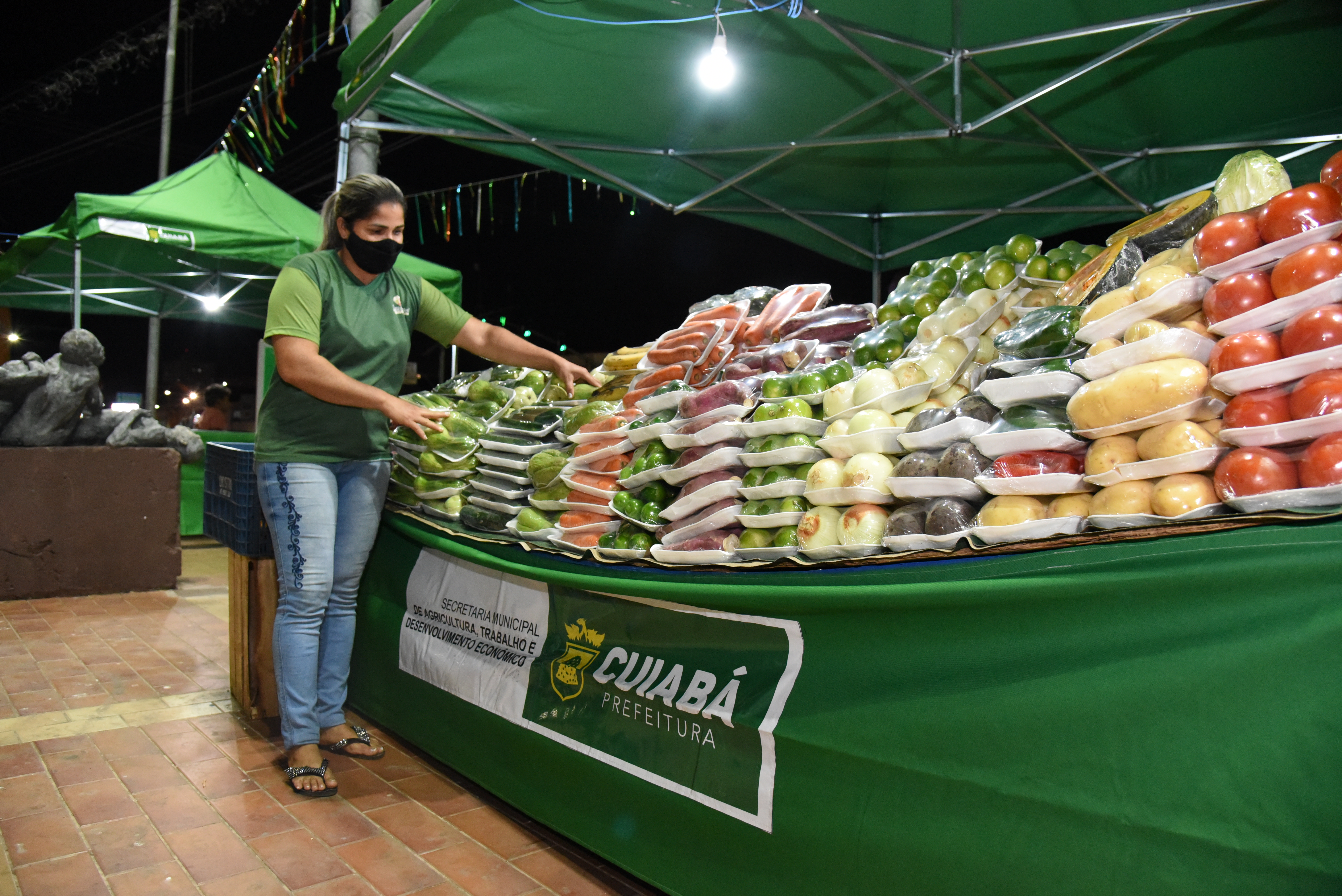 Barracas de legumes, frutas, verduras e comidas típicas preenchiam o espaço das praças Alberto Novis e Senhor dos Passos. Leide Laura, de 38 anos estava empolgada com a participação no evento. Feirante há 18 anos, ela começou fazendo uma diária como ajudante de uma das barracas no Mercado do Porto e pegou gosto pelo trabalho. Com ajuda do ex-patrão e da coordenadora do Mercado, Rosilma, hoje ela tem sua própria barraca, seus fornecedores e é uma dentre tantos profissionais que fomentam a cadeia produtiva da agricultura familiar em Cuiabá.