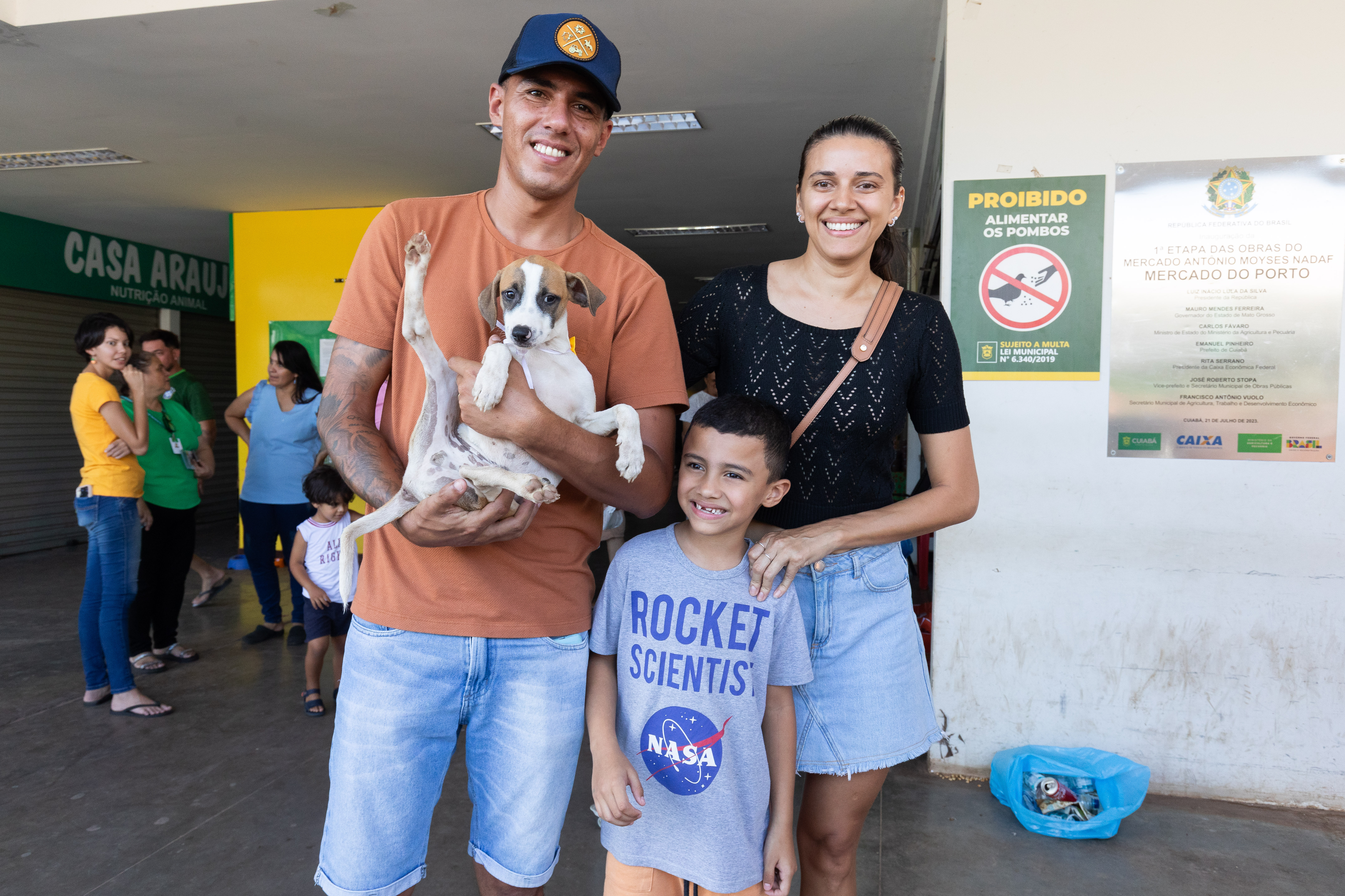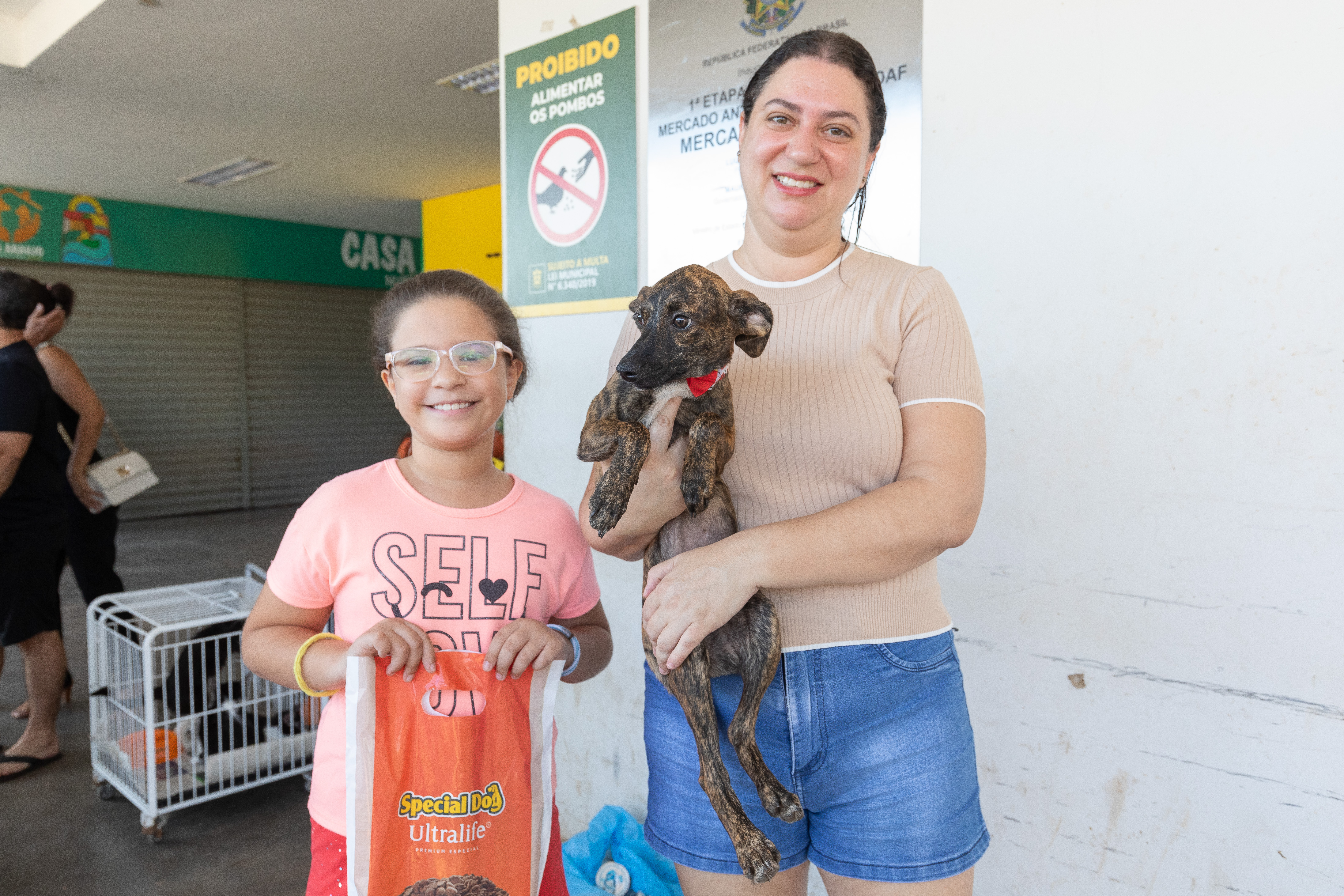 Vanderli Pinheiro Gomes é moradora do bairro Jardim Glória, em Várzea Grande, e adotou uma cachorrinha, a qual deu o nome de Ayla. “Faz muitos anos que meu cachorro morreu de velhice, tinha mais de 15 anos. E desde então, não tínhamos outro. Minha filha, de 7 anos sempre pedia um cãozinho. No domingo passado estivemos no Mercado do Porto e procurei saber quando ou onde poderia adotar uma fêmea. Me disseram que teria a feira neste domingo, e viemos. Nossa intenção sempre foi adotar uma fêmea e era a única que tinha, adotamos”, explicou Vanderli.