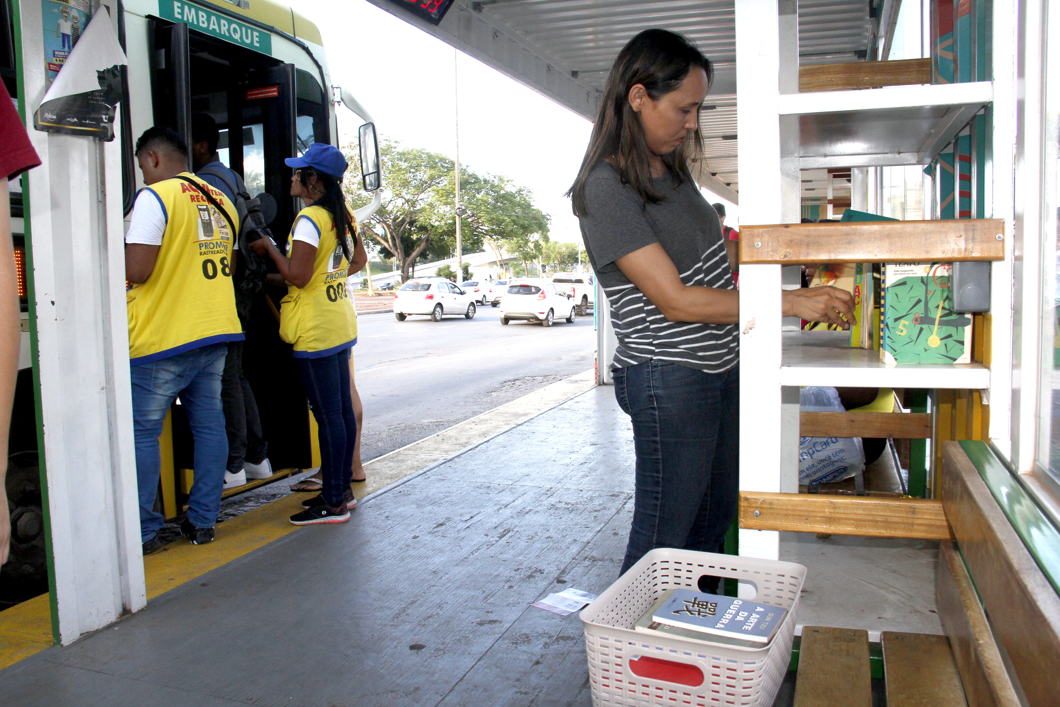 Foi então que, no caminho entre a residência e o trabalho, a bióloga notou que o novo modelo de embarque e desembarque de passageiros, edificado pela Prefeitura de Cuiabá na Avenida Historiador Rubens de Mendonça (Av. do CPA), possuía um espaço voltado especificamente para este fim. Com o findar do expediente, Luciana não teve dúvidas: colocou a cesta de livros no carro, levou-os até a inovadora estrutura e, um a um, organizou os exemplares nas prateleiras.
