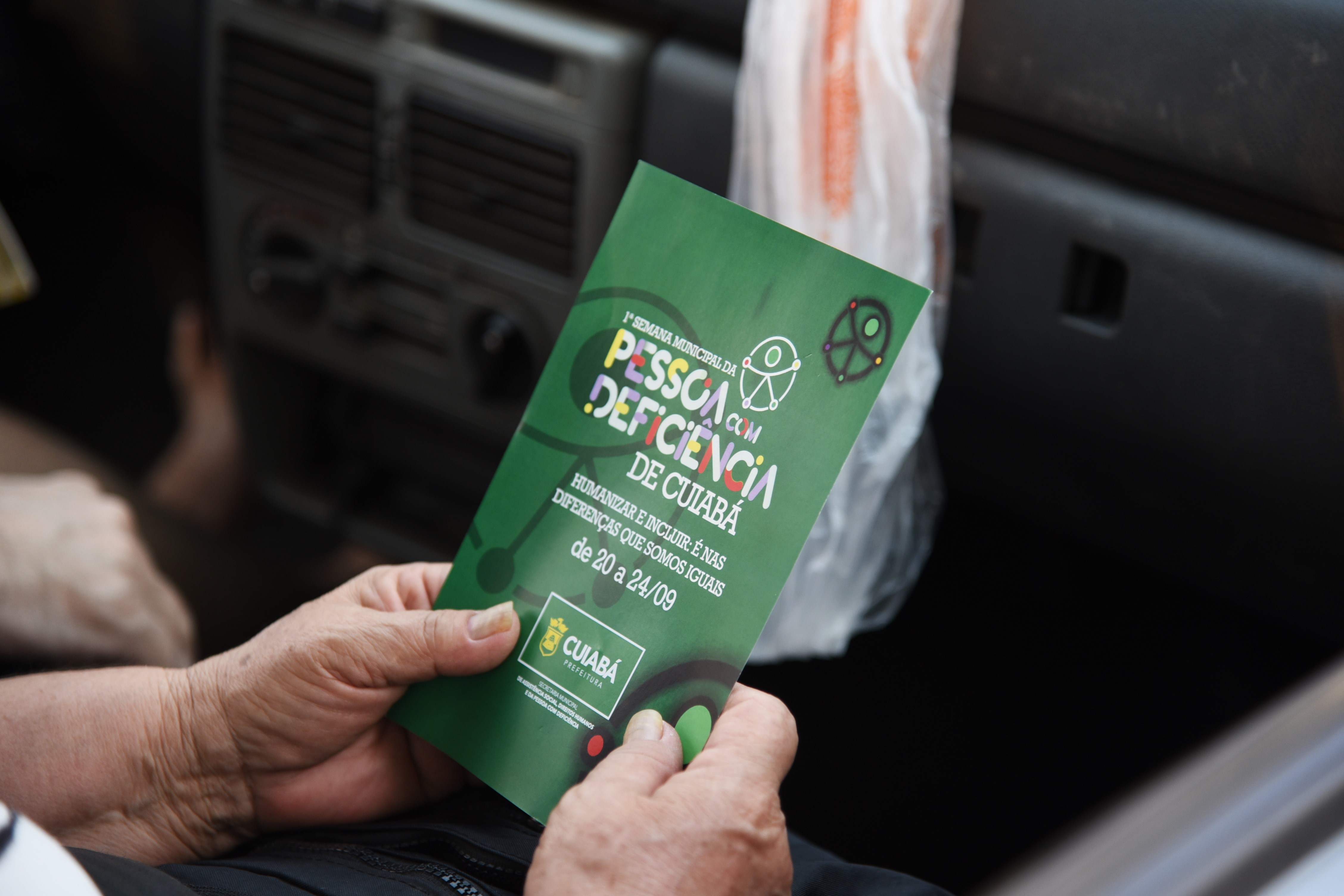“No trânsito todos somos iguais - Deficientes ou não!”. A mensagem de conscientização foi ratificada pela Secretaria de Assistência Social, Direitos Humanos e da Pessoa com Deficiência durante blitz informativa realizada na quinta-feira (23), nas proximidades da Praça Luiz Albuquerque, no bairro Porto, em Cuiabá.