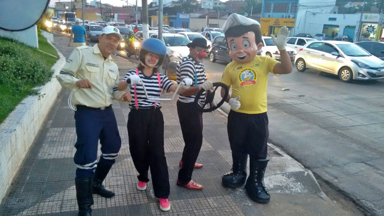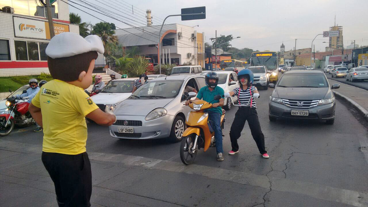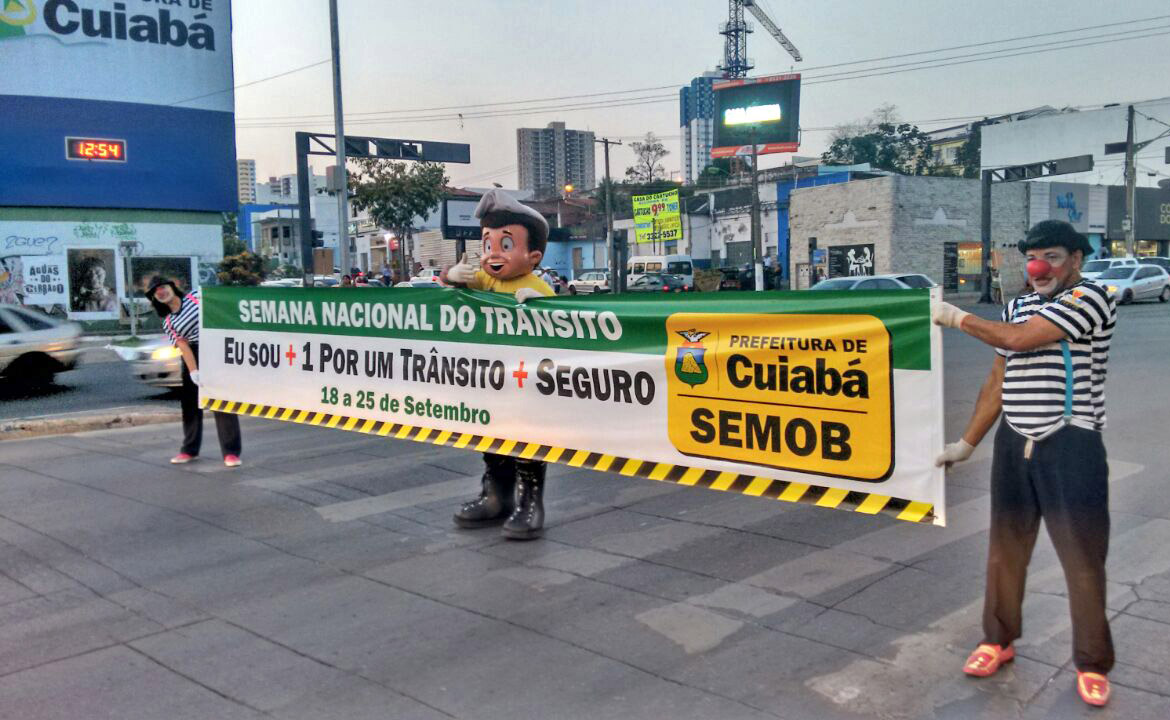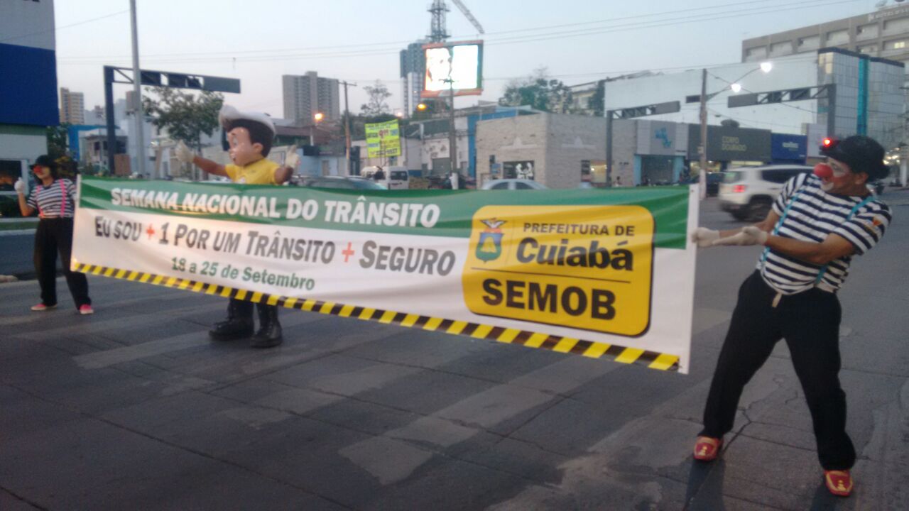 Os agentes de trânsito realizaram na tarde desta quarta-feira (21), entre as Avenidas Historiador Rubens de Mendonça e Mato Grosso, uma blitz educativa, com participação do Grupo Teatral Cena Onze e o Amarelito, que auxiliaram na abordagem dos condutores. A ação faz parte das atividades em alusão à Semana Nacional do Trânsito e orientou sobre o riscos das más condutas no trânsito.