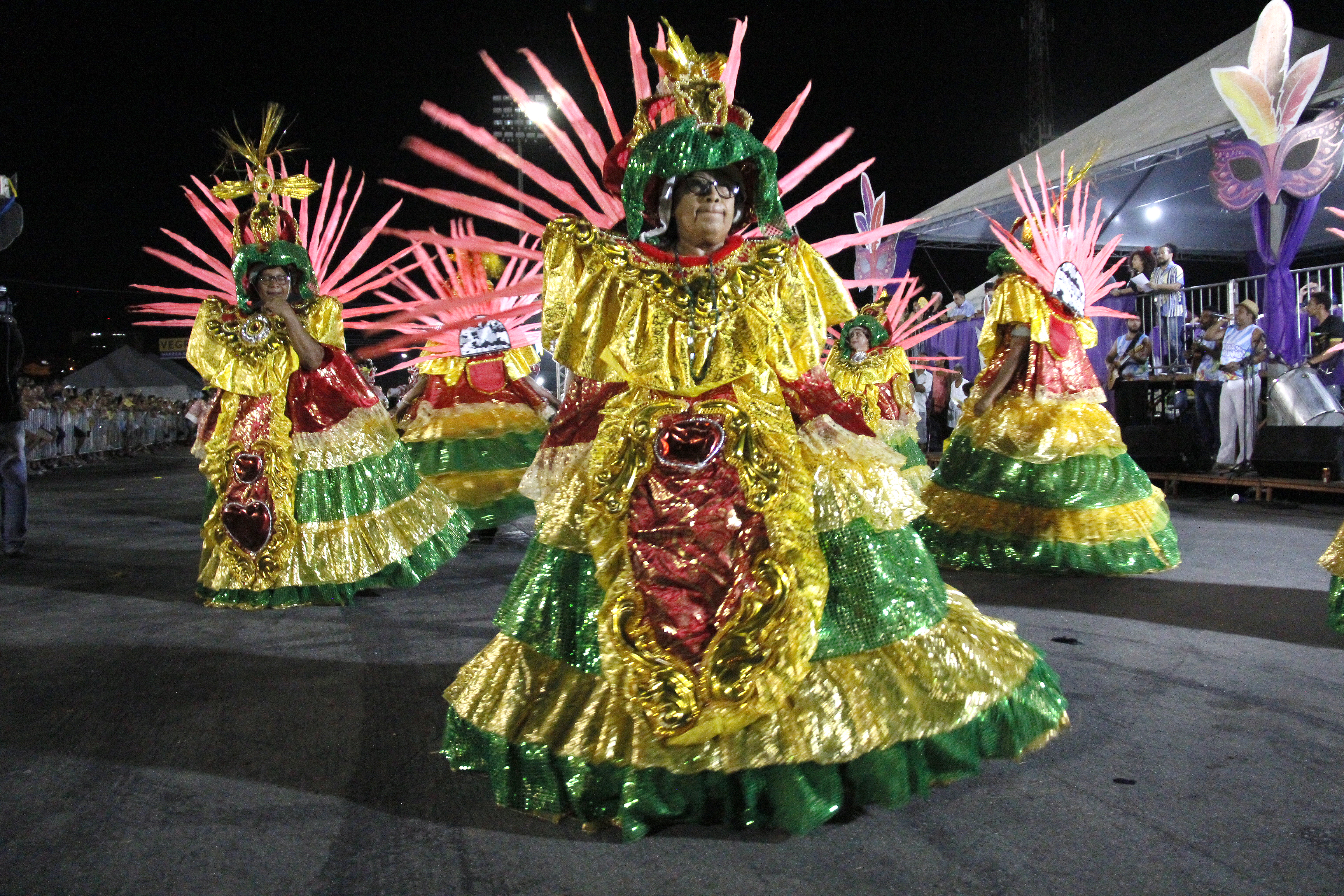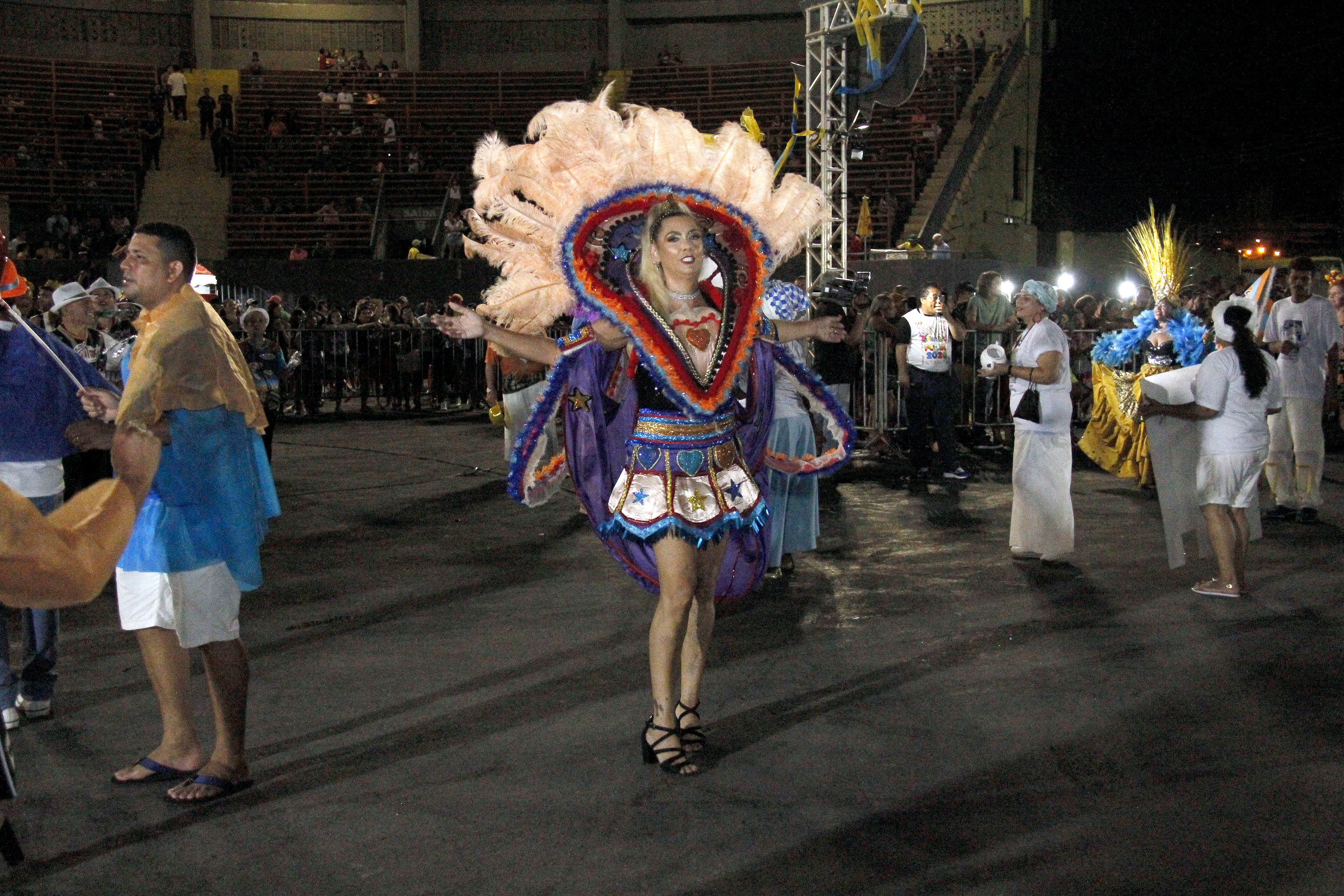 No pátio em frente da arquibancada os blocos Vaidade, Unidos do “Carumbé”, Império de Casa Nova, Unidos do Araés, Melados e Boca Suja desfilaram ao som de seus respectivos samba enredo. Cada unidade contou com 60 minutos para desfilar e apresentar alegorias aos jurados. A abertura do desfile ficou por conta dos blocos “Divas” e “Bloco Plus Samba”. “O carnaval está maravilhoso e empolgante. É importante incentivar o carnaval em Cuiabá, aqui também tem tradição e cultura e tudo isso pode estar presente nessa festa”, explicou a foliã, Tânia da Silva Santana após acompanhar o desfile dos blocos.
