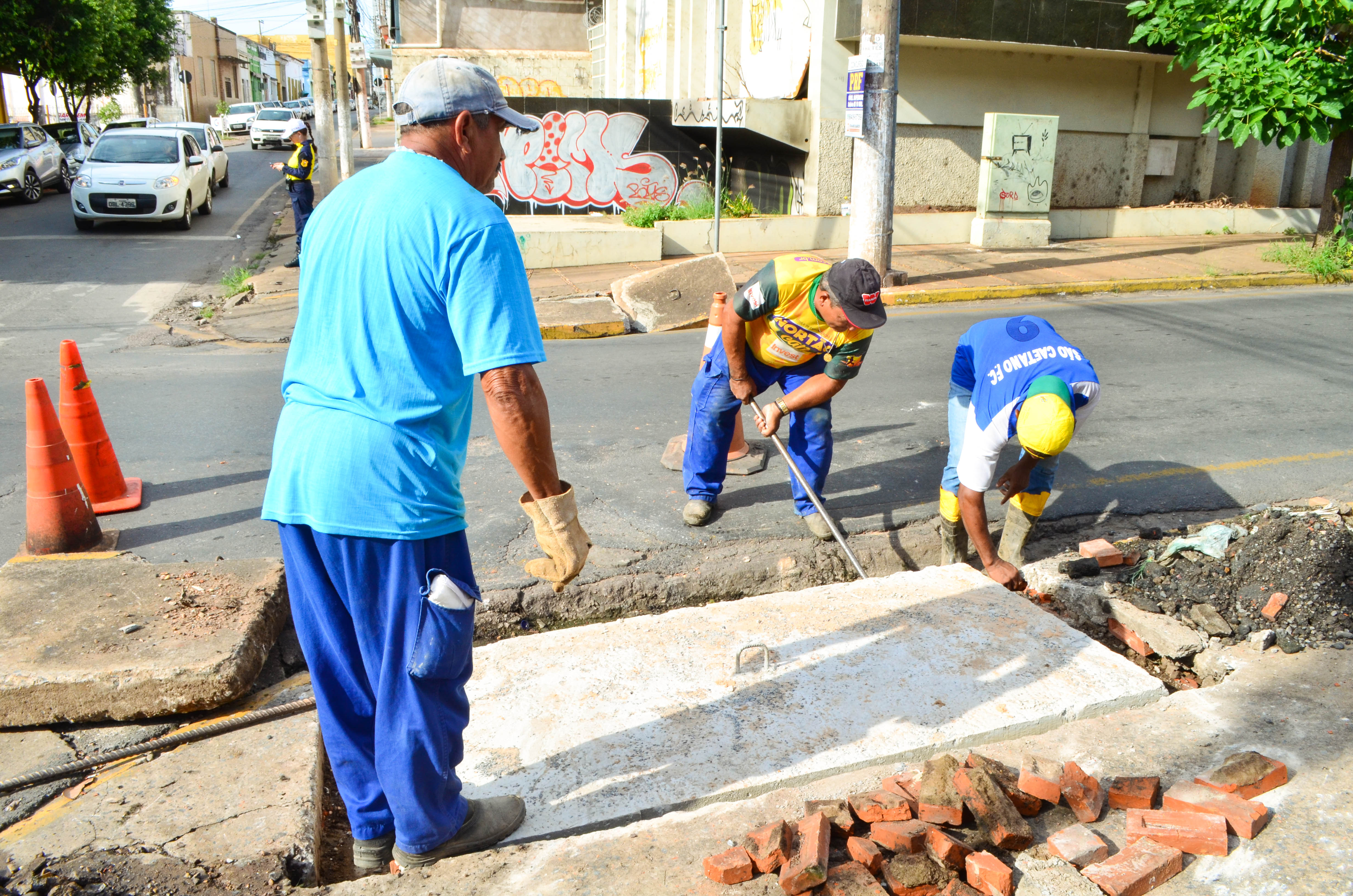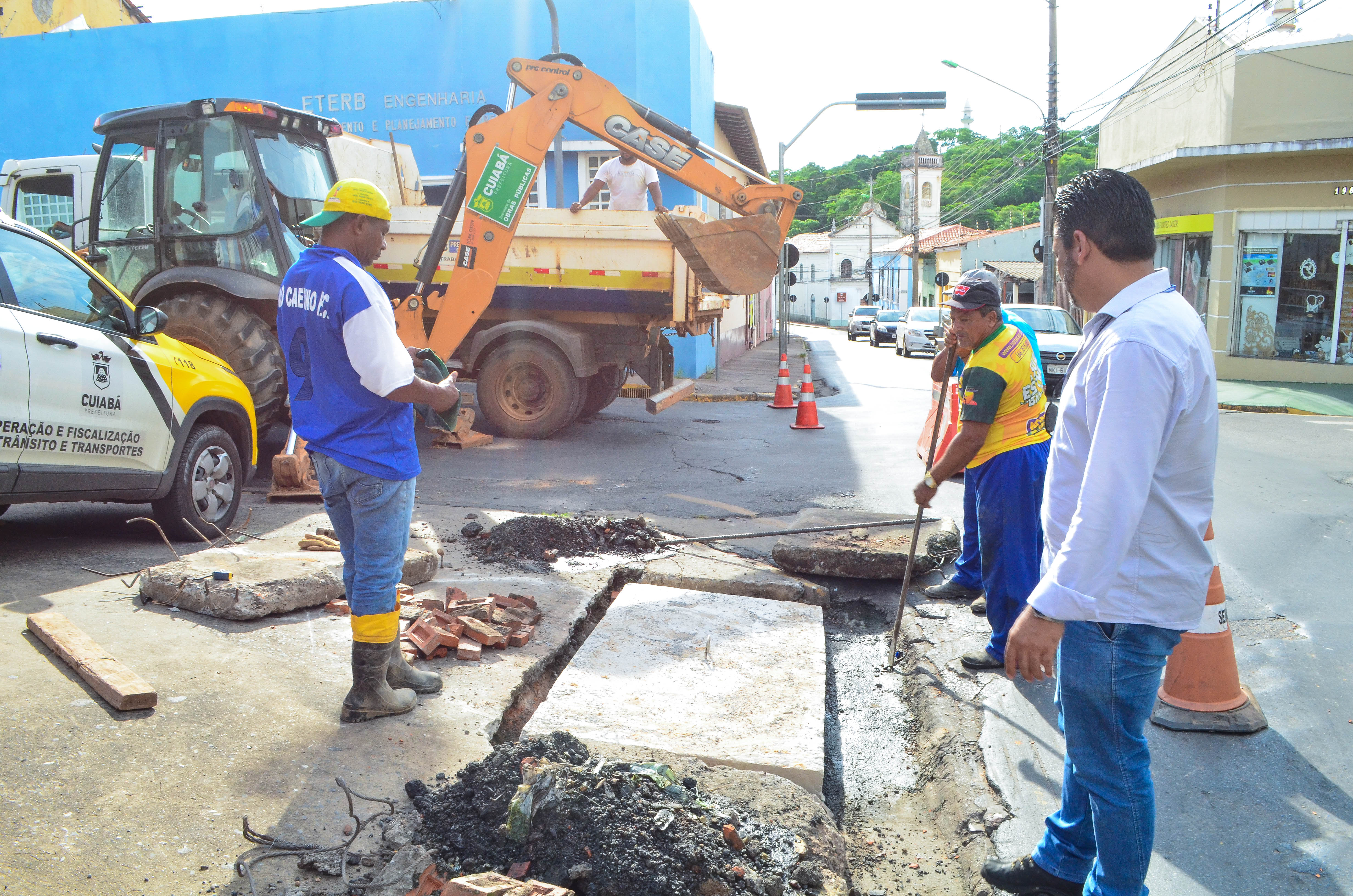 A Prefeitura de Cuiabá realizou nesta sexta-feira (11) mais uma ação de manutenção de bocas de lobo na área central. Desta vez, o trabalho foi executado nos pontos de escoamento de águas pluviais situados no entroncamento entre as Ruas Pedro Celestino e Voluntários da Pátria. A operação, coordenada pela Secretaria Municipal de Obras Públicas, atendeu quatro estruturas com os serviços de limpeza completa e colocação de novas tampas, visto que as antigas estavam danificadas.