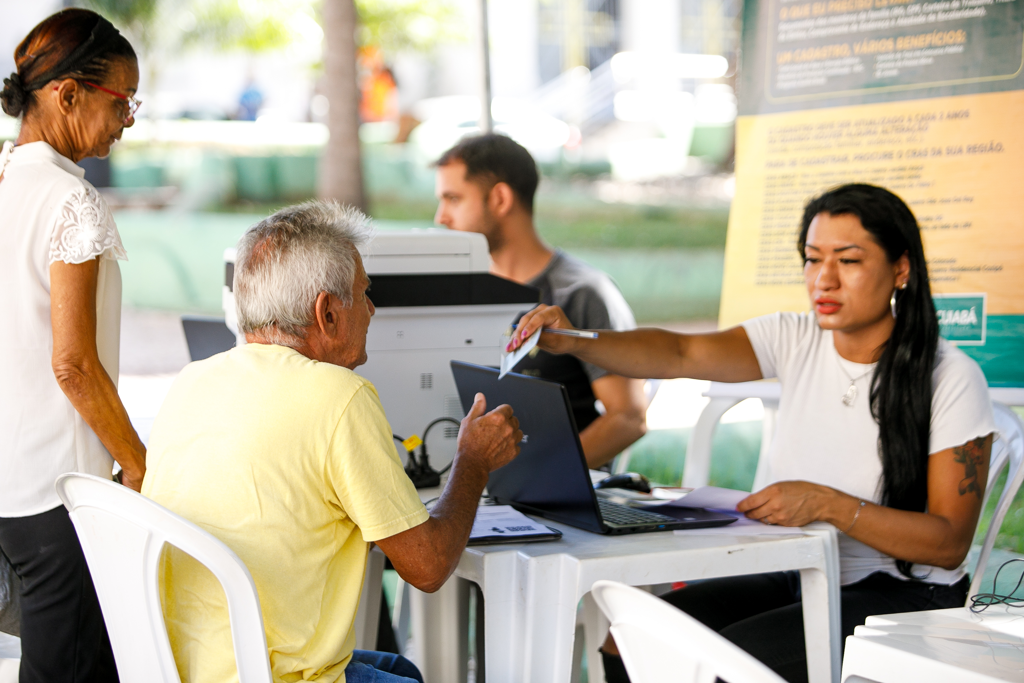 Começou na segunda-feira (26), na Praça da República, o cadastramento oficial de comerciantes ambulantes que atuam na região central de Cuiabá. A ação é coordenada pela Secretaria Municipal de Desenvolvimento Econômico e Turismo, em parceria com a Secretaria de Ordem Pública (Sorp) e diversas instituições.