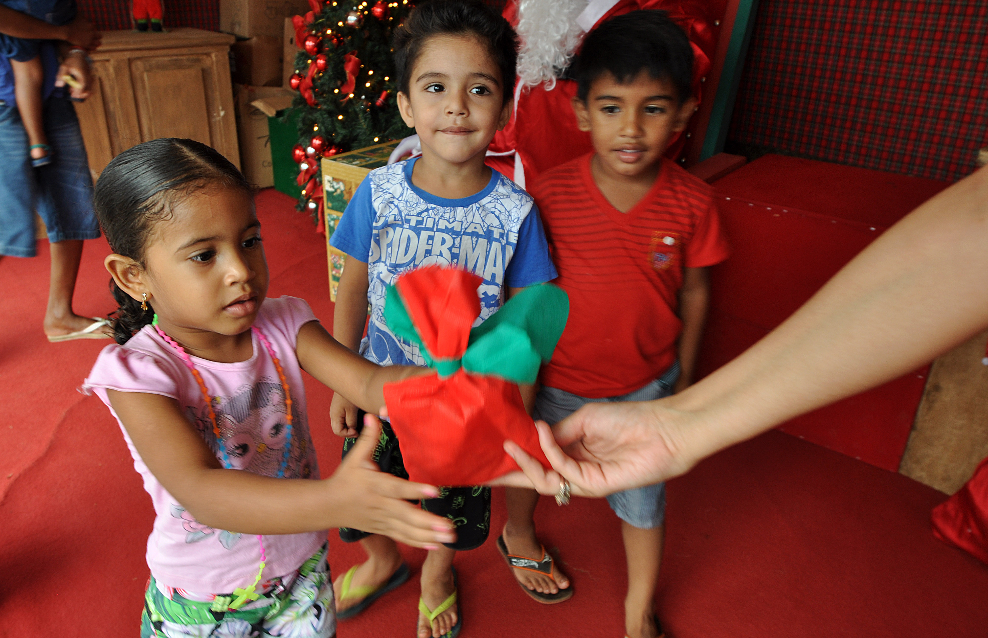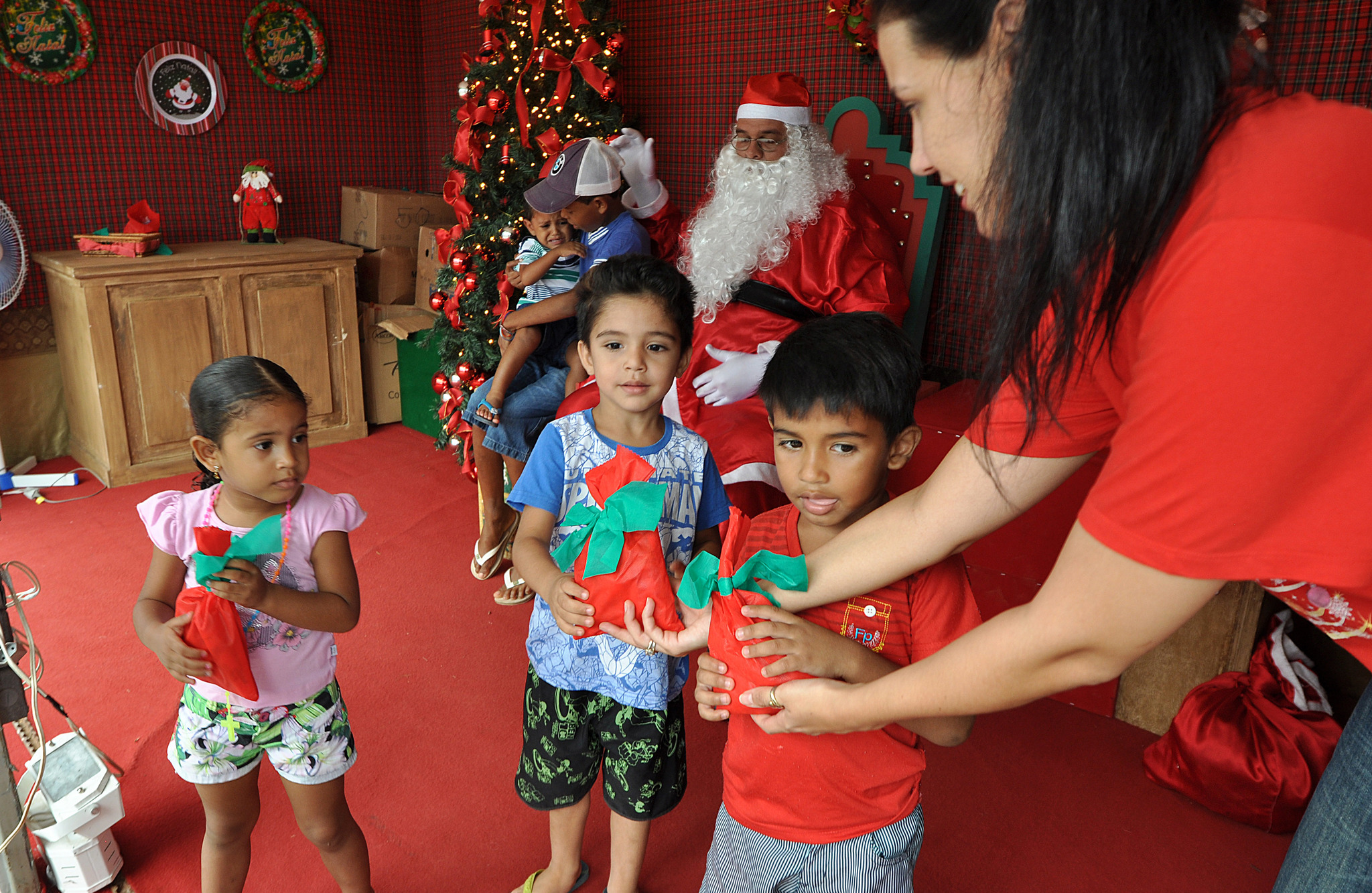 “A sensação de ver as crianças encantadas com o Papai Noel é muito boa. Elas se alegram e muitas vezes é a única oportunidade que elas terão de conhecê-lo, já que muitas famílias não possuem condições de levar os filhos aos shoppings da cidade”, conta Rejane, que trouxe a filha Maria Vitória, de 4 anos, e mais quatro sobrinhas.