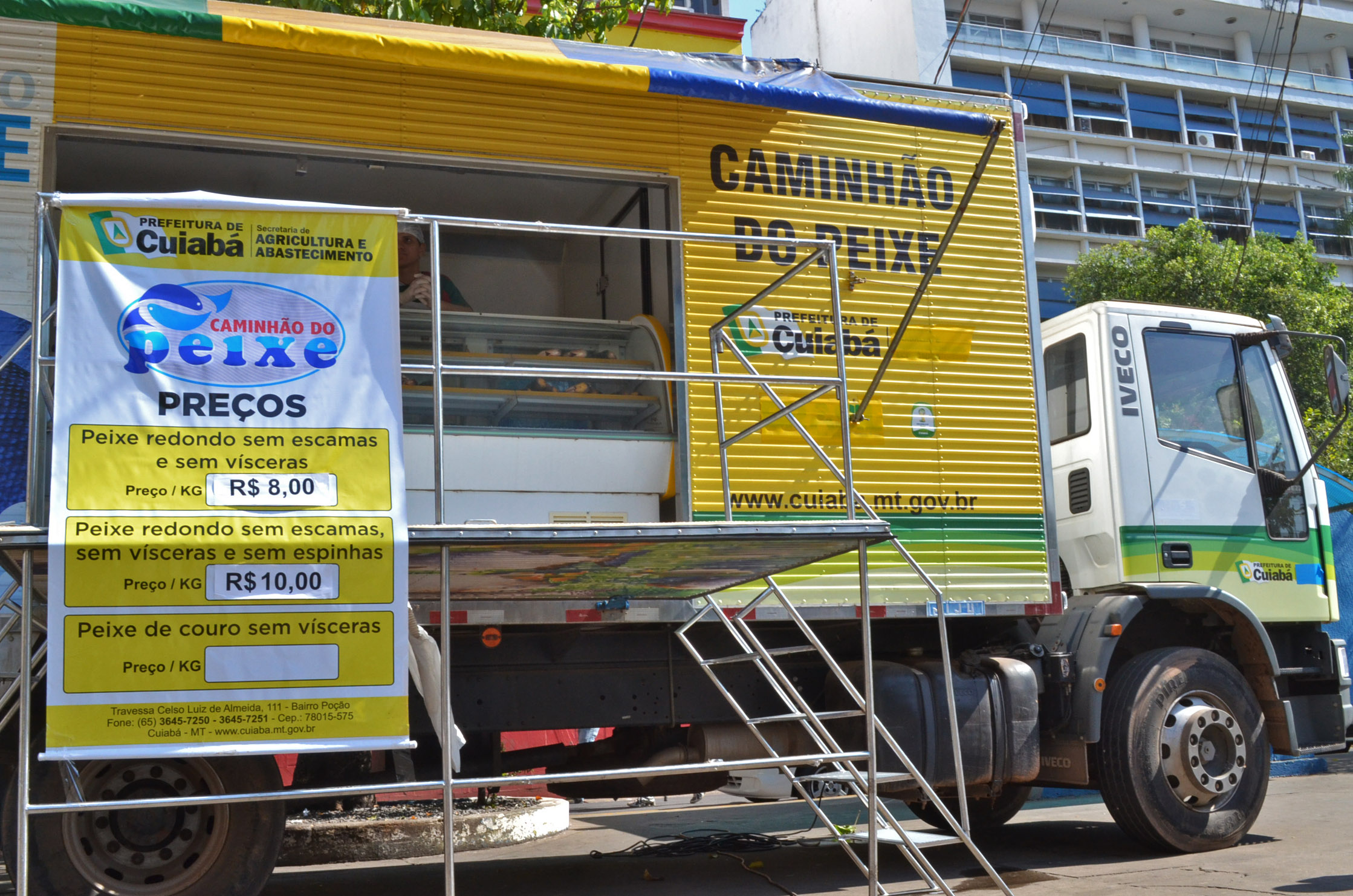 Duas espécies de pescado, pintado e tambatinga, estão sendo comercializadas, até amanhã, sexta-feira (28), no Caminhão do Peixe, estacionado na Praça Alencastro, em frente à Prefeitura de Cuiabá. O atendimento é das 8 às 18h. Esta é a 31ª edição do Caminhão do Peixe na gestão do prefeito Mauro Mendes.