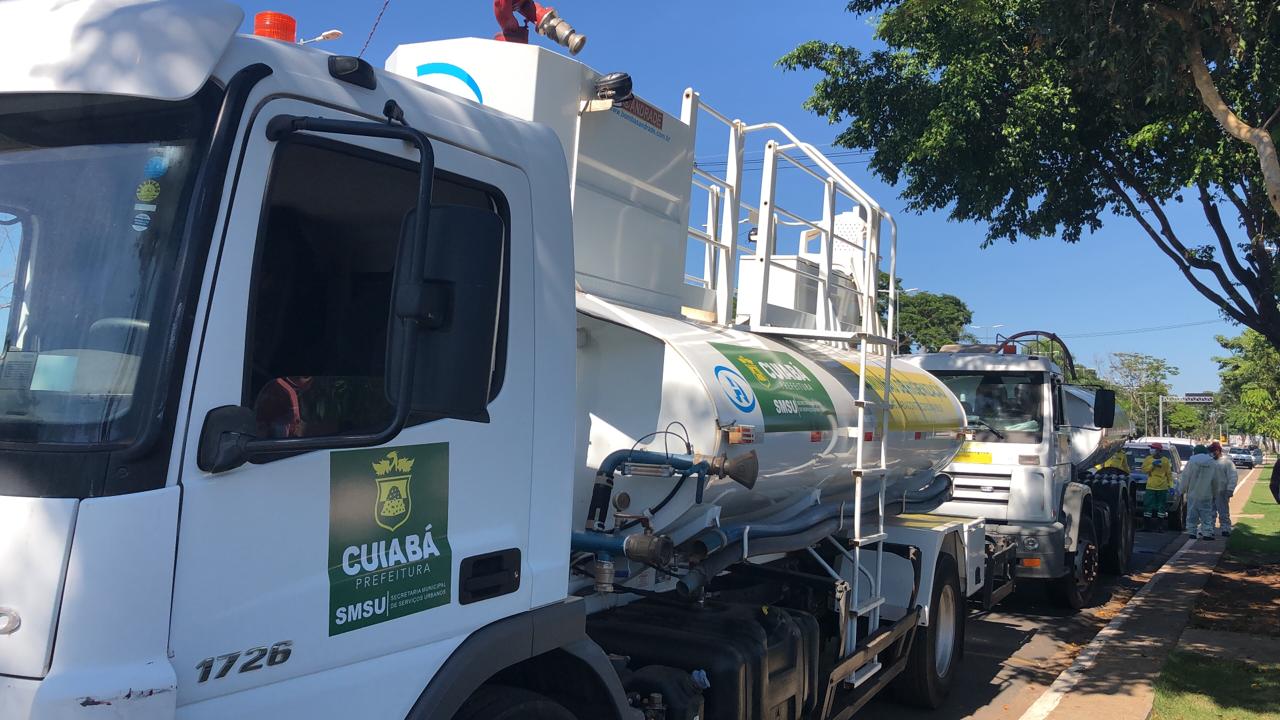 A Prefeitura de Cuiabá inicia - nessa semana - uma segunda etapa dentro da operação de higienização e desinfecção de espaços públicos. Agora, além da utilização dos seis borrifadores, os trabalhos, que auxilia na contenção do avanço do novo coronavírus (Covid-19), passa a contar com dois caminhões-pipa.