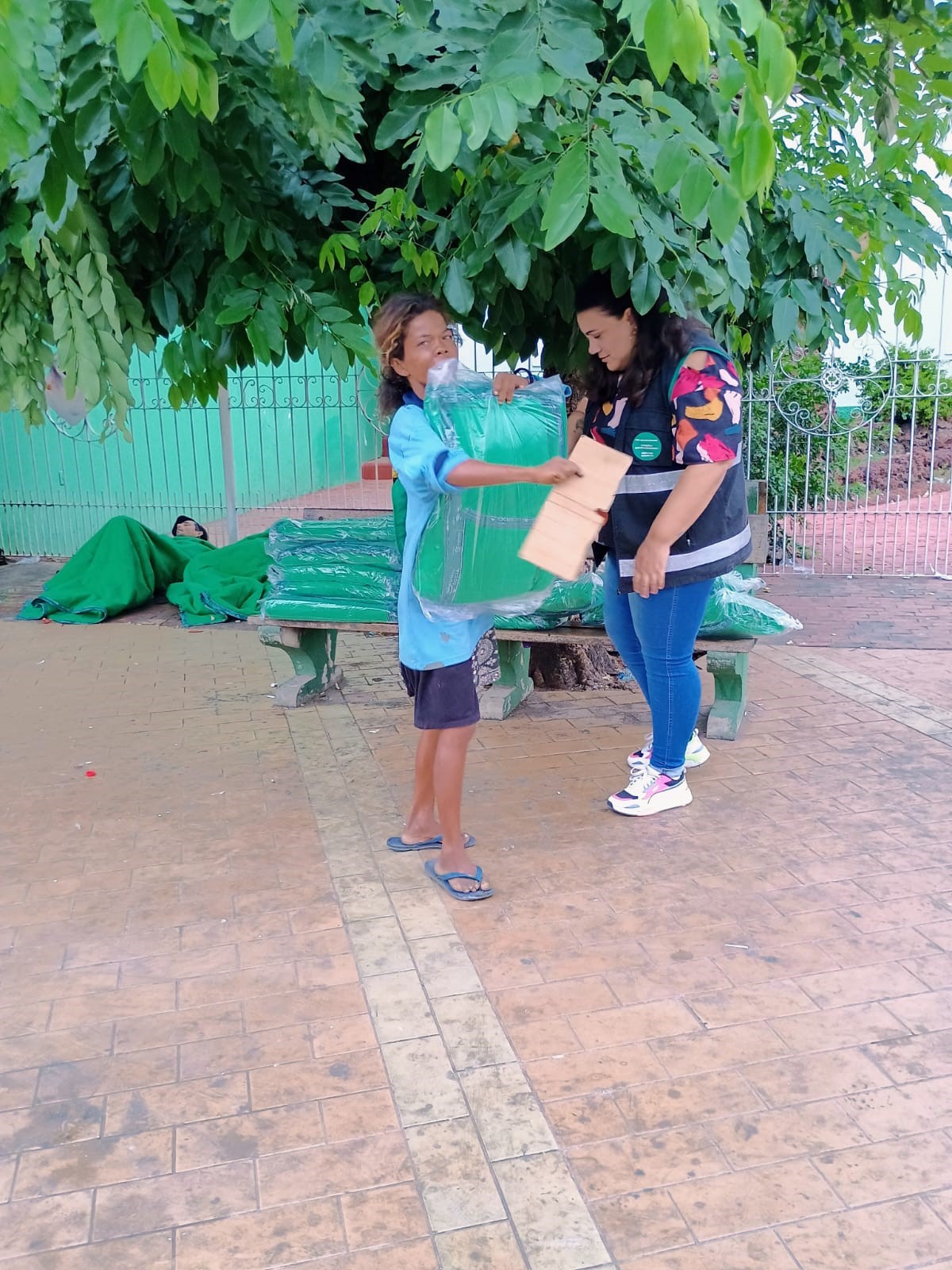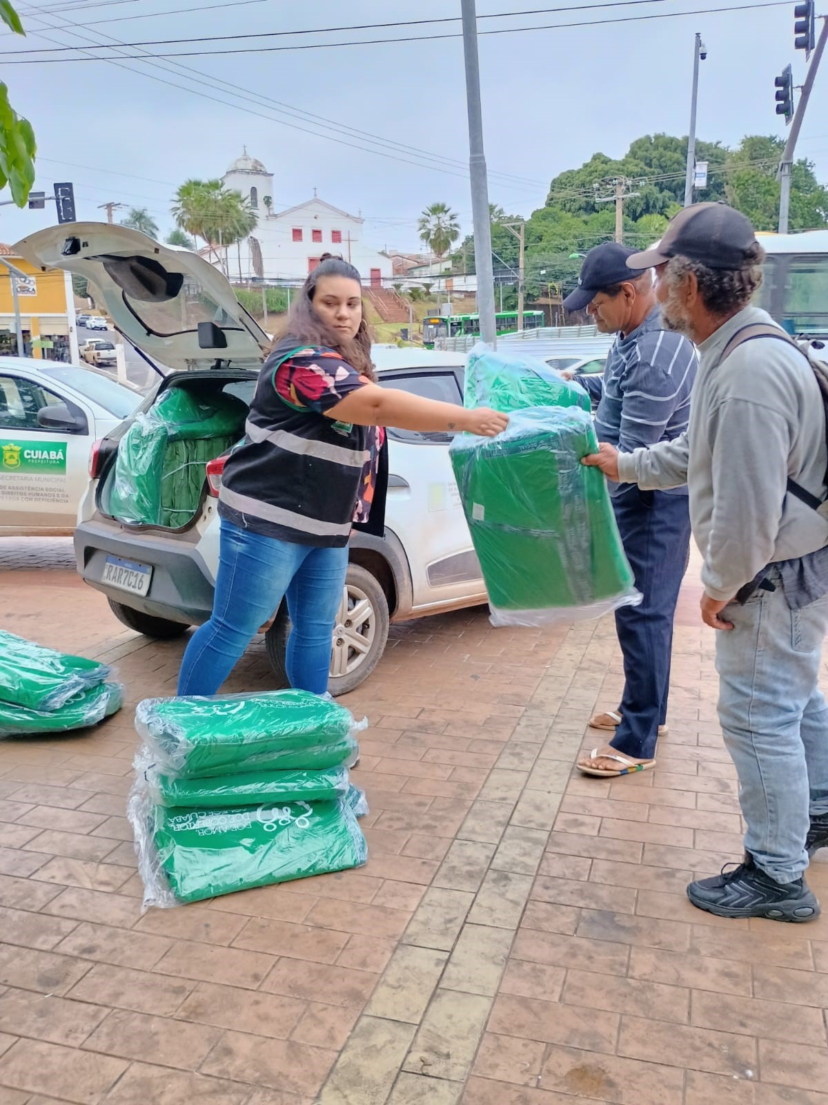 Campanha Aquece Cuiabá-Assistência Social distribui mais 100 cobertores à população em situação de rua com a chegada de nova frente fria
