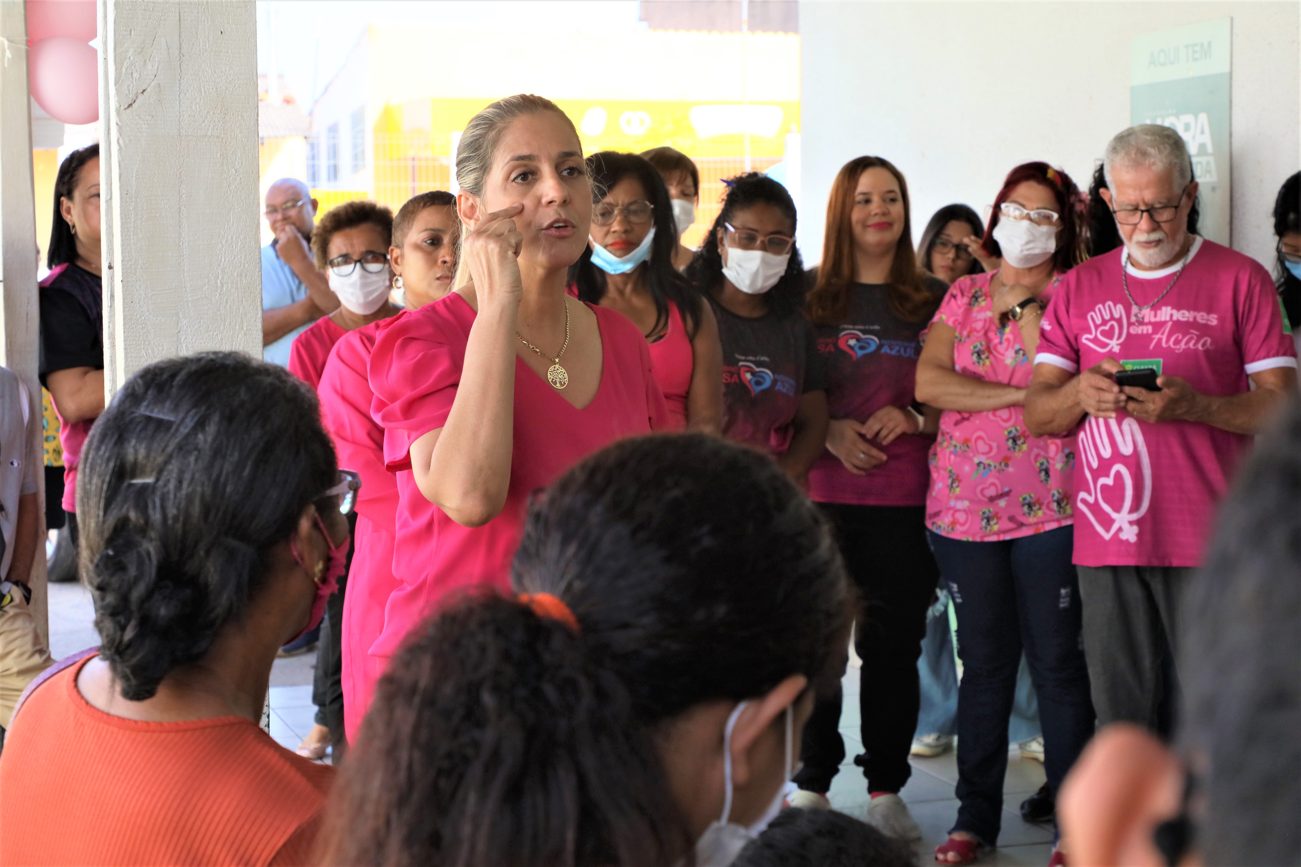 “O fato de vocês estarem aqui hoje demonstra que estão buscando o autocuidado. A mulher cuida de tudo dentro de casa: dos filhos, do marido, da mãe, da sogra, mas às vezes esquecem de se cuidar também. Se vocês não se cuidarem, não conseguirão cuidar de ninguém. Não apenas no Outubro Rosa, mas todos os dias da vida de vocês. Hoje eu tenho uma doença autoimune e sei que fui responsável pela minha doença, porque não me cuidei. Trabalhava em 3 lugares, às vezes não almoçava, não ia descansar, levava trabalho para casa atendendo online e não cuidava de mim. Se eu tivesse prestado atenção aos primeiros sinais, talvez a doença não tivesse evoluído tanto e causado sequelas em mim. Por isso é muito importante que vocês se cuidem, prestem atenção a qualquer mudança no seu corpo e procurem atendimento médico”, enfatizou a psicóloga.