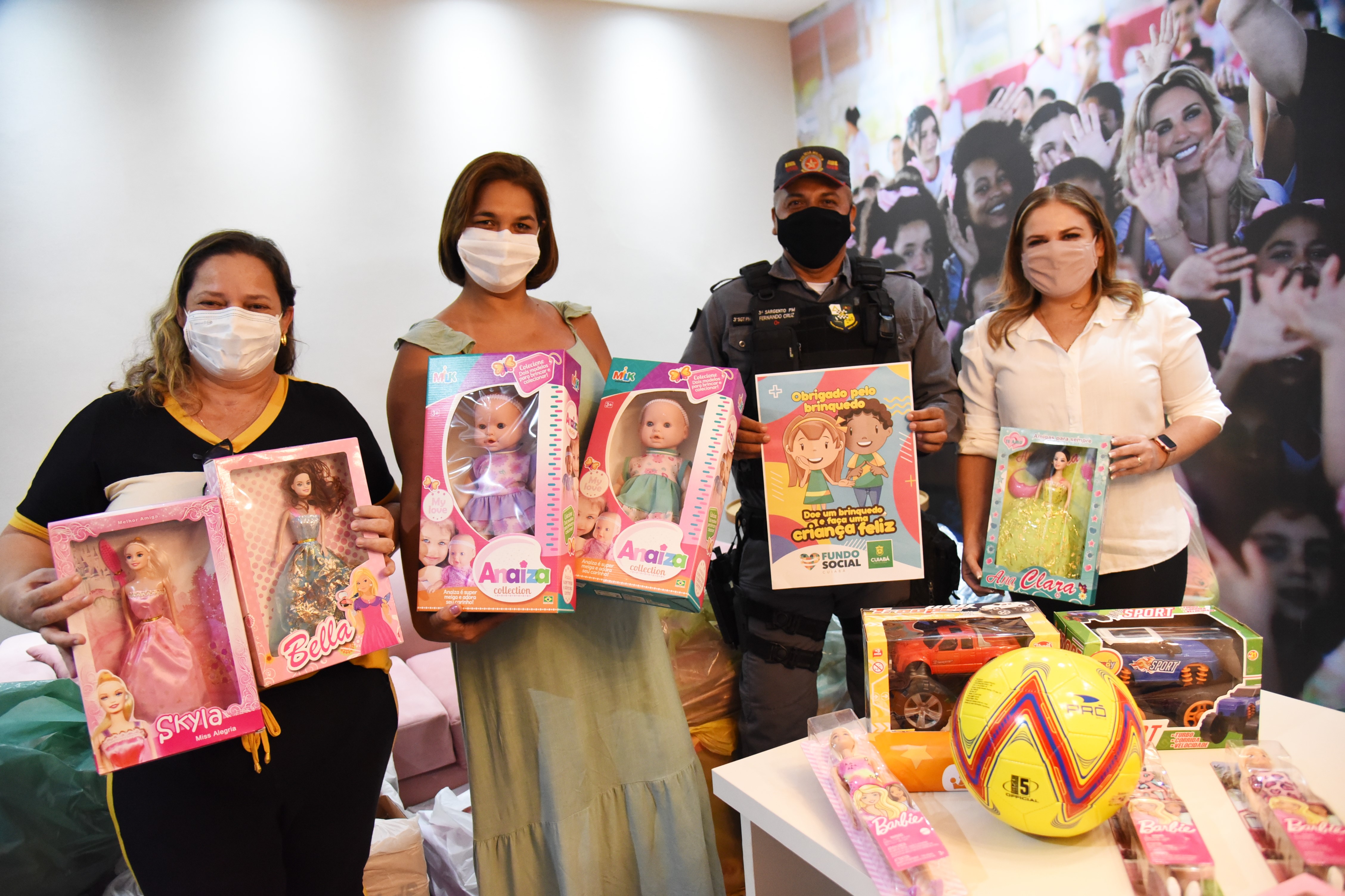 Bonecas, bolas e carrinhos irão fomentar sorrisos. Os brinquedos foram arrecadados na campanha “Doe um brinquedo e faça uma criança feliz”, ação organizada pelo Fundo Social Cuiabá ligado ao Núcleo da Primeira-Dama de Cuiabá, Márcia Pinheiro. A iniciativa conta com a parceria da