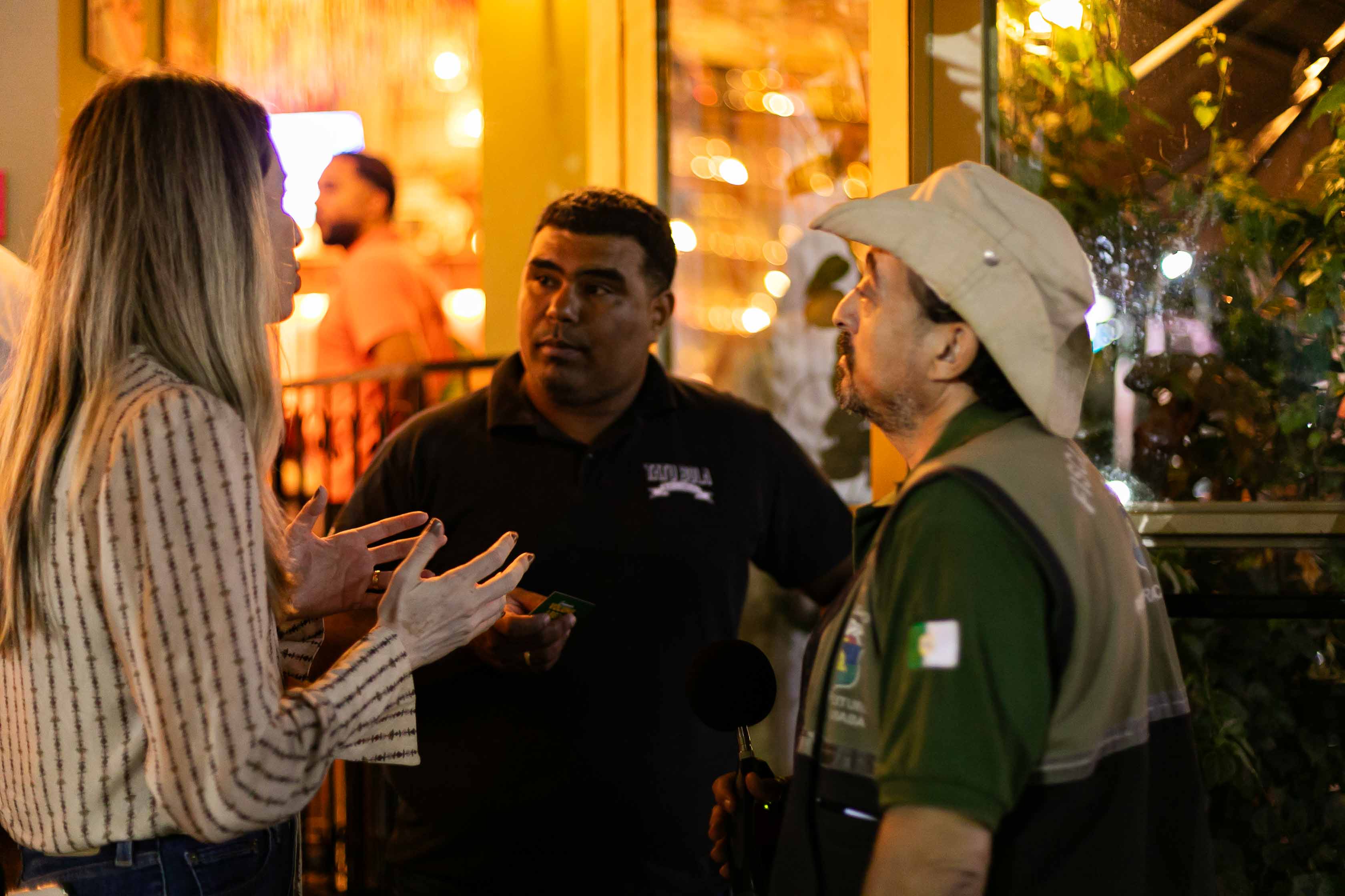 A secretária municipal de Ordem Pública, Juliana Palhares, acompanhada de quatros fiscais, compareceram na Praça Popular para orientar comerciantes a manter as atividades econômicas com músicas ao vivo. Porém, cumprindo a legislação municipal.