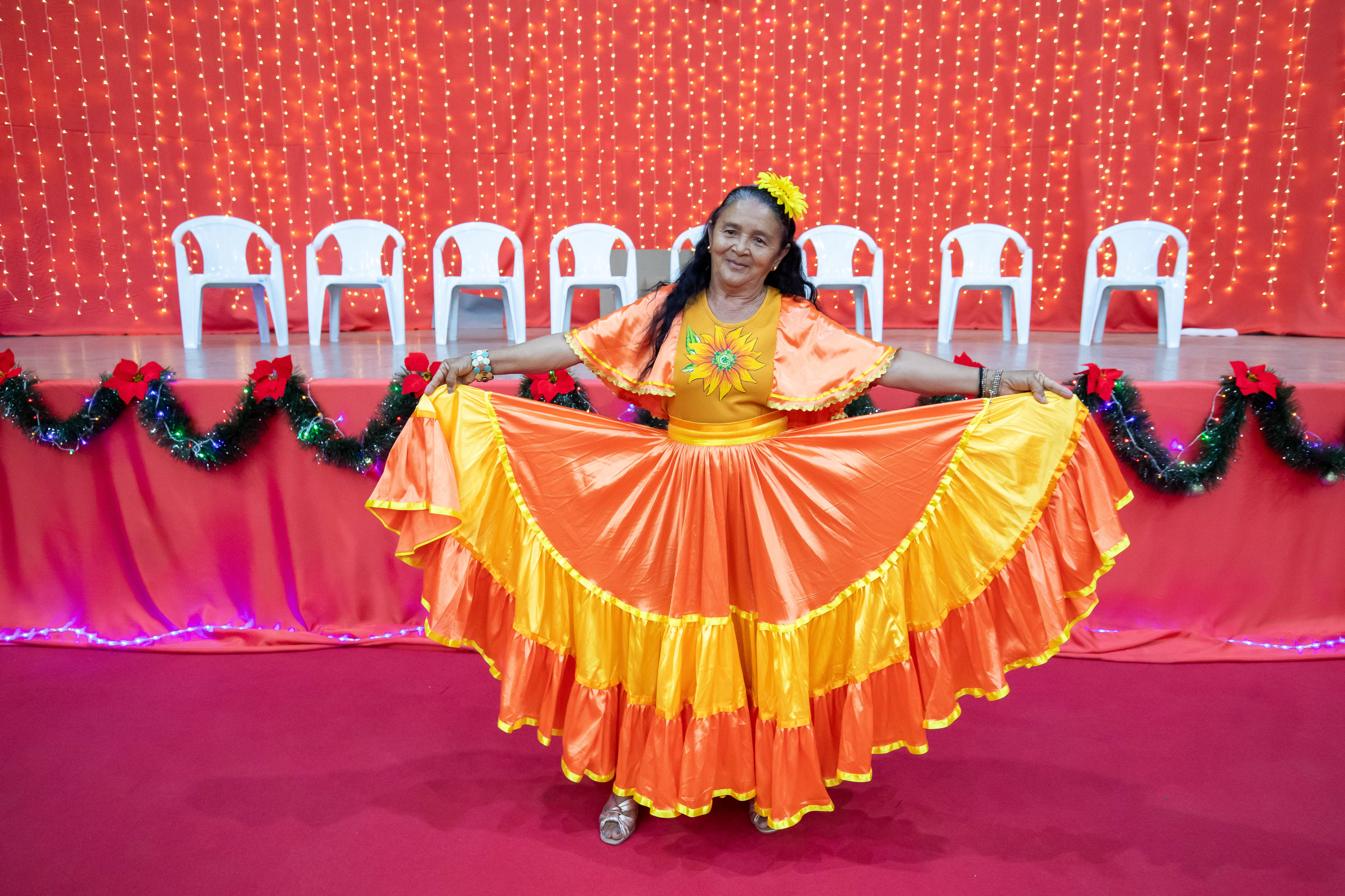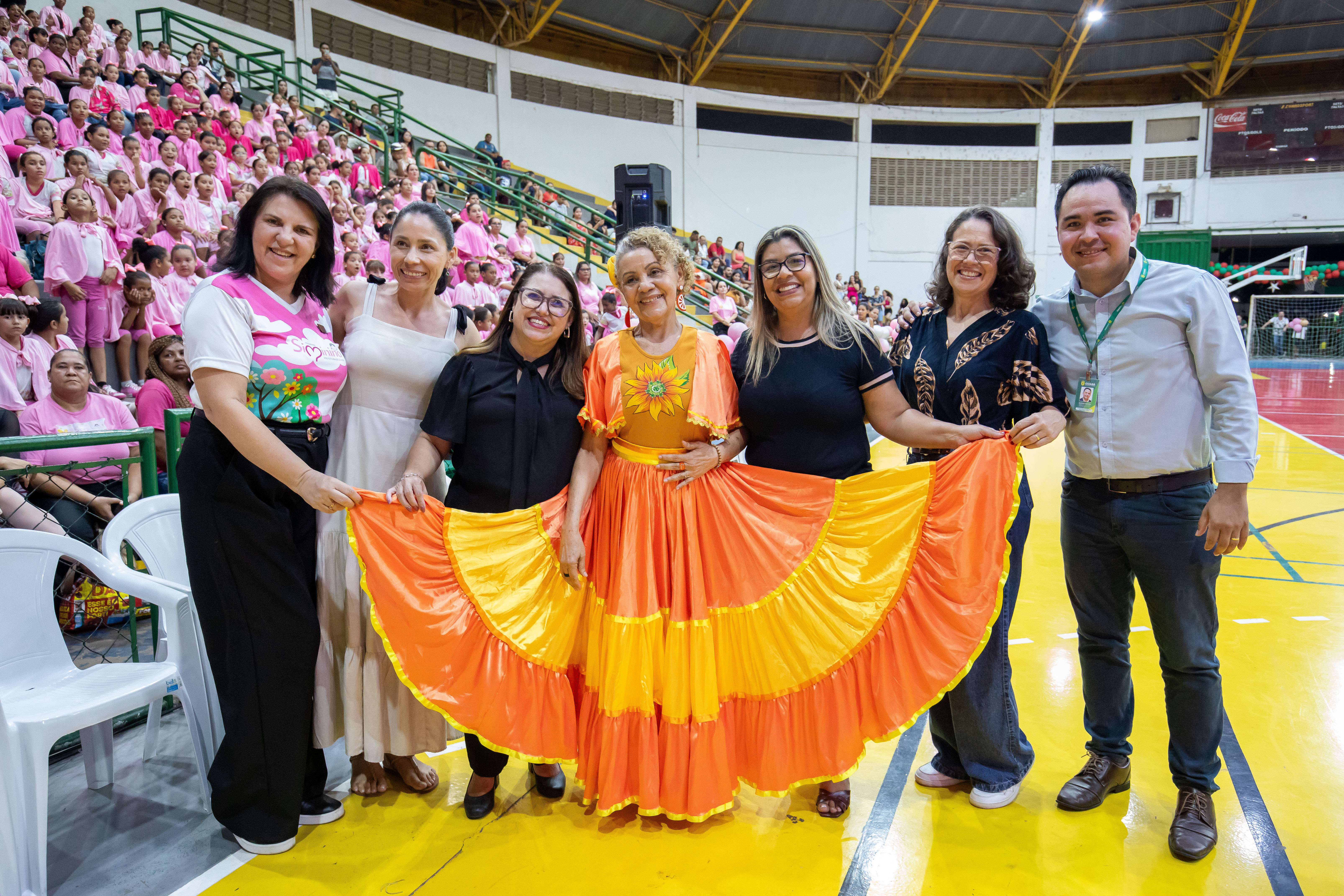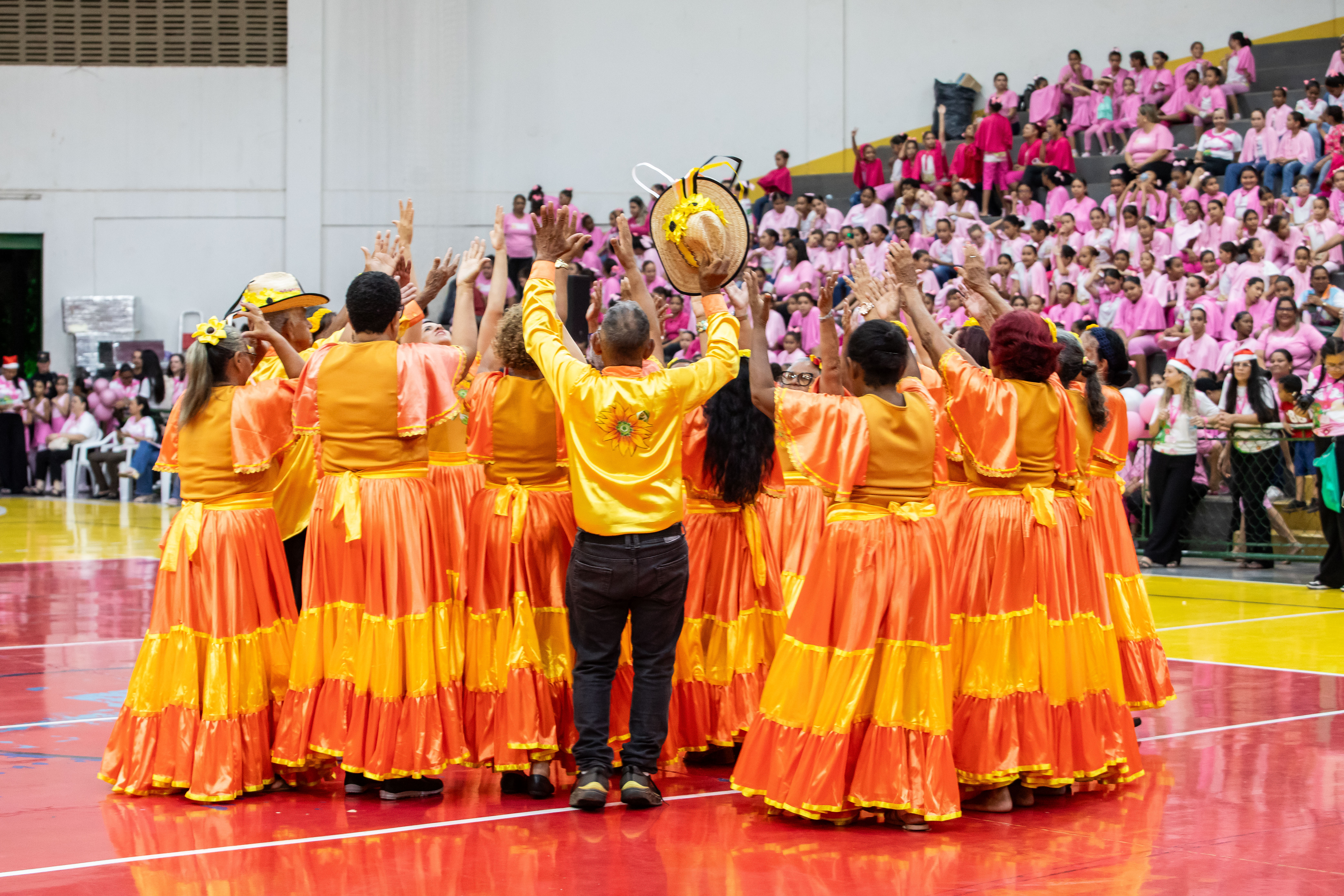 A segunda parte da noite ganhou contornos especiais. O Ginásio Verdinho se transformou em palco de encontros entre gerações, quando o grupo do CCI Padre Firmo entrou em cena com trajes típicos cuiabanos, coloridos e cheios de alegria. O siriri dos idosos arrancou aplausos demorados e sorrisos cúmplices, como quem reconhece na dança a memória viva da cidade.