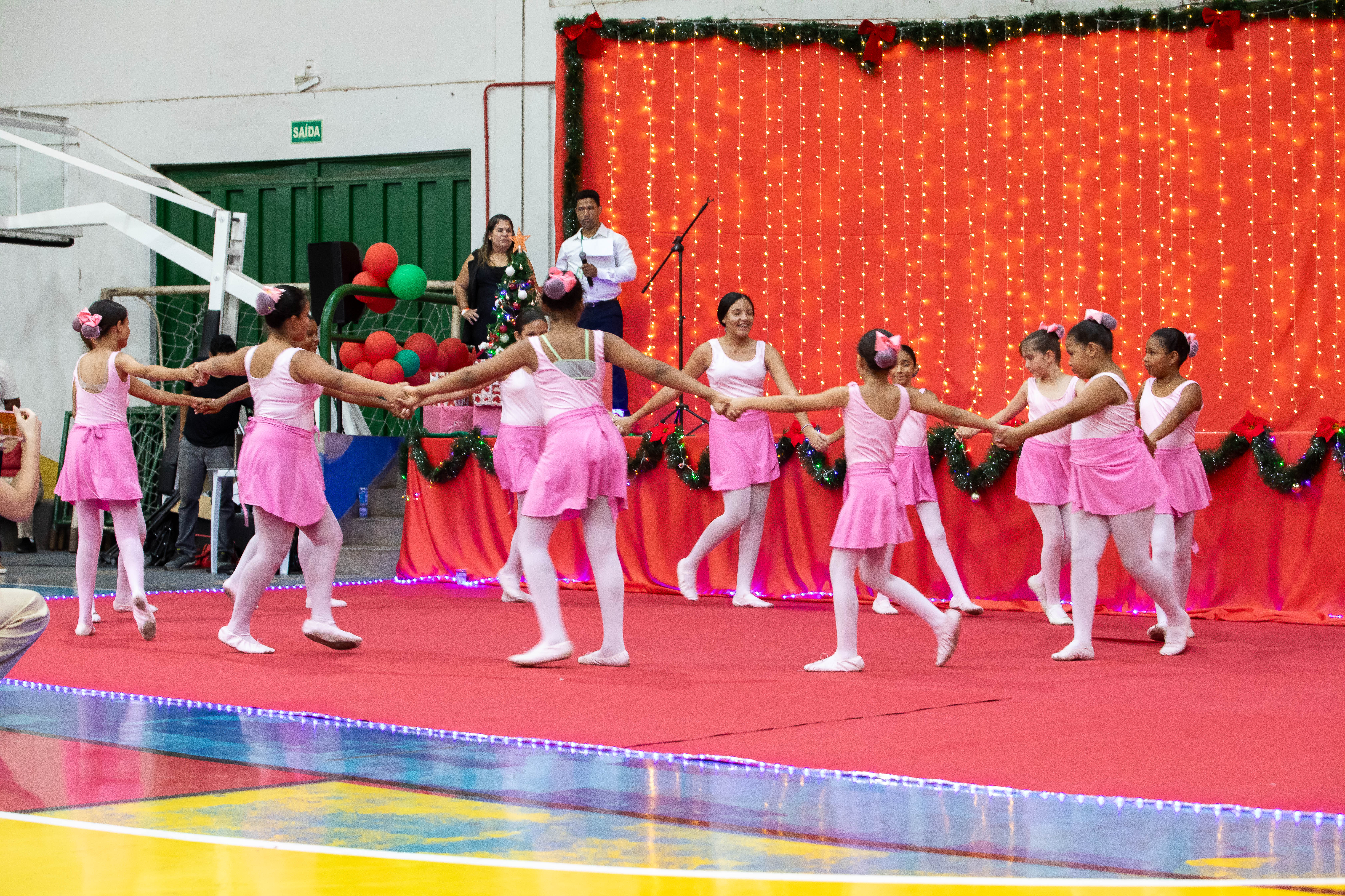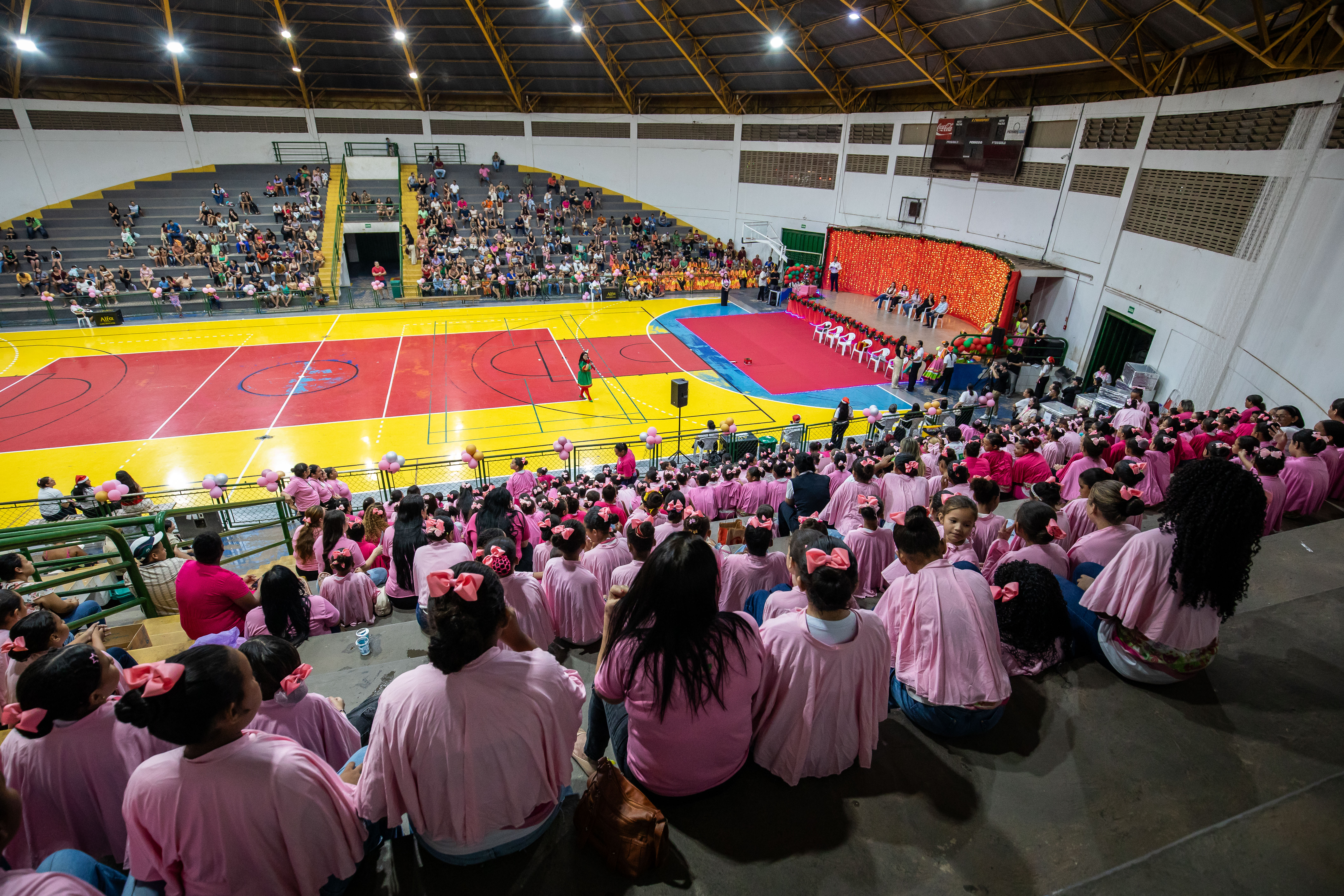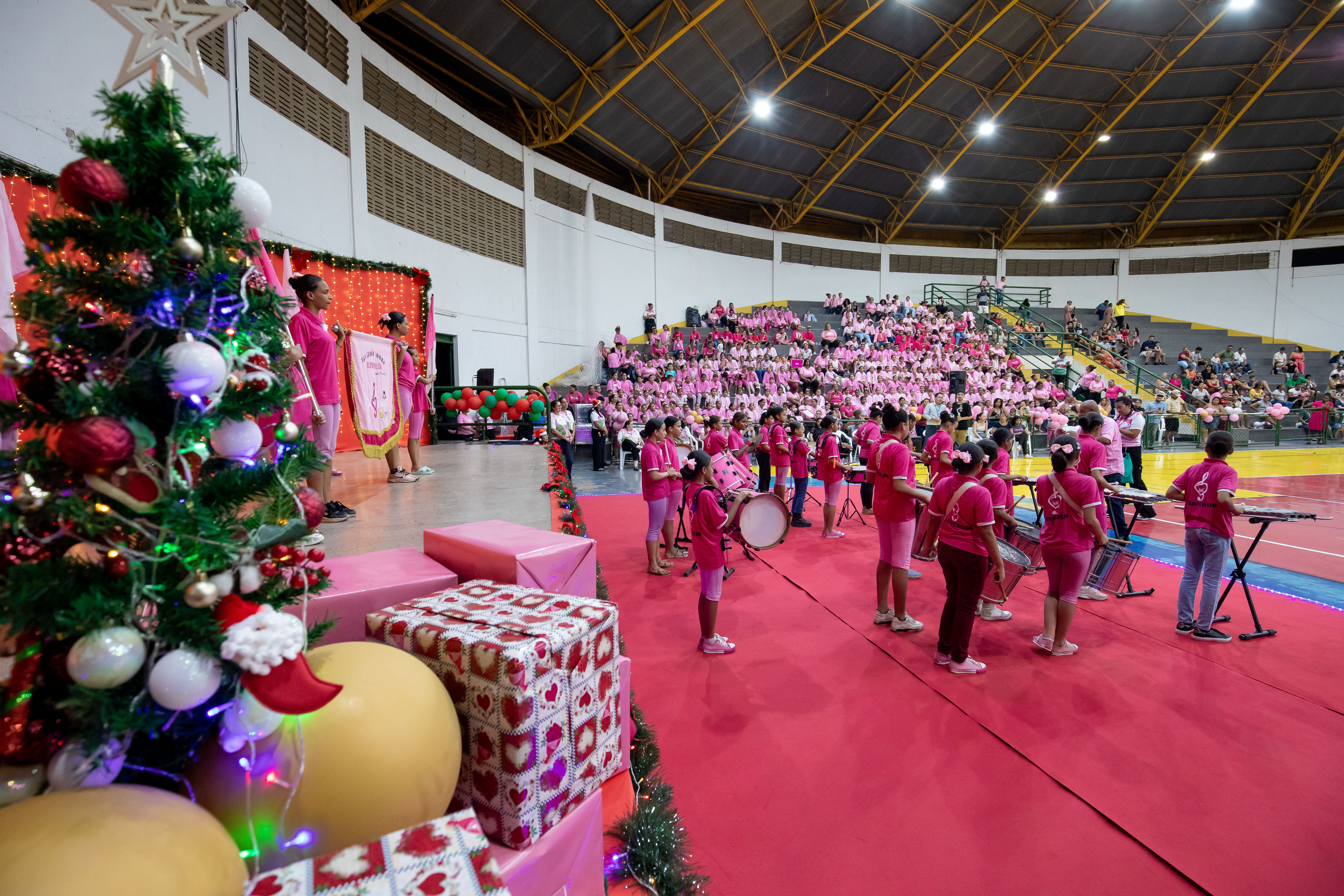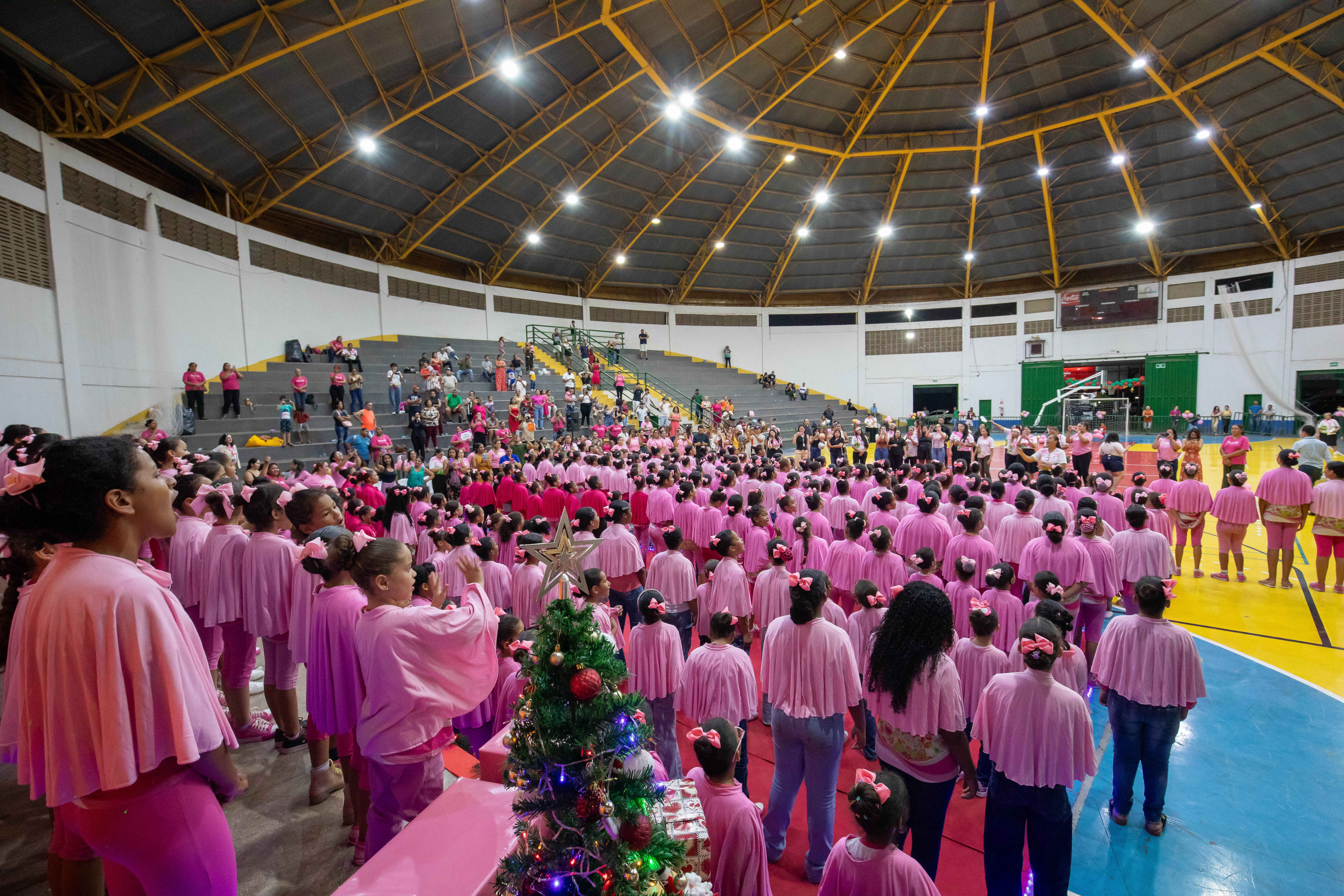 Mais de 56 meninas encerraram o ano de 2025 com uma belíssima apresentação natalina na noite da última quarta-feira (17), no Ginásio Verdinho, em Cuiabá. A Cantata de Natal do Programa Siminina reuniu famílias, educadores e moradores do bairro em uma celebração marcada por música, cores e emoção, reafirmando o papel do projeto na formação cultural e cidadã das participantes.