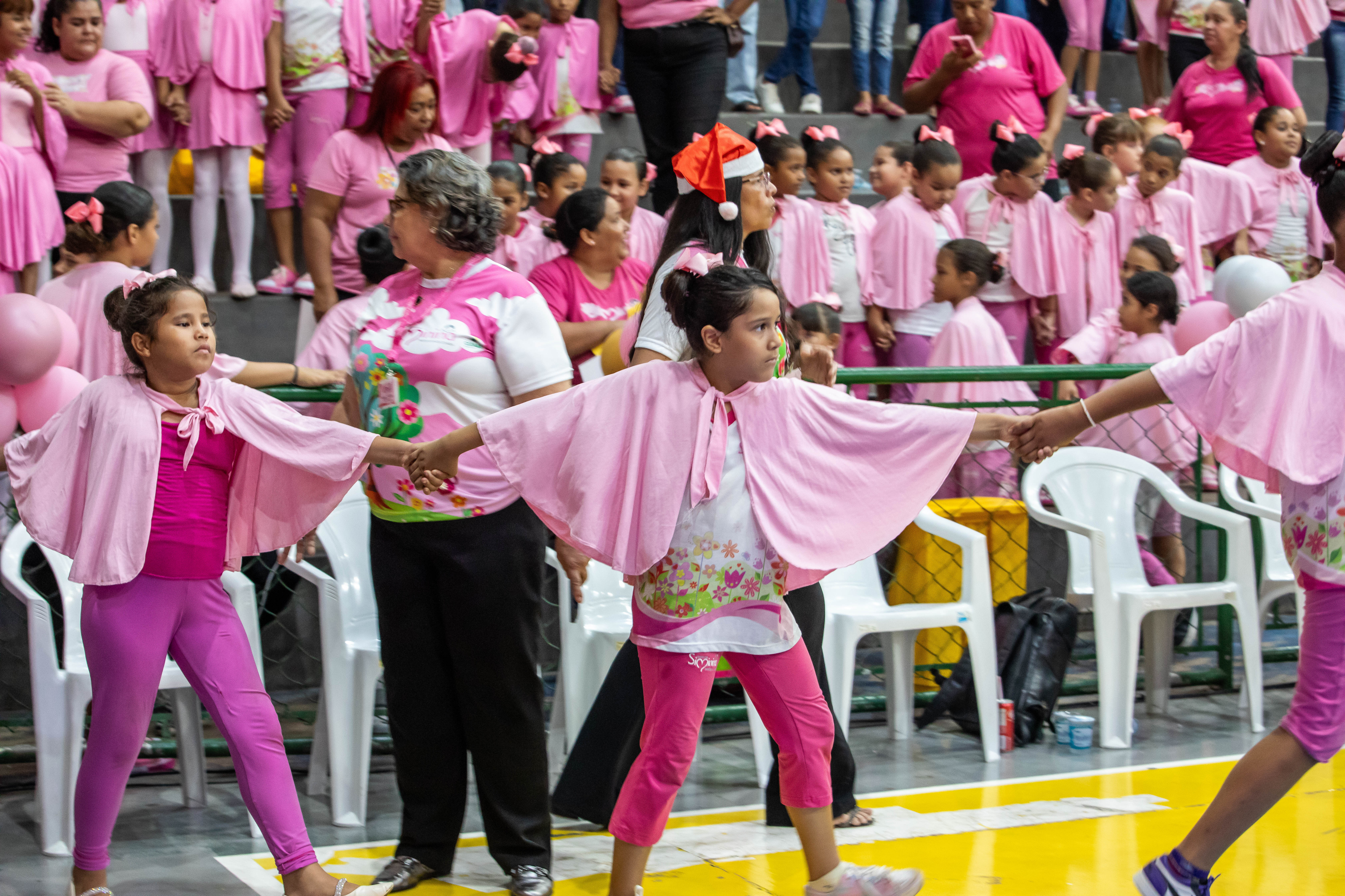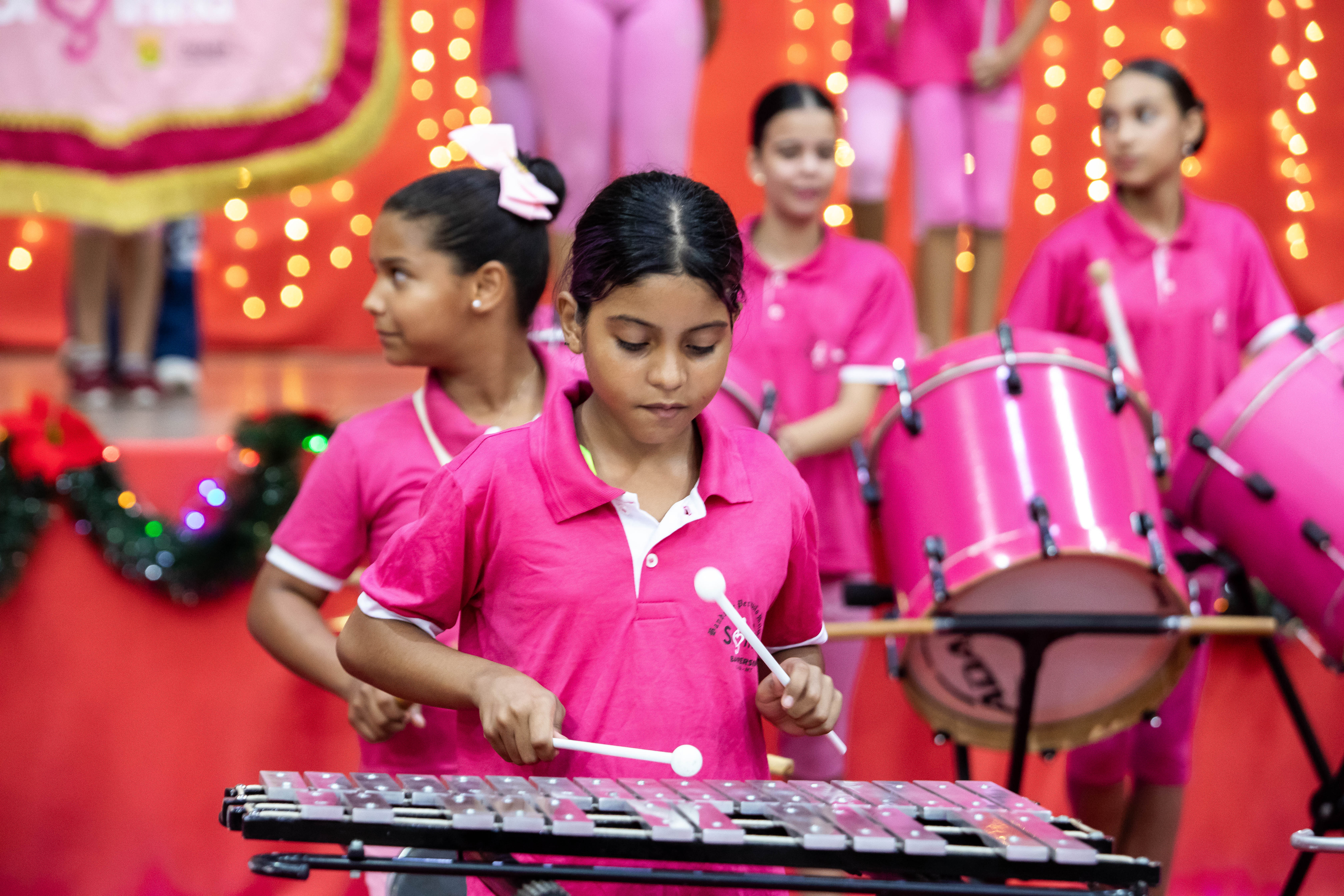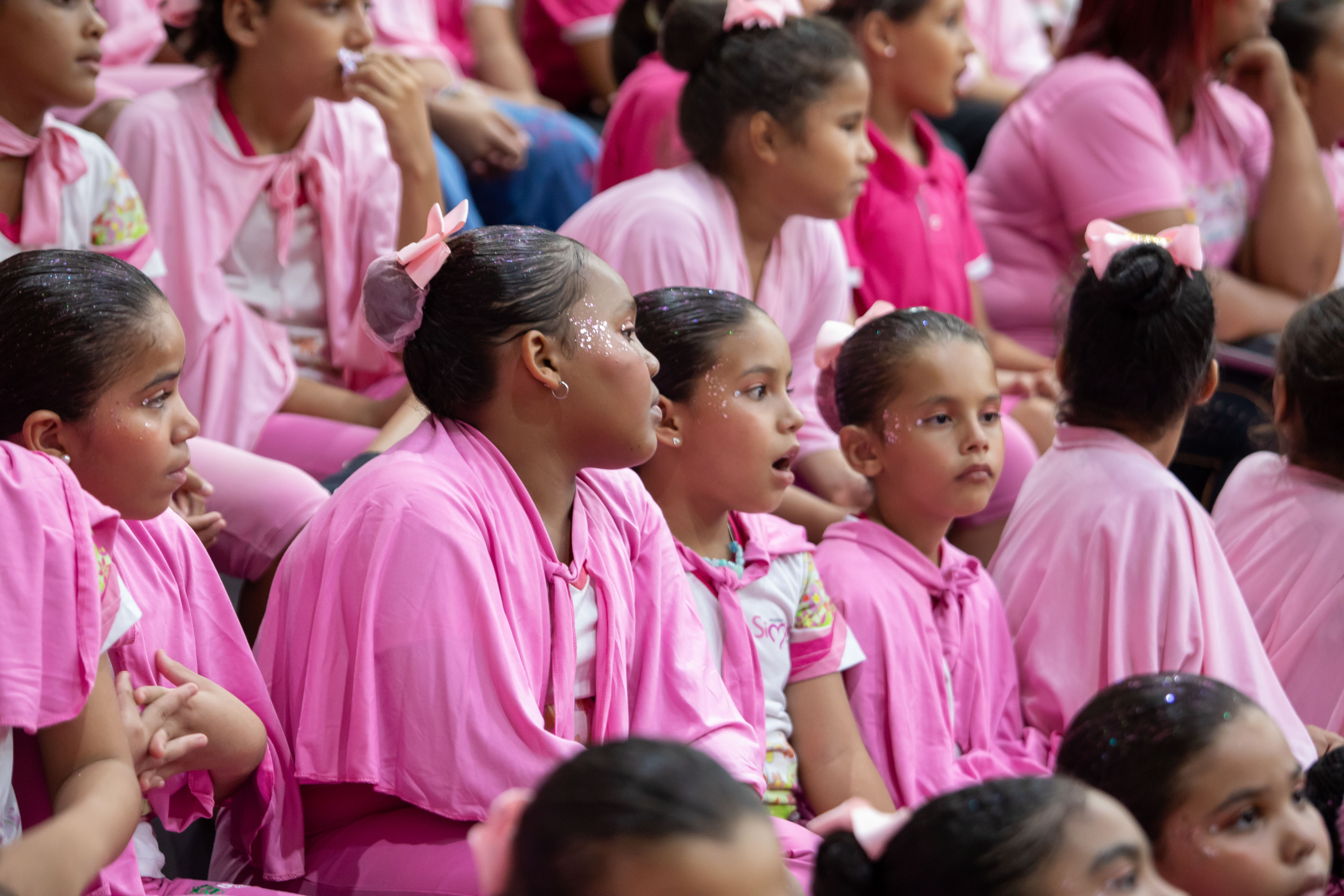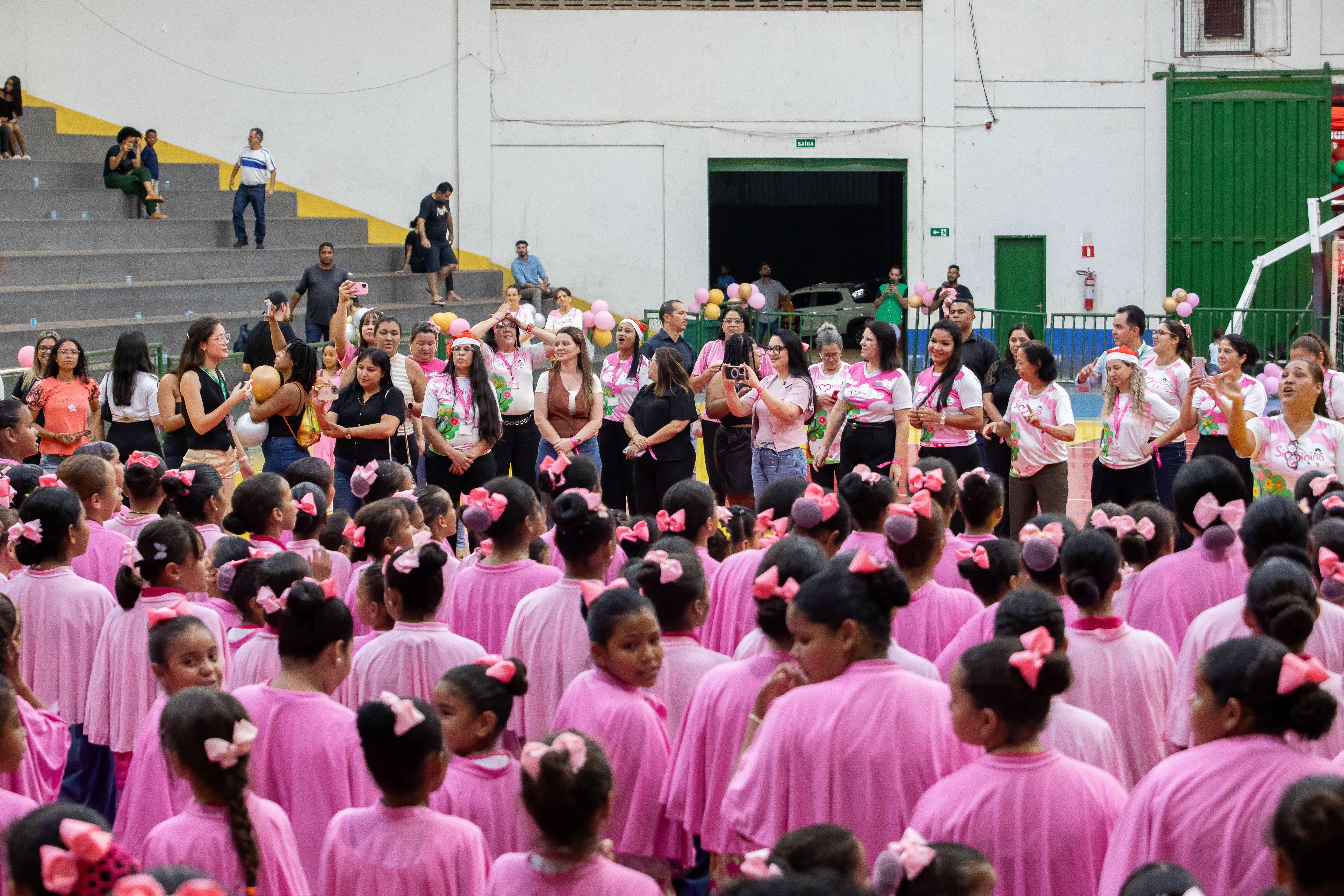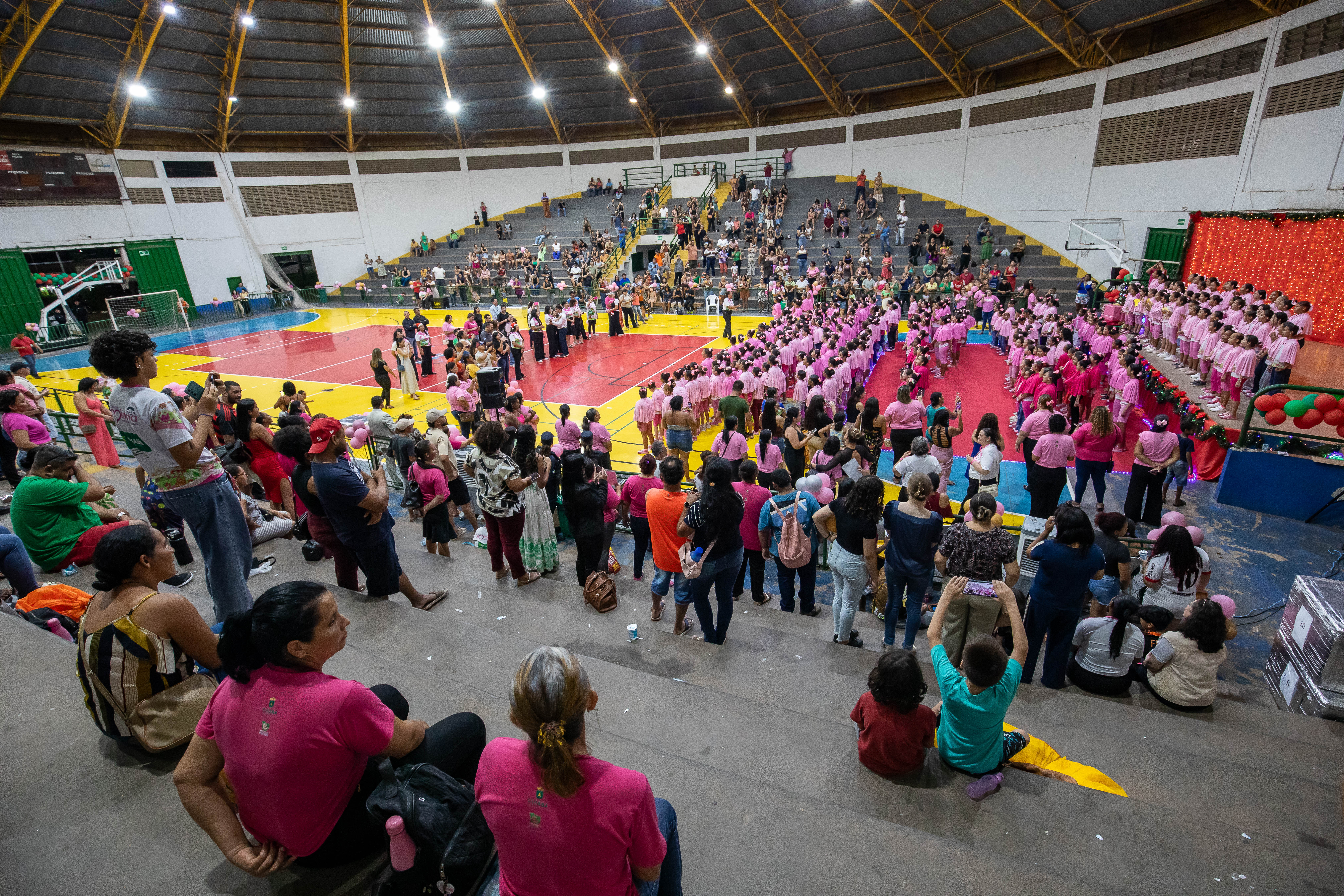 Mais de 56 meninas encerraram o ano de 2025 com uma belíssima apresentação natalina na noite da última quarta-feira (17), no Ginásio Verdinho, em Cuiabá. A Cantata de Natal do Programa Siminina reuniu famílias, educadores e moradores do bairro em uma celebração marcada por música, cores e emoção, reafirmando o papel do projeto na formação cultural e cidadã das participantes.