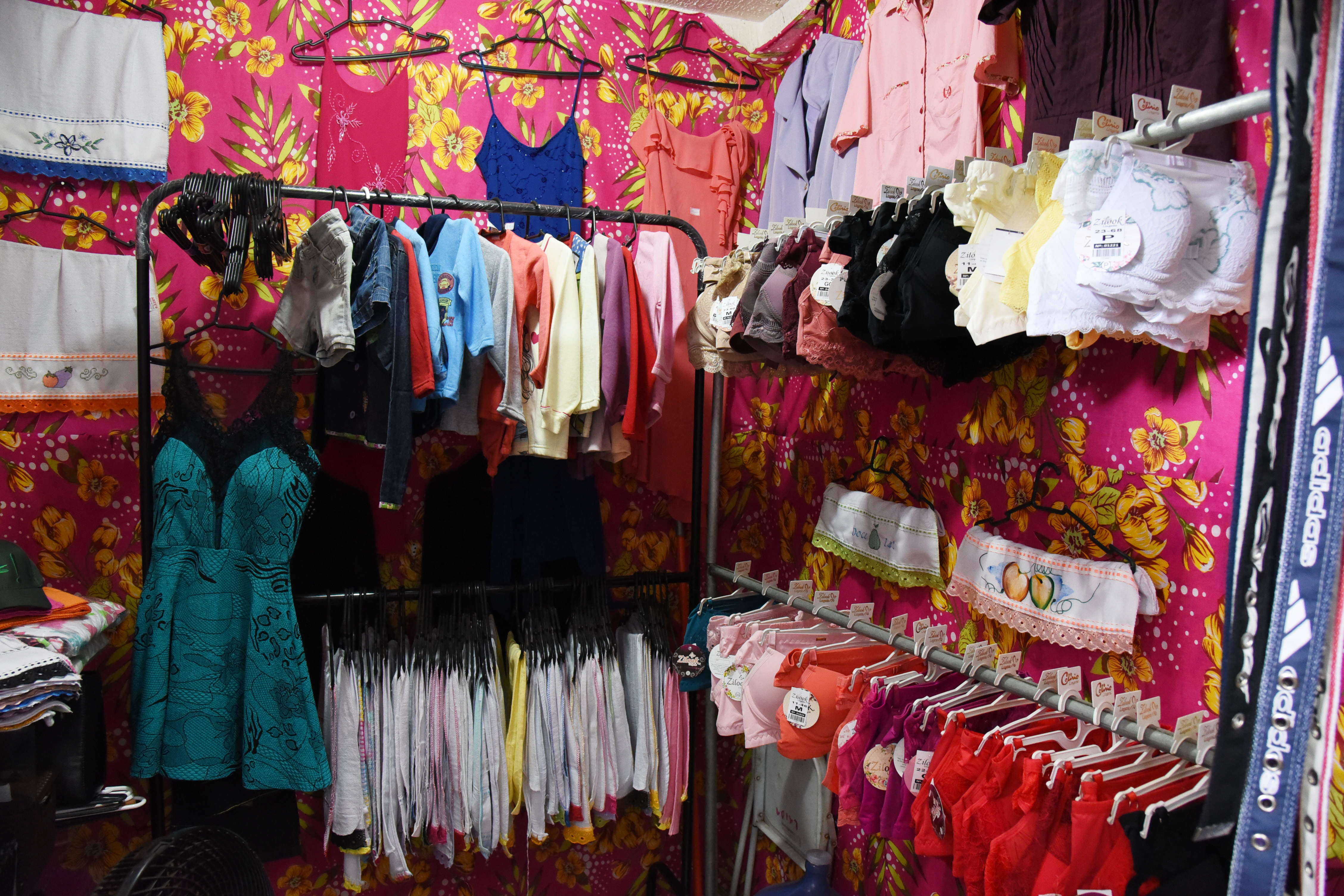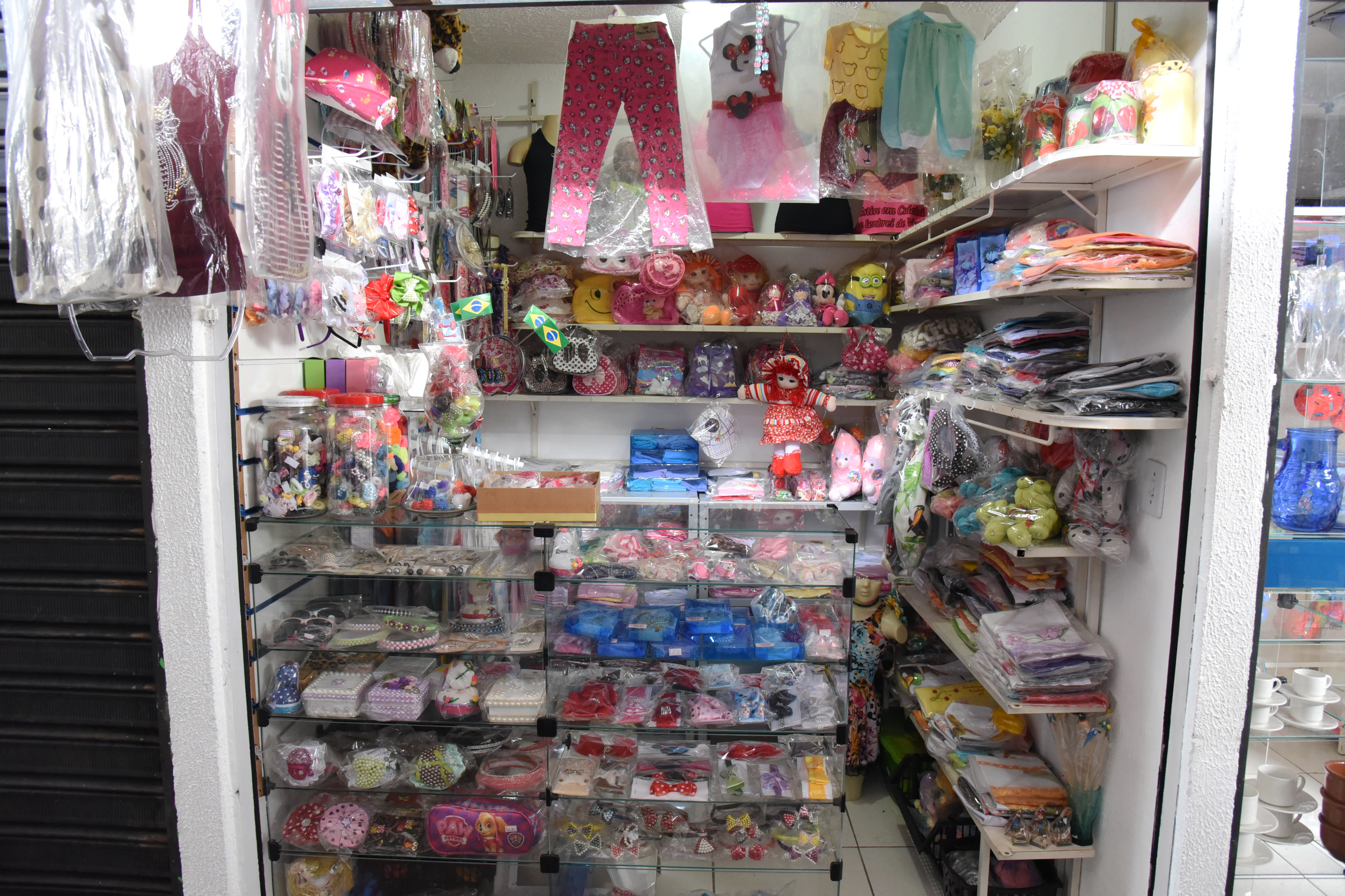 O comerciante destaca ainda que passa cartões de crédito e débito, tanto para atacado, quanto para varejo. A dinâmica se repete na maior parte dos boxes, onde os clientes encontram opções diversas em quinquilharias, confecções, cosméticos e eletrônicos. Além das compras, no espaço podem cuidar da beleza nos salões de beleza, manicure e barbearia.