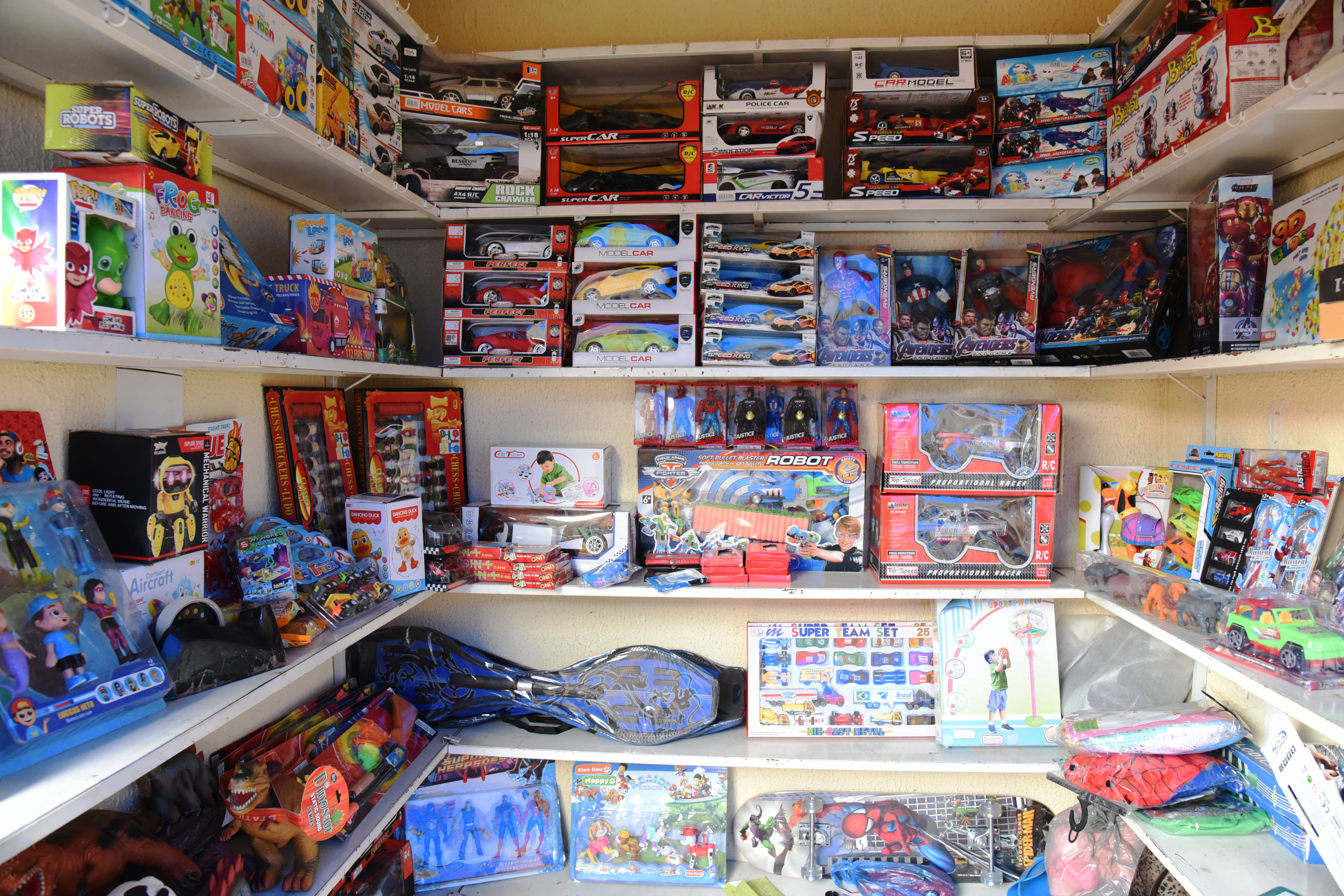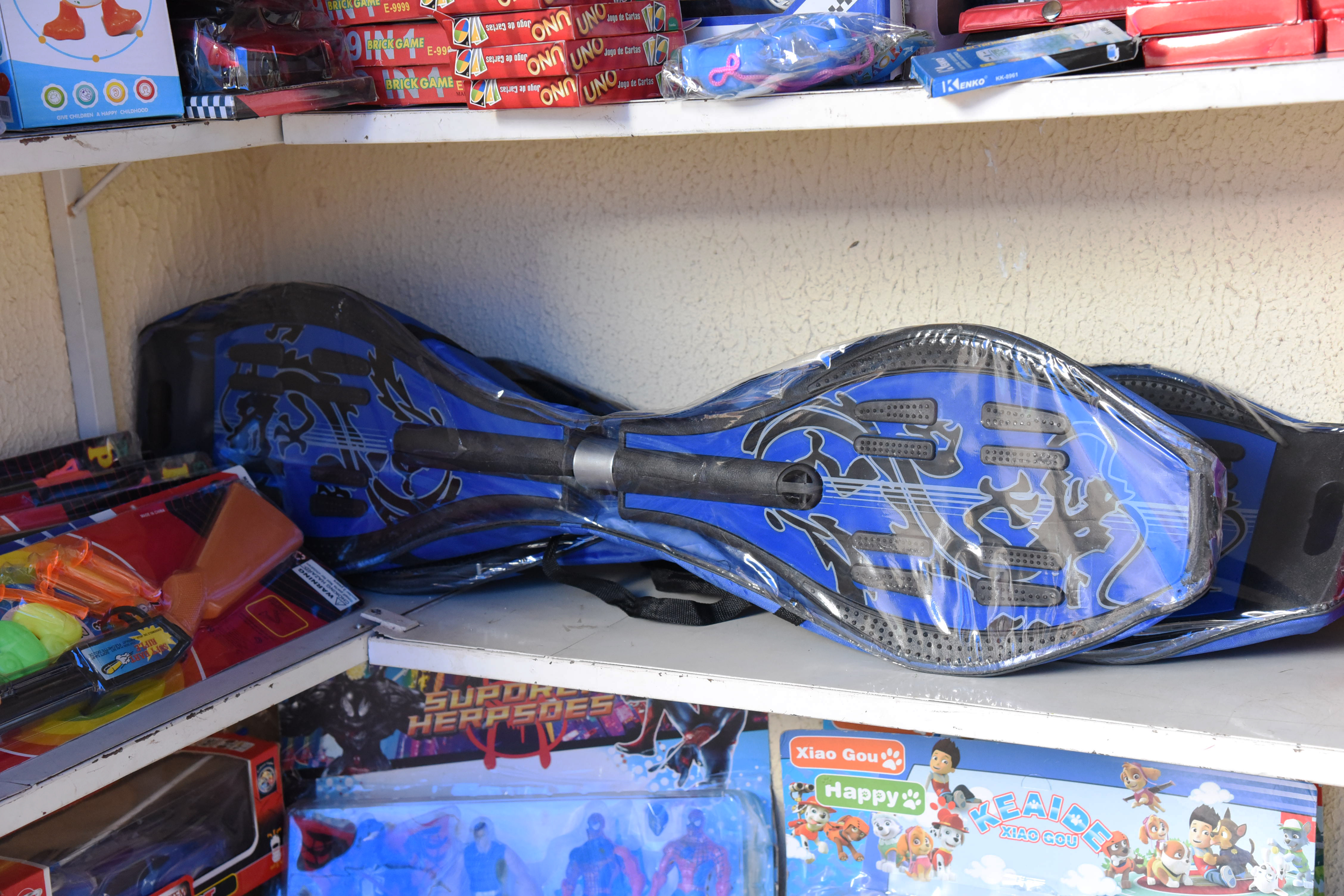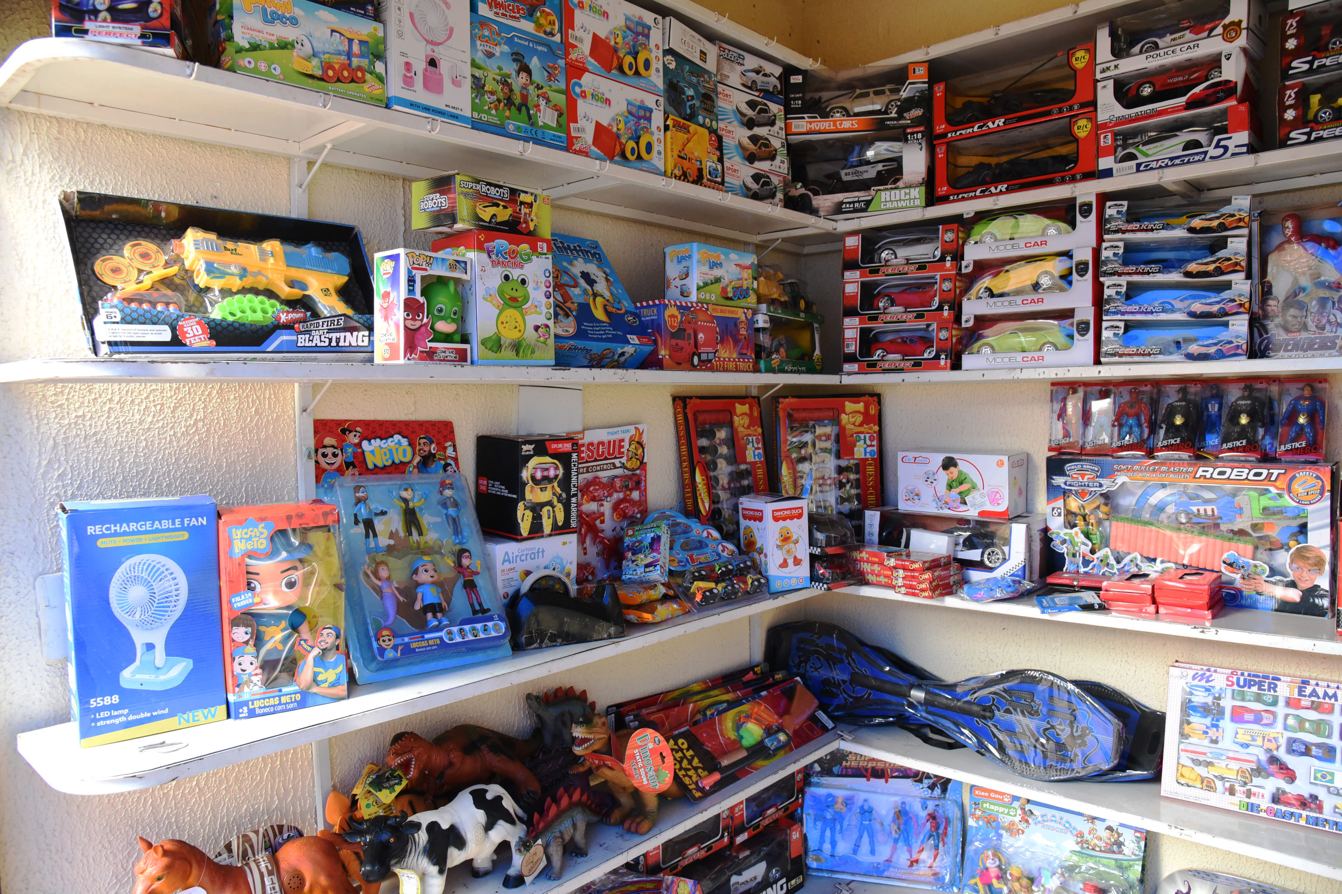 Estes são os carros chefes na banca de Antônio José Loschi, abarrotada de brinquedos. Enquanto monta a remessa de patinetes, fala sobre a procura pelos produtos na última semana. “Desde o início do mês percebemos um aumento no fluxo, por isso investimos em quantidade e em novidades”, diz. De acordo com ele, lá é possível encontrar itens para todos os bolsos, com valores de R$ 3,00 a R$ 150, 00.