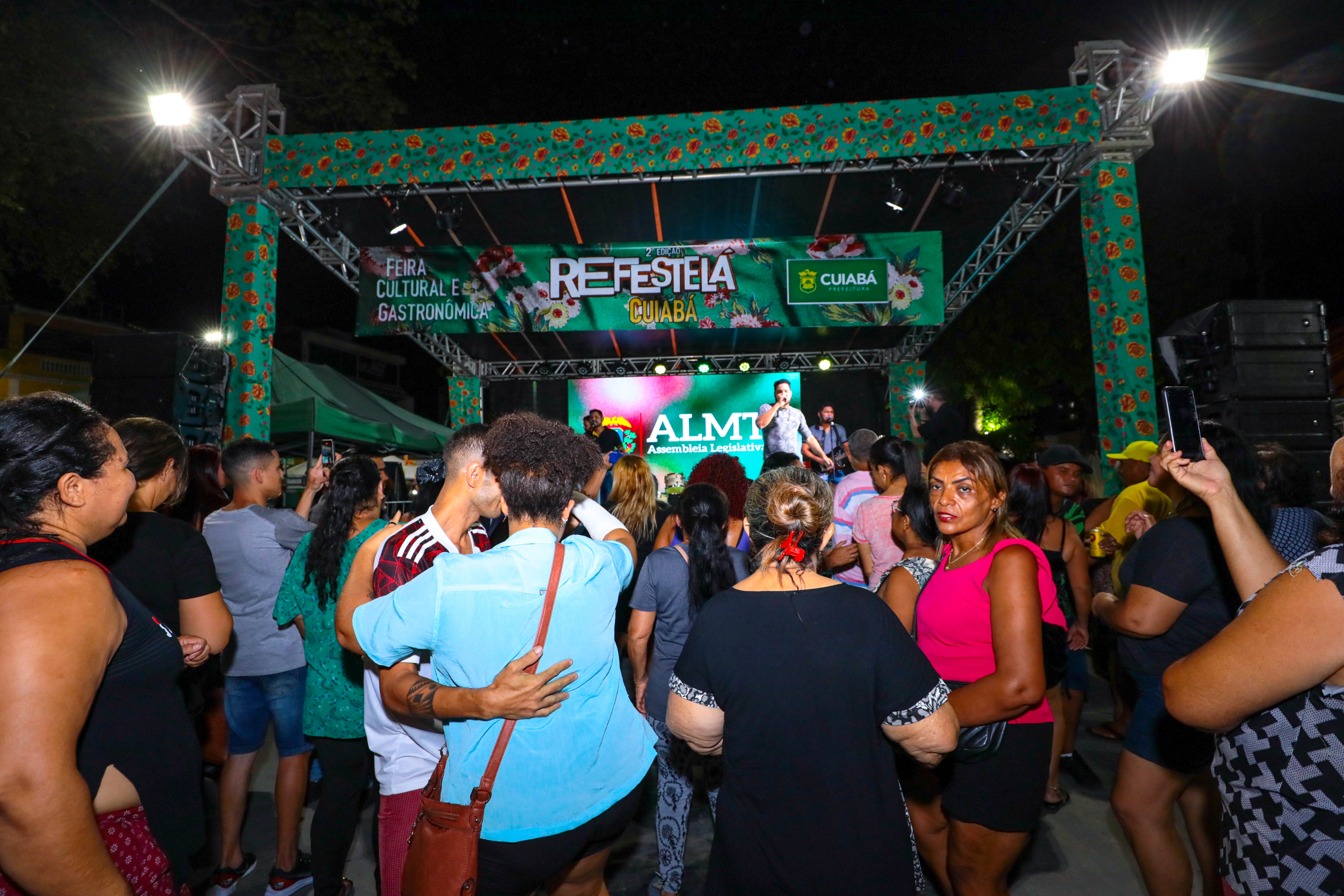 A primeira noite da segunda edição do ‘Refestela Cuiabá’ atraiu centenas de famílias, que se encantaram com as apresentações artísticas, exposições culturais e com as barracas de comidas regionais, bolos, doces e guloseimas. O grupo de samba Cuiabaníssimas e a banda de lambadão Erre Som animaram os presentes, que dançaram e se divertiram muito.