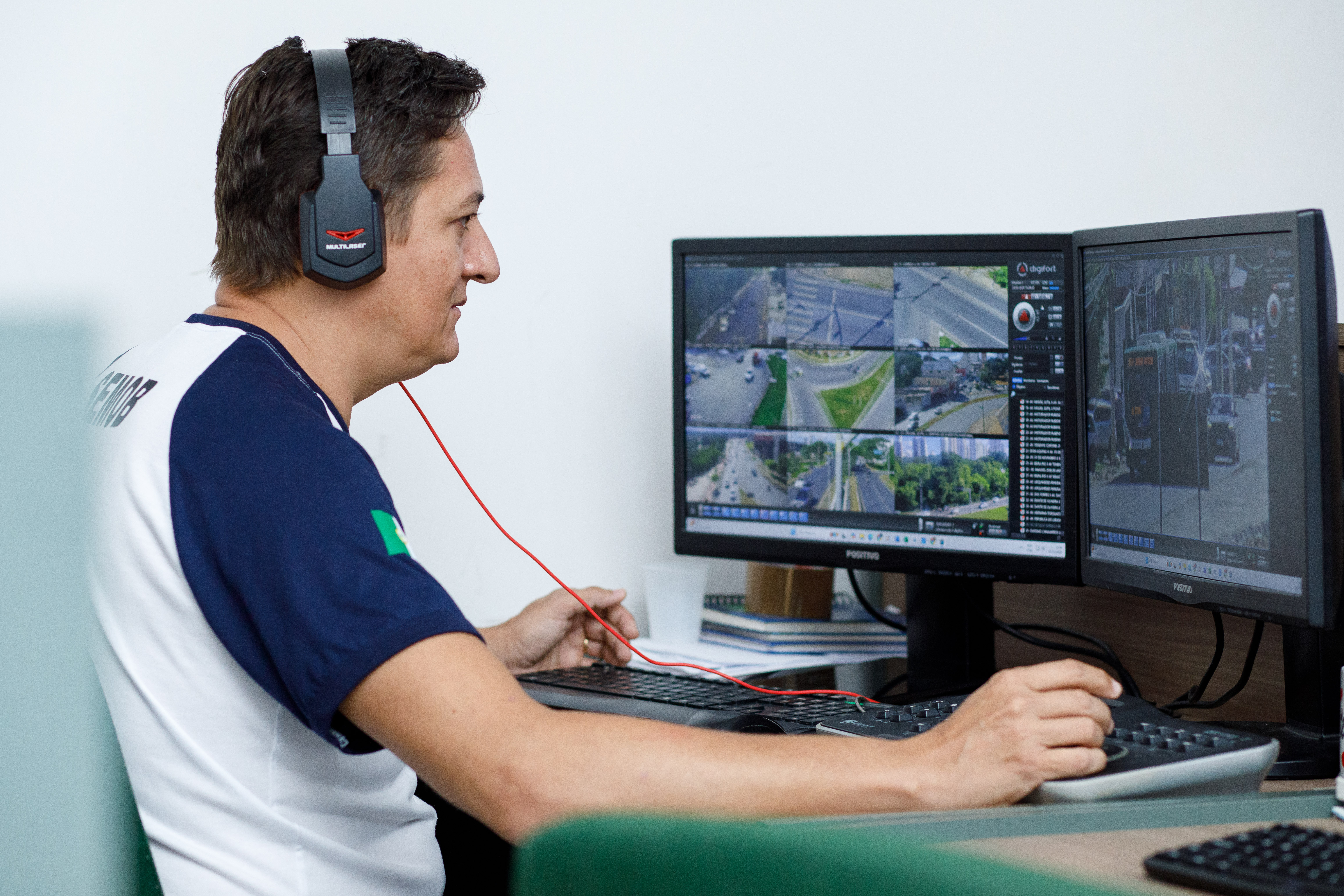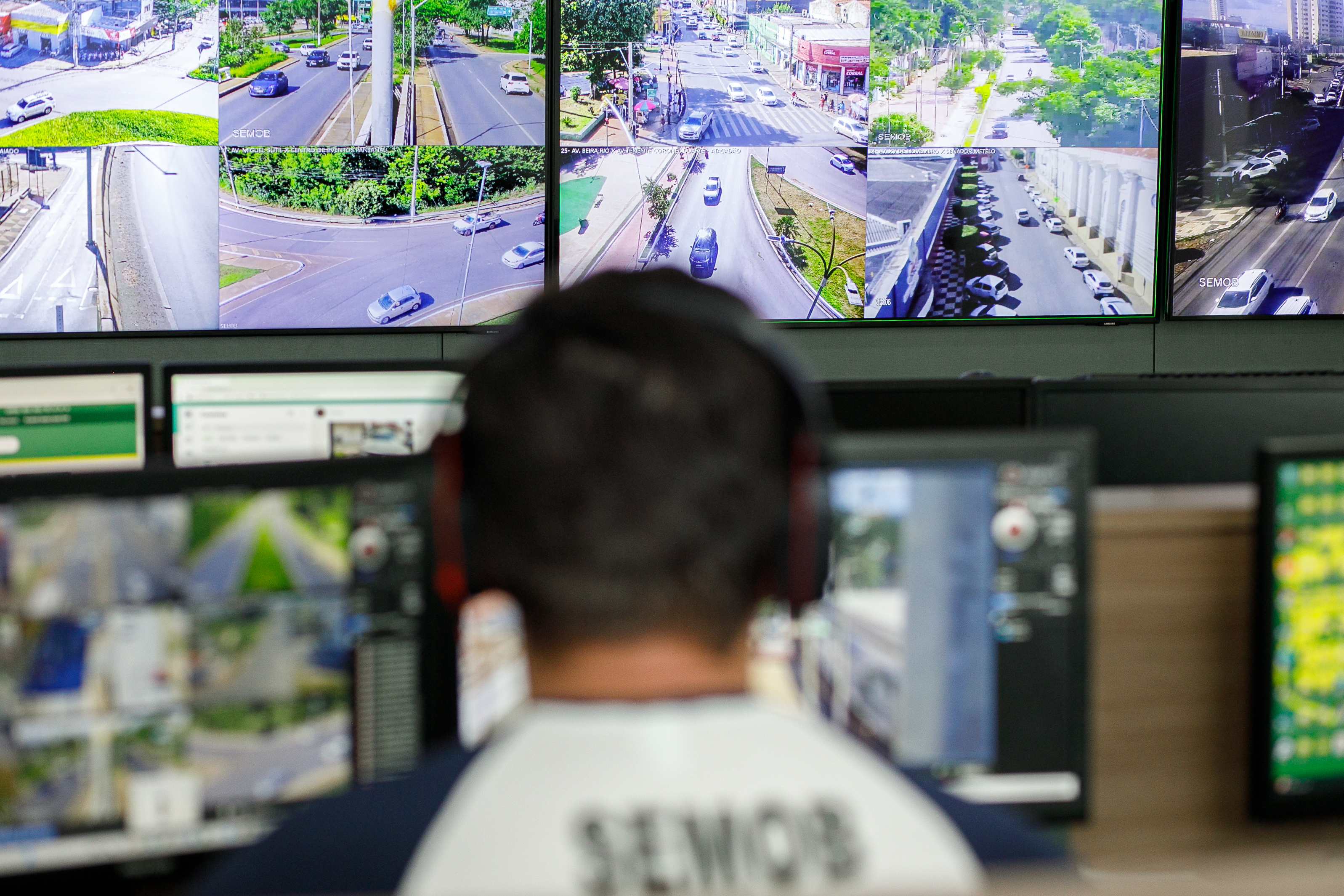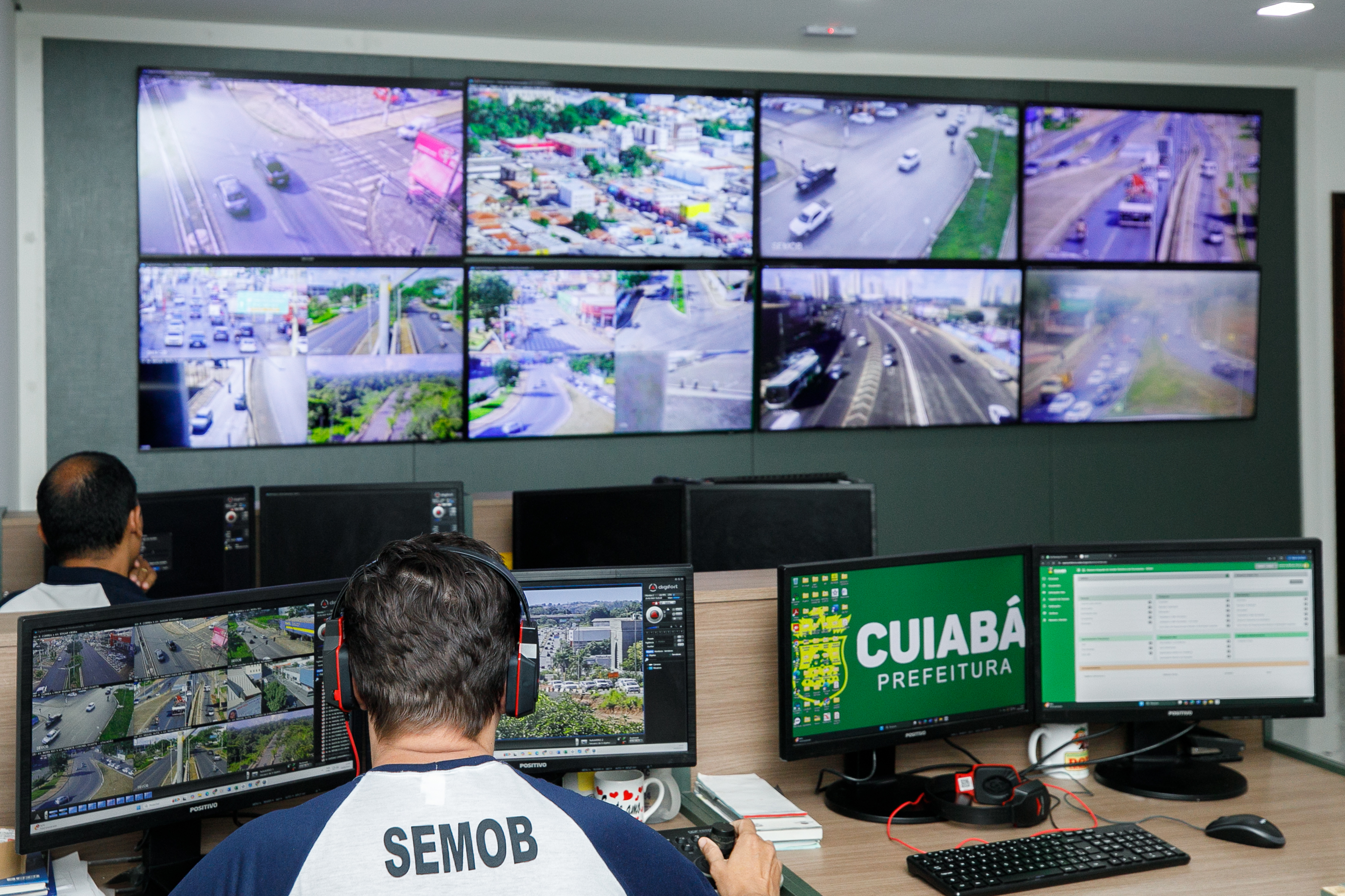 A Secretaria de Mobilidade Urbana (Semob) mantém diariamente, em tempo real, a fiscalização das principais ruas e avenidas de Cuiabá, por meio de um sistema de videomonitoramento com 45 câmeras de alta tecnologia.