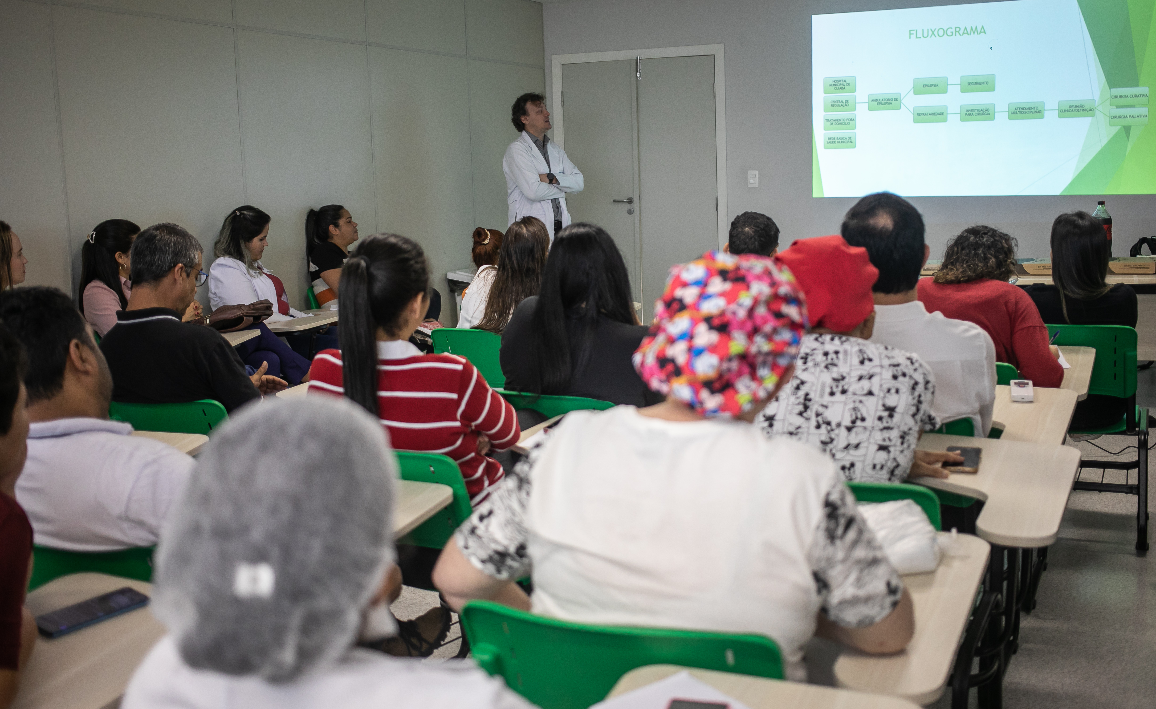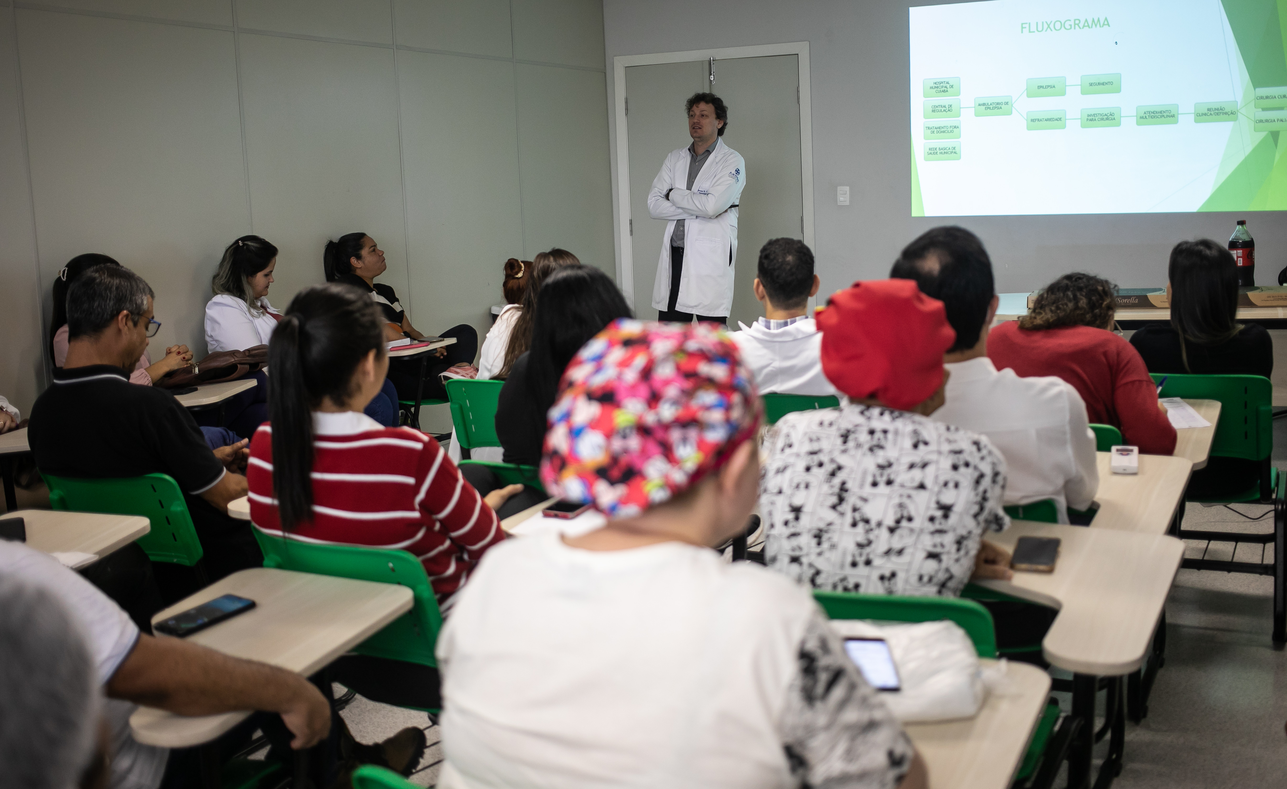 O Centro de Tratamento de Epilepsia do Hospital Municipal de Cuiabá Leony Palma de Carvalho (HMC) realizou nesta quinta-feira (18) treinamento inédito para a equipe multidisciplinar de profissionais que trabalha diariamente na avaliação, tratamento e na realização de cirurgias em pacientes portadores de epilepsia.