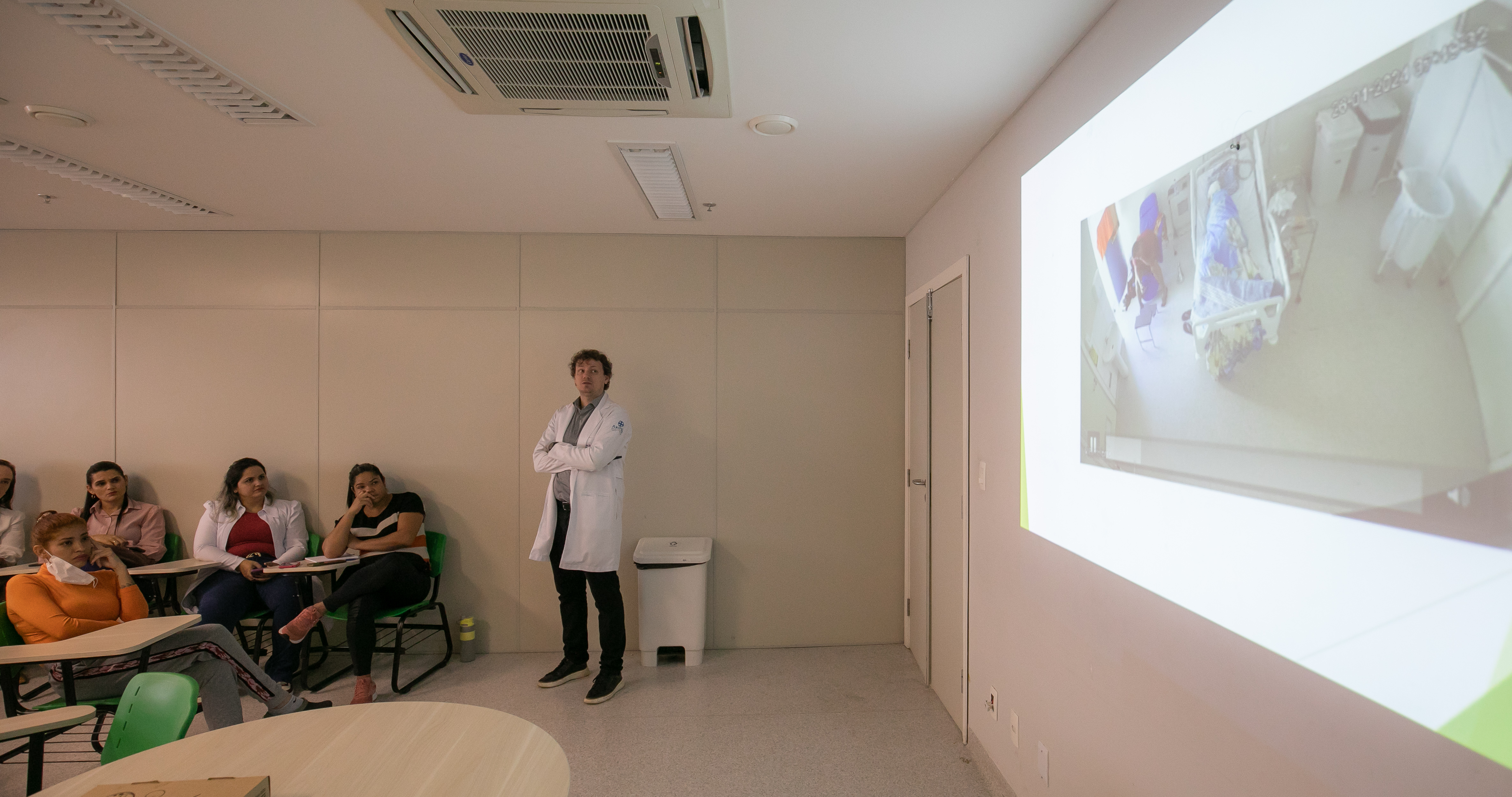 Naquele momento, o treinamento foi dividido em quatro etapas durante um mês, visando orientar toda equipe: enfermeiros, médicos de plantão e outros profissionais da equipe.