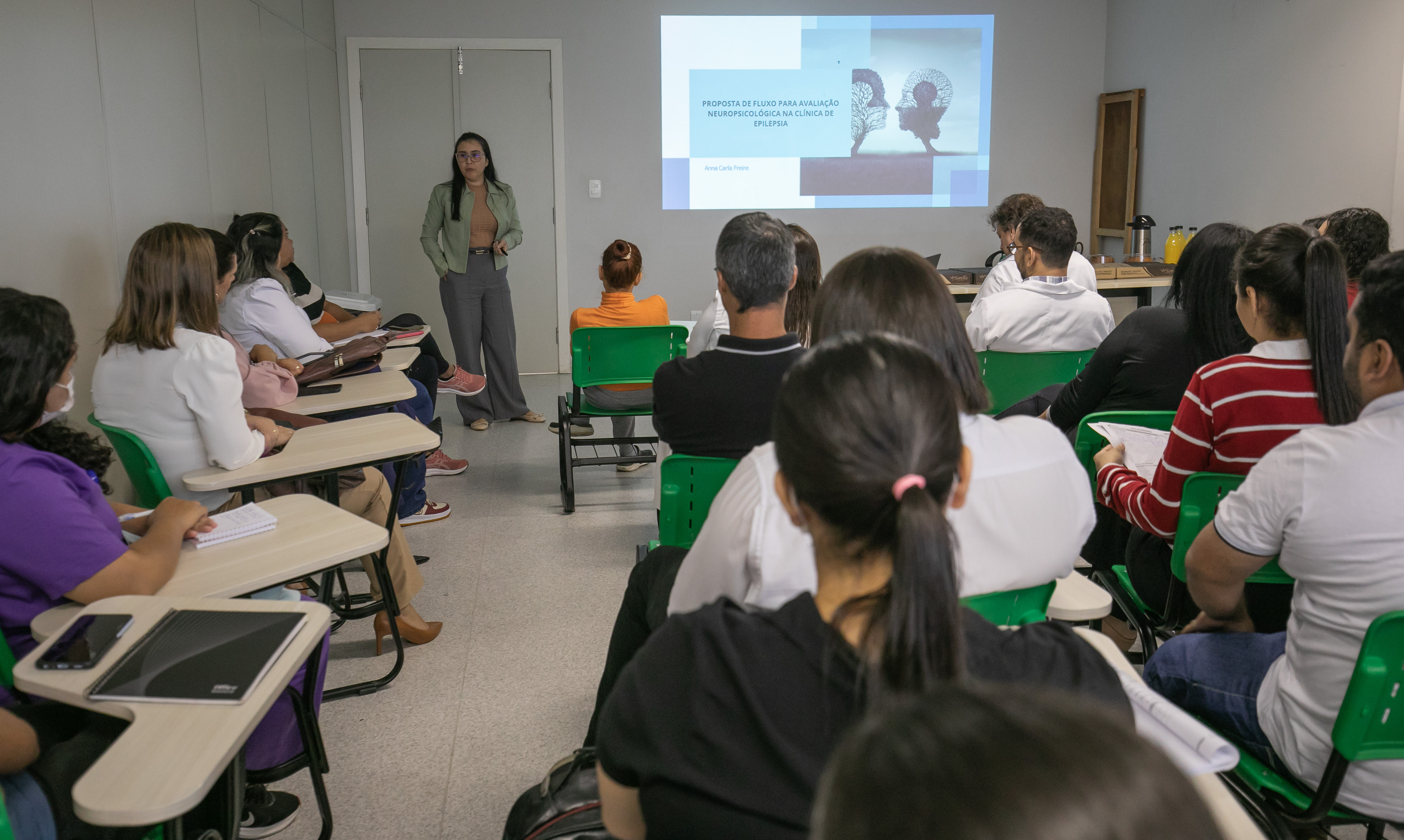 A neuropsicóloga Ana Carla Freire da Silva explicou durante o treinamento a função da neuropsicologia no tratamento da epilepsia. O acompanhamento faz parte de um dos serviços realizados pelo Centro de Tratamento.