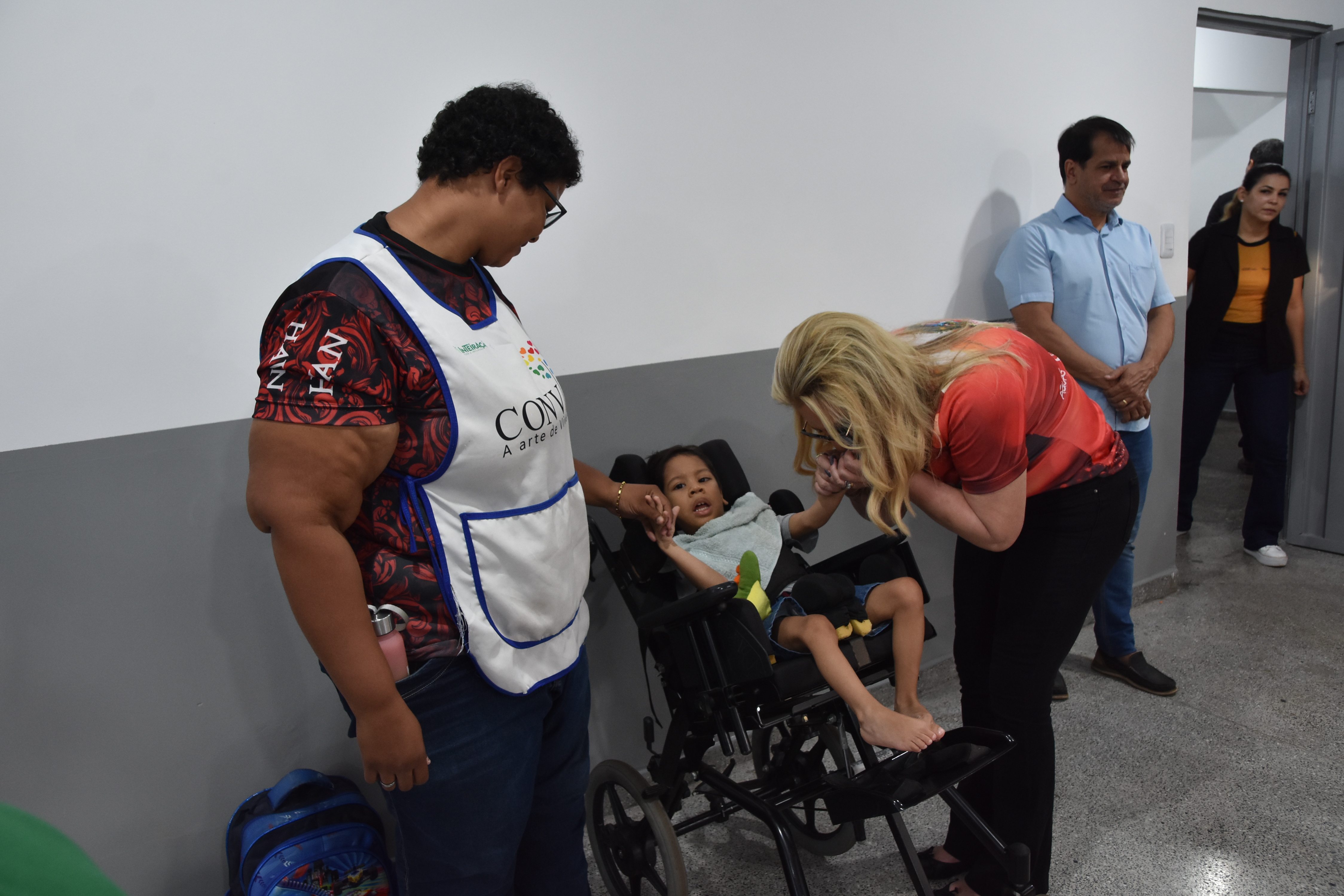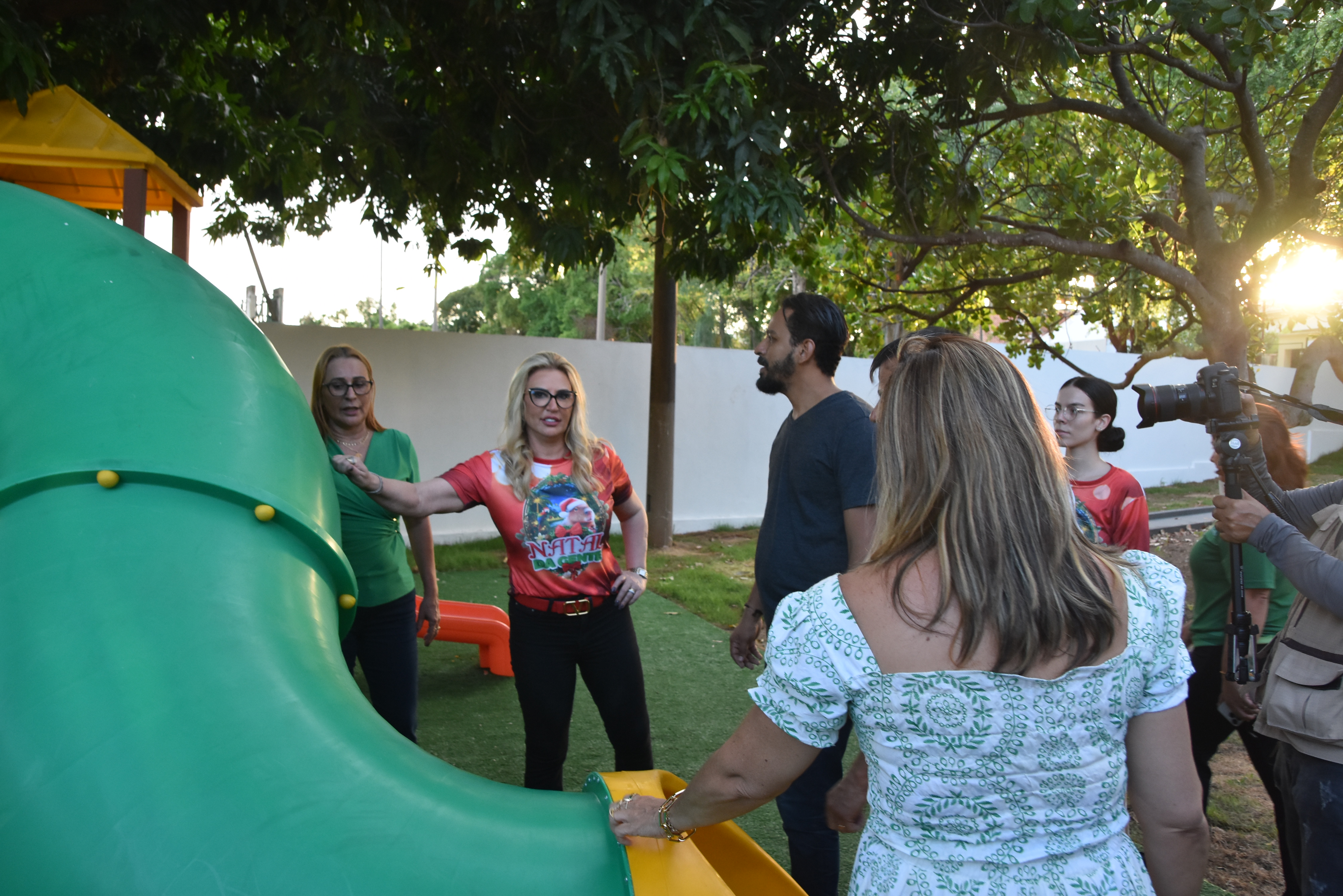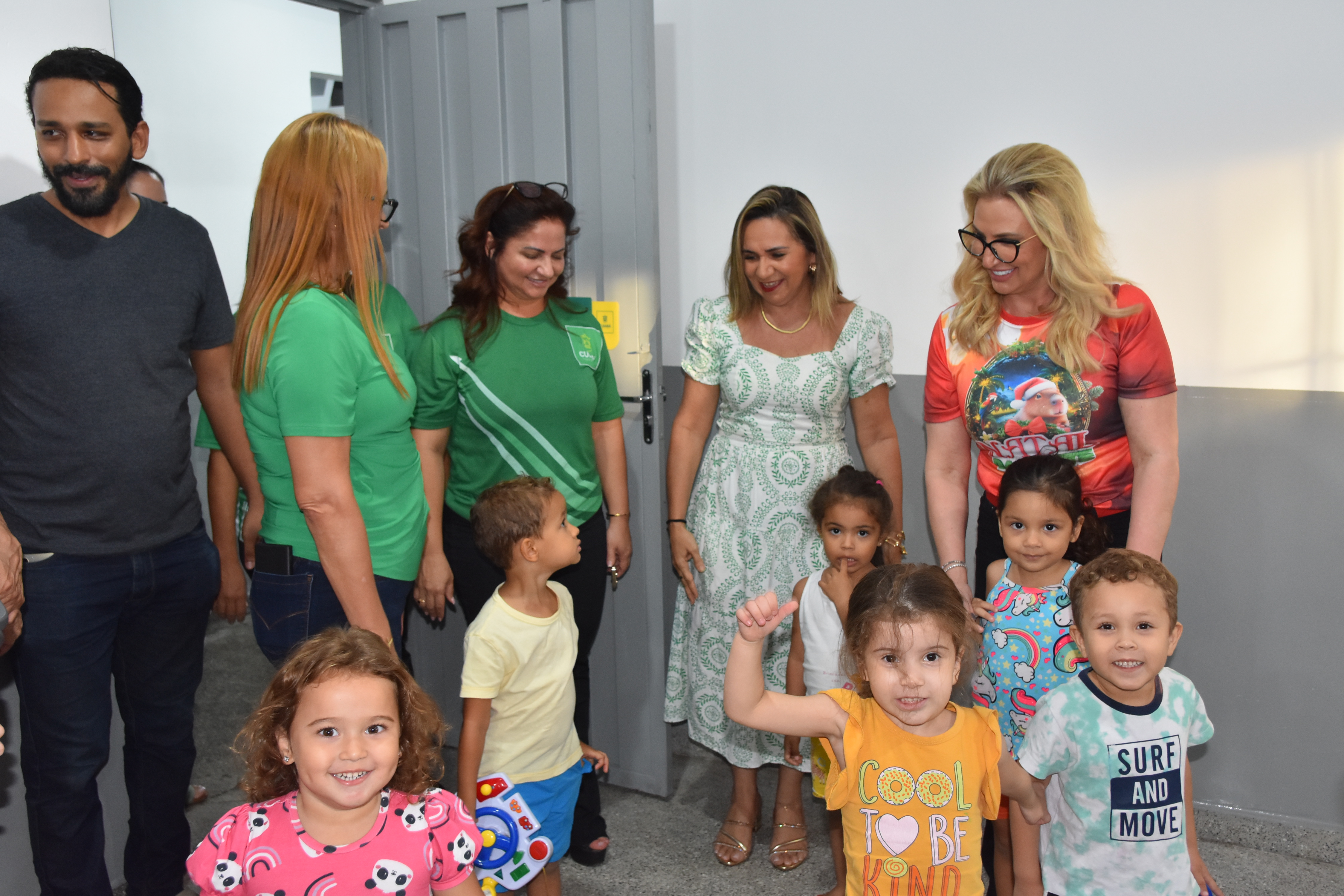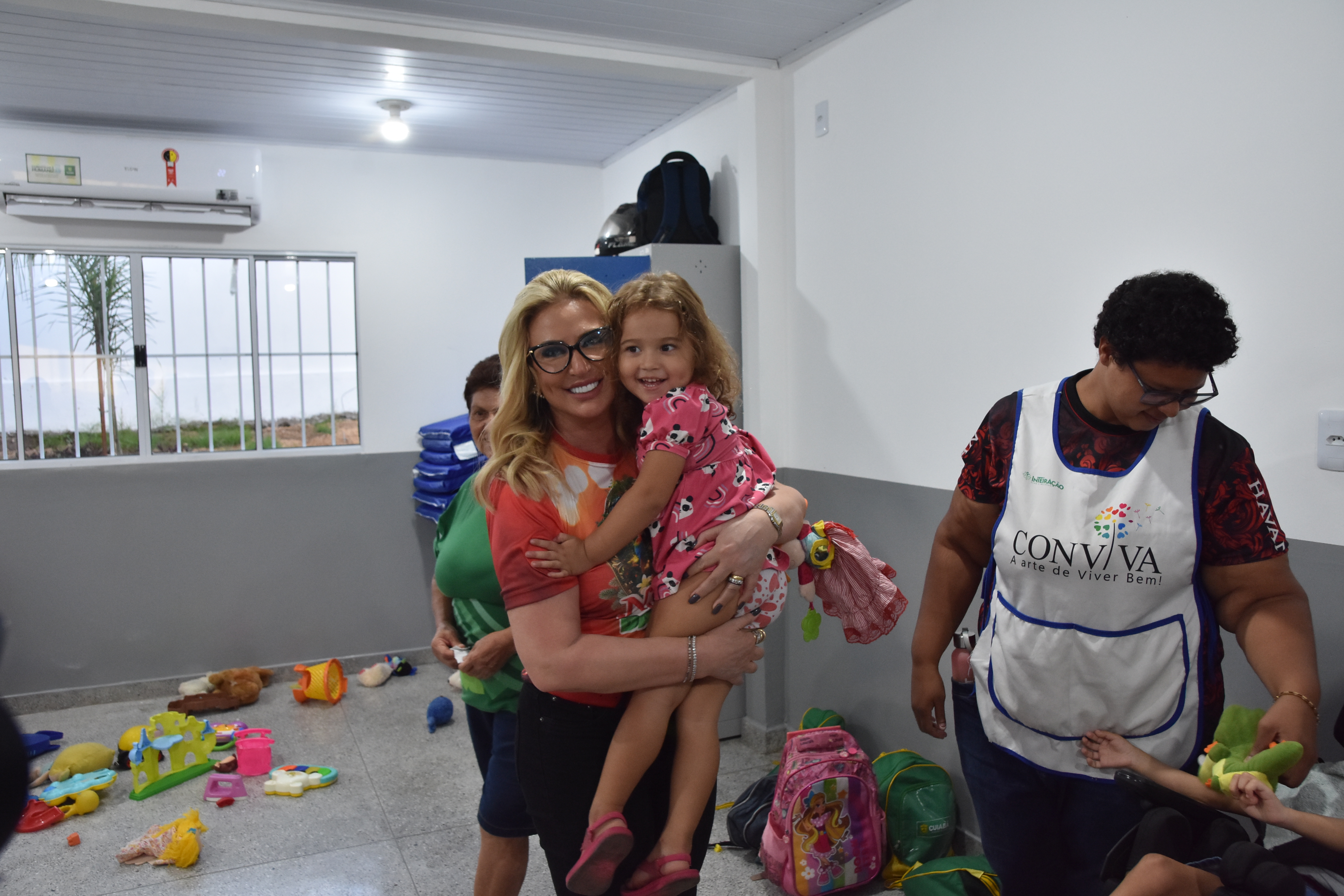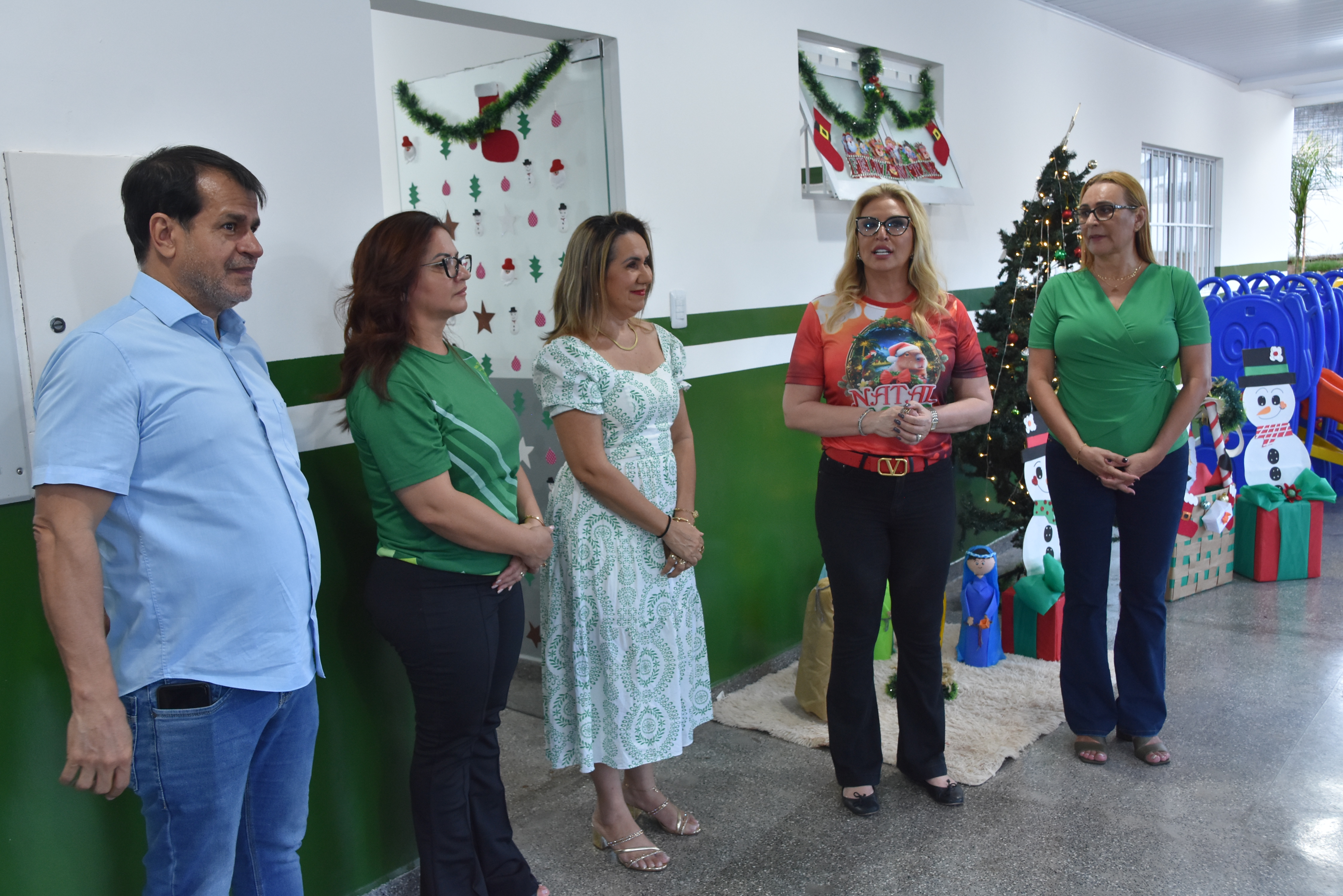 Acompanhada da secretária Municipal de Educação, Edilene de Souza Machado, a primeira-dama Márcia Pinheiro percorreu todos os espaços da unidade incluindo as salas de atividades, cozinha, refeitório e o espaço externo.