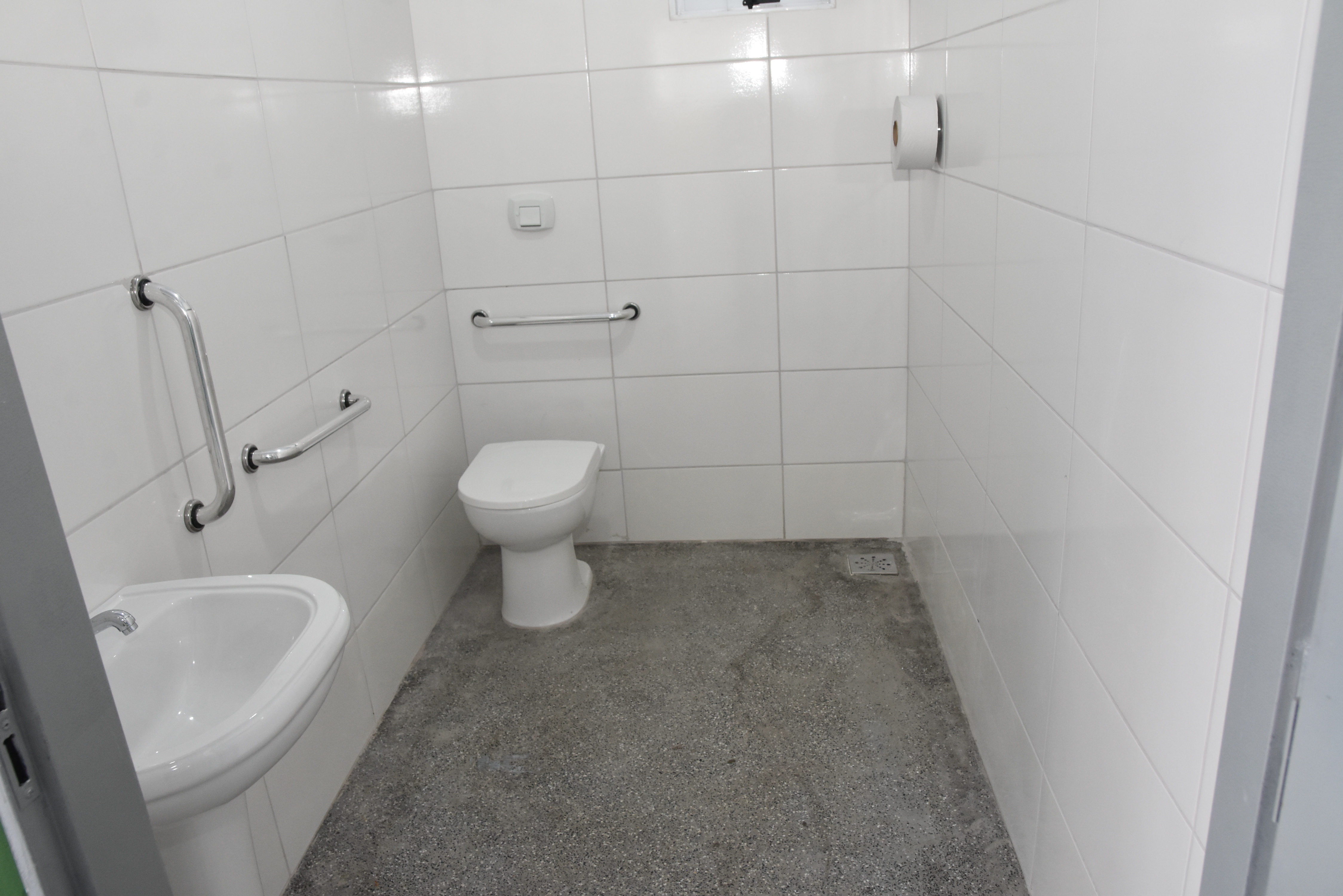 A unidade ganhou dois banheiros infantis com box elevado, um banheiro para adultos e um banheiro para pessoas com deficiência.