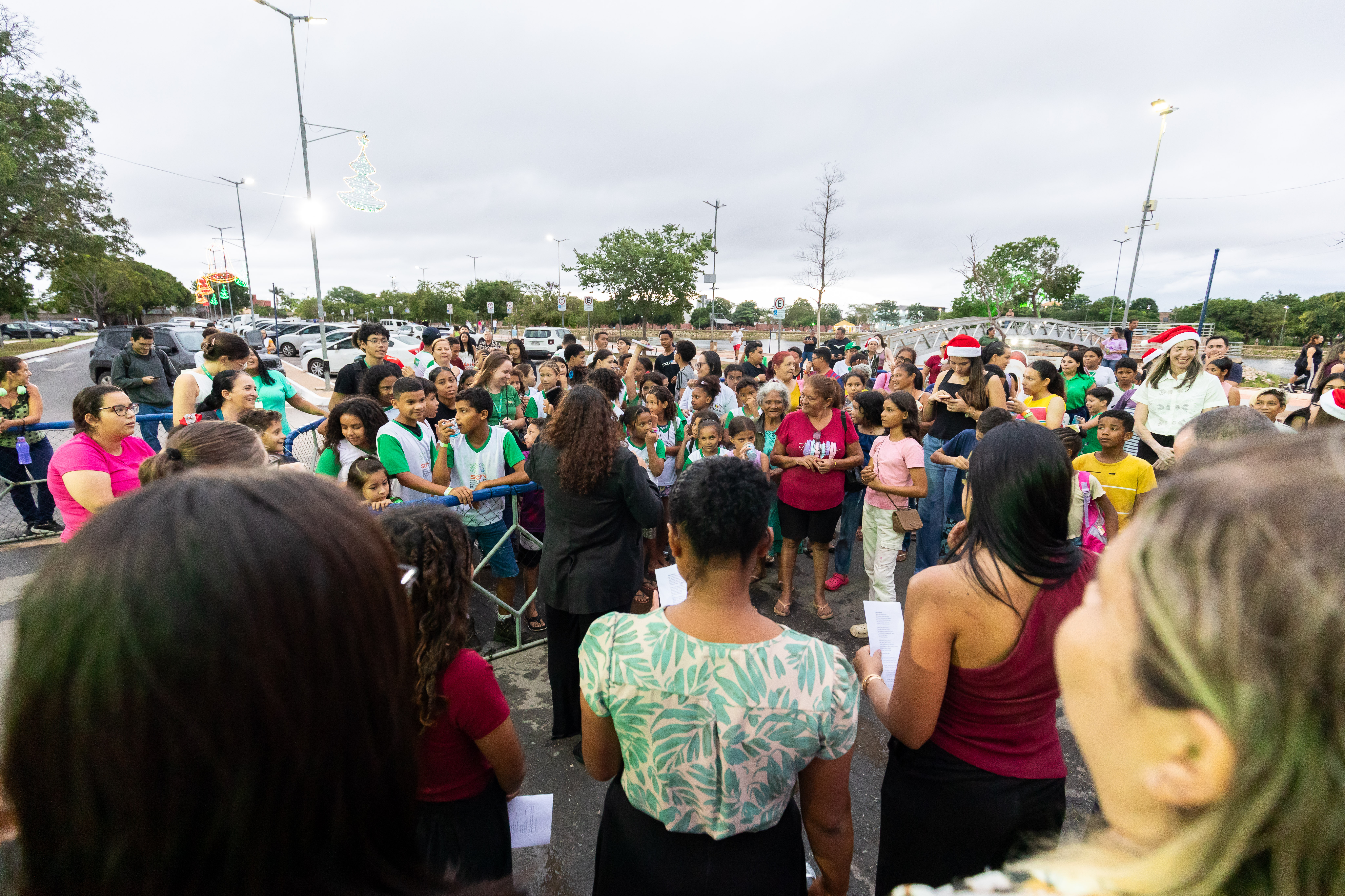 Além das atividades voltadas às crianças, o público também acompanhou a apresentação do coral da Secretaria de Ordem Pública (SORP), formado por servidores municipais, que emocionou os visitantes com músicas natalinas.