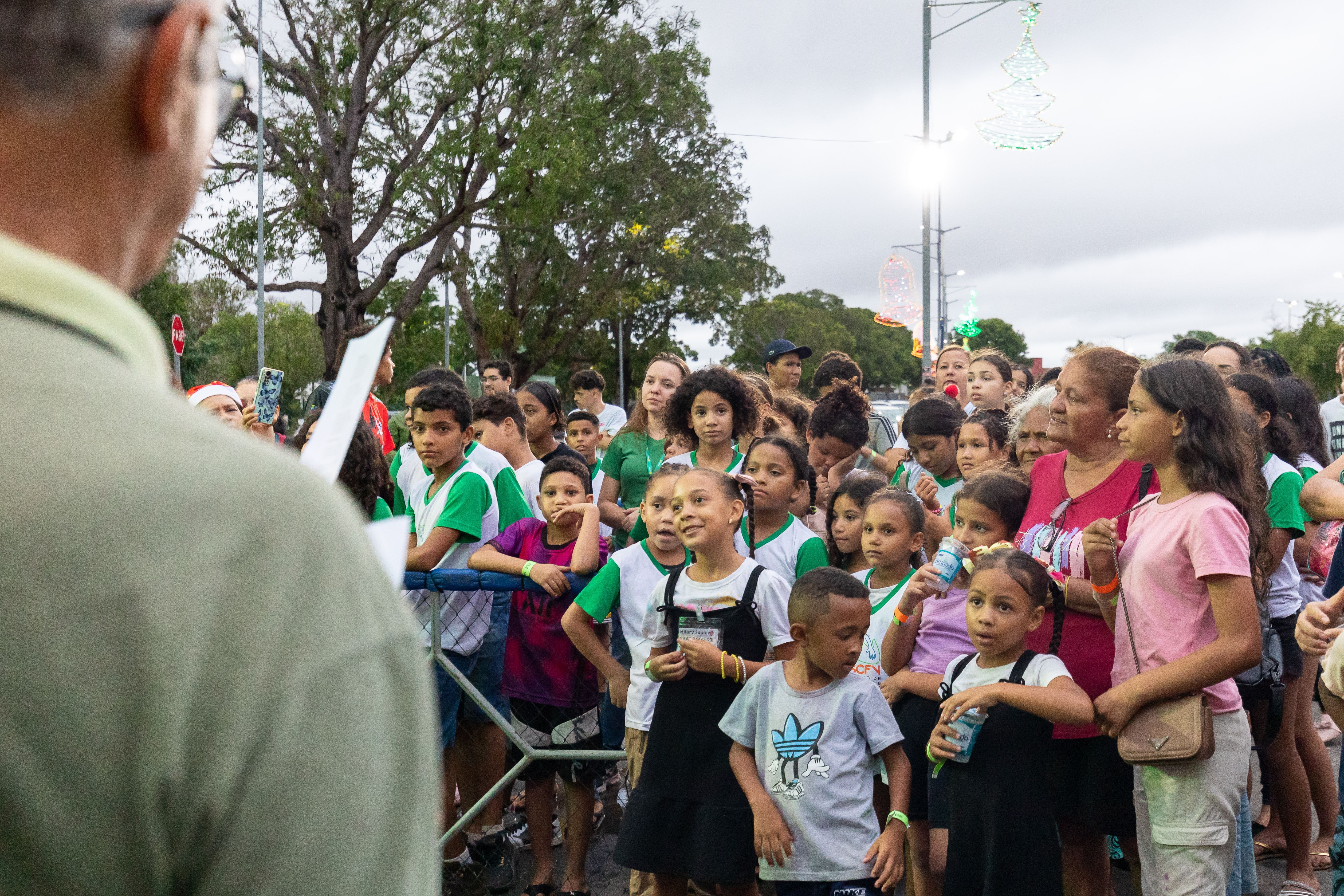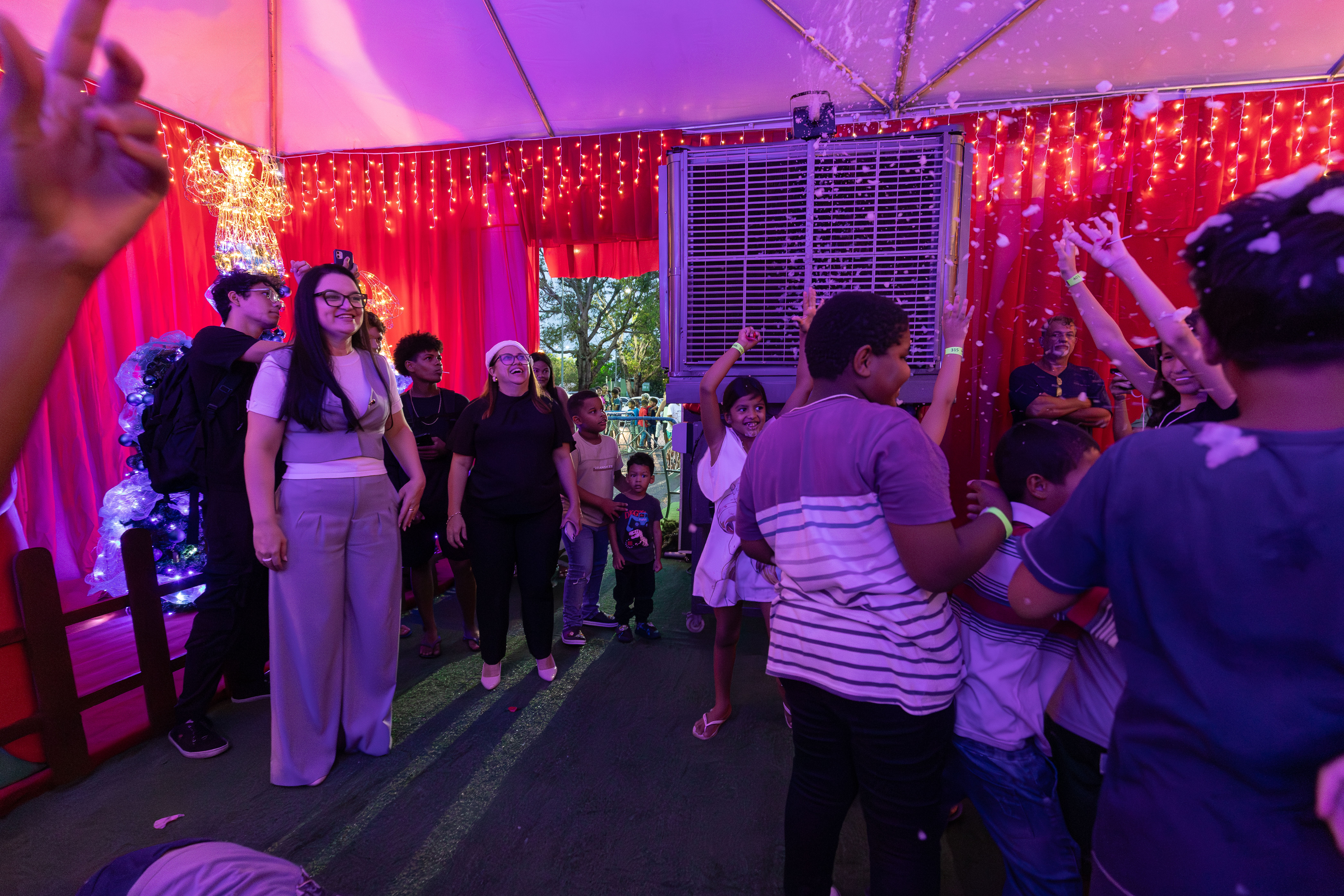 A estrutura natalina montada no parque inclui a Casa do Papai Noel, decoração temática e espaços para registros fotográficos, que permanecerão disponíveis ao público. A chegada do Papai Noel foi um dos momentos mais aguardados, encantando crianças e adultos e reforçando o clima de celebração e união.