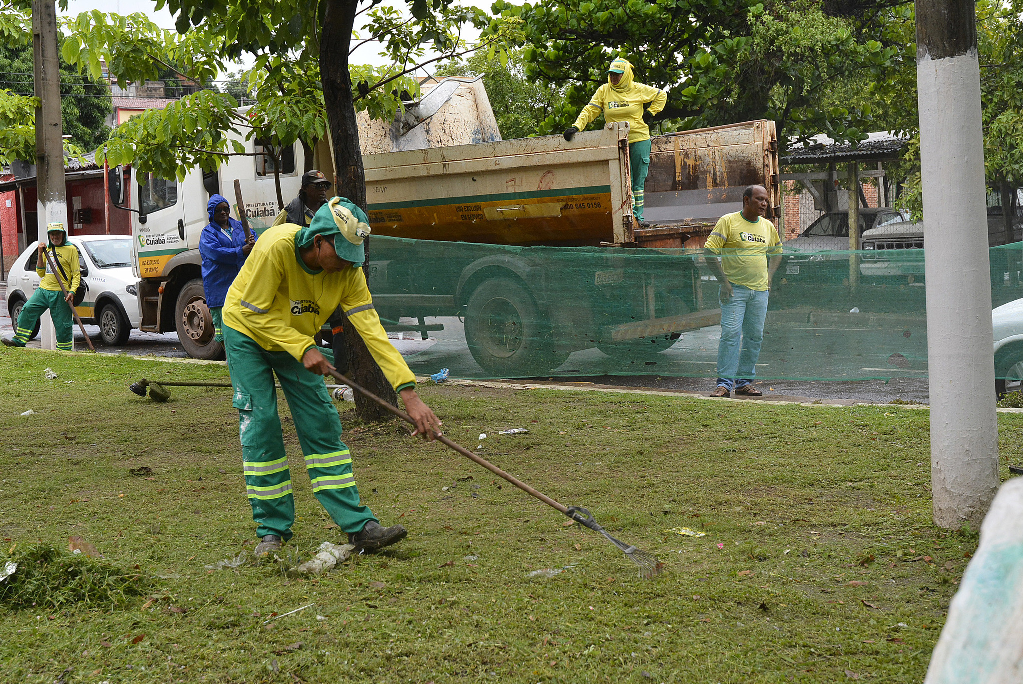 A chuva intermitente que caiu durante a madrugada e a manhã deste sábado (30), atrapalhou um pouco, mas não impediu a realização do mutirão de limpeza pela Prefeitura de Cuiabá no bairro Dom Aquino. Cerca de 300 servidores da Secretaria de Serviços Urbanos trabalharam na limpeza de praças, ruas, desentupimento de bueiros e retirada de lixo depositado pela população em 3 locais de coleta.