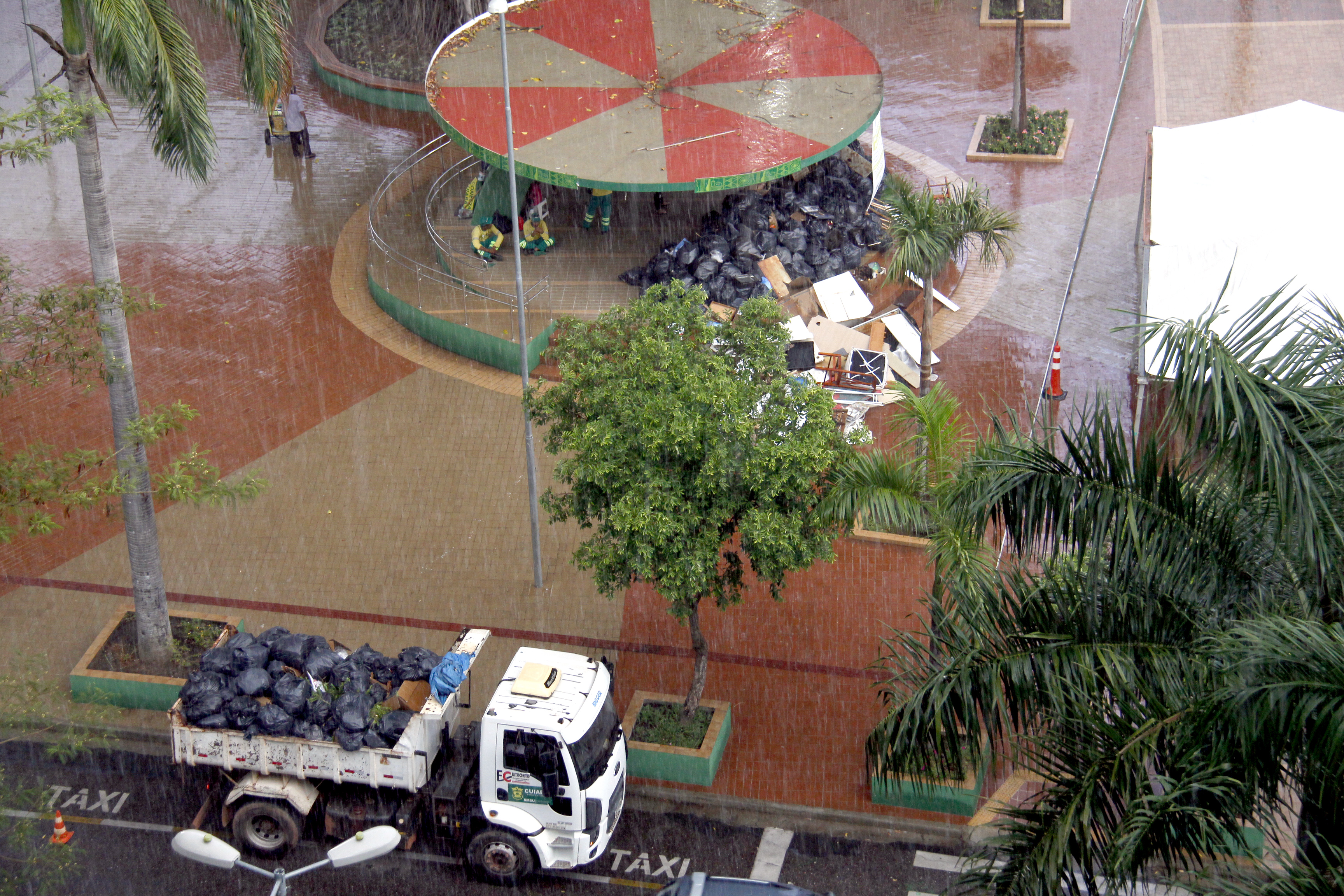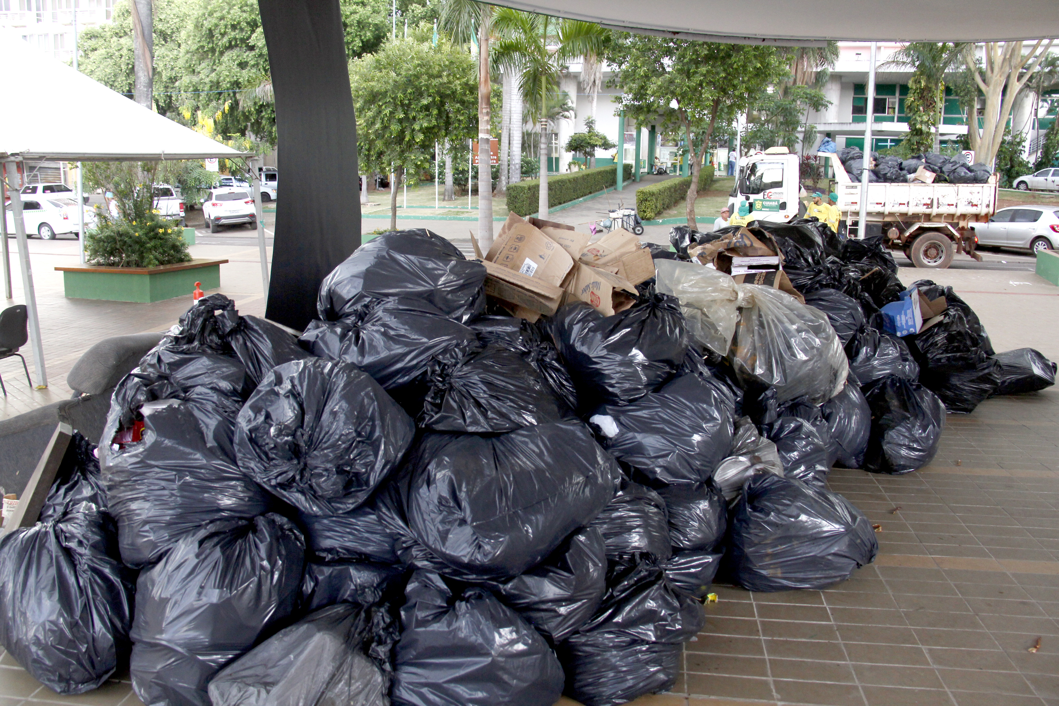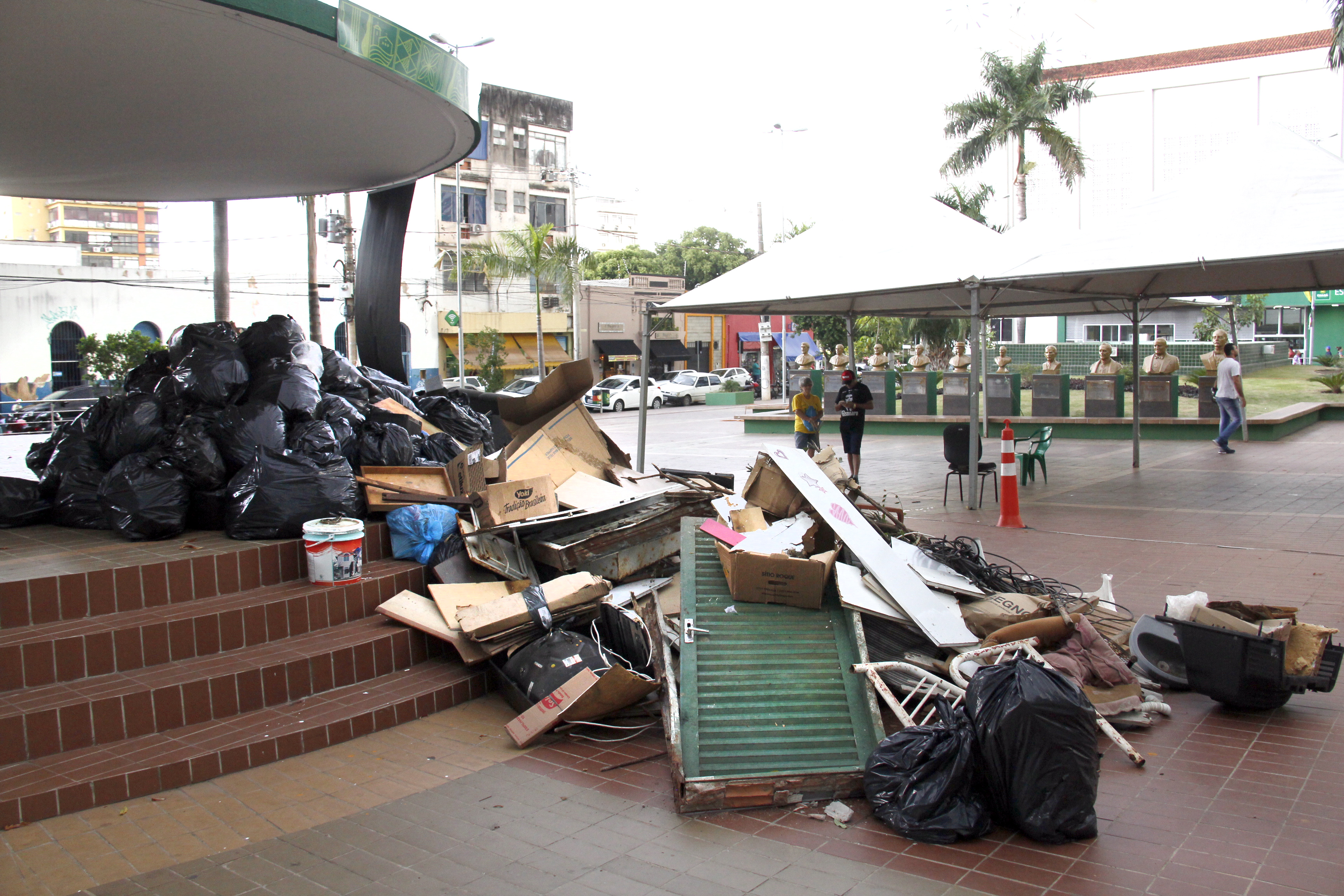 Cinco toneladas de lixo foram retiradas das ruas da região central durante o serviço de coleta da equipe de limpeza urbana da Secretaria de Serviços Urbanos, desde a madrugada desta quinta-feira (25). Todo entulho retirado foi armazenado no coreto da Praça Alencastro para chamar a atenção da população em relação a quantidade de sujeira que é retirada do chão das ruas diariamente, sendo depois encaminhada ao aterro sanitário para a correta destinação dos resíduos.