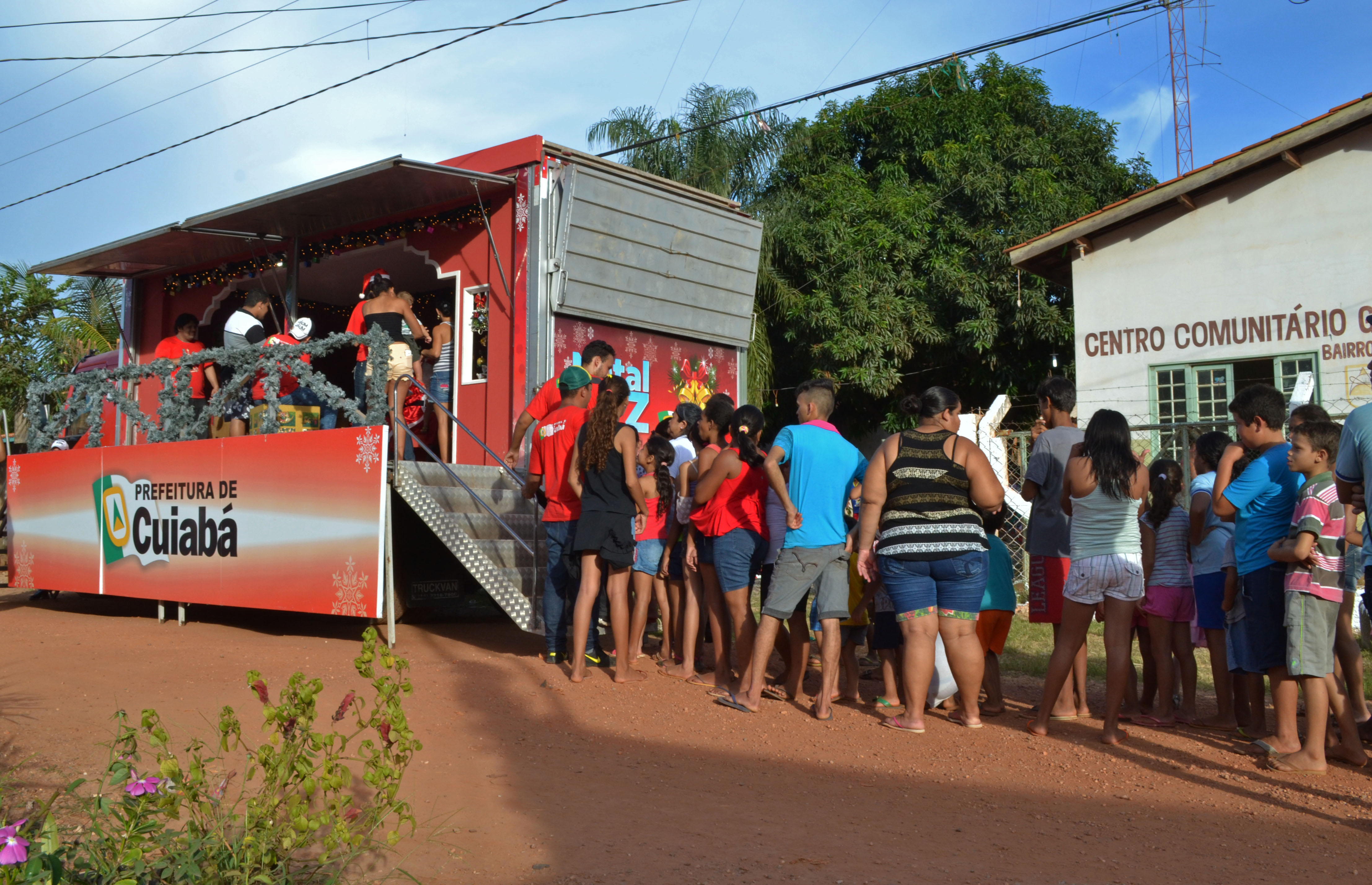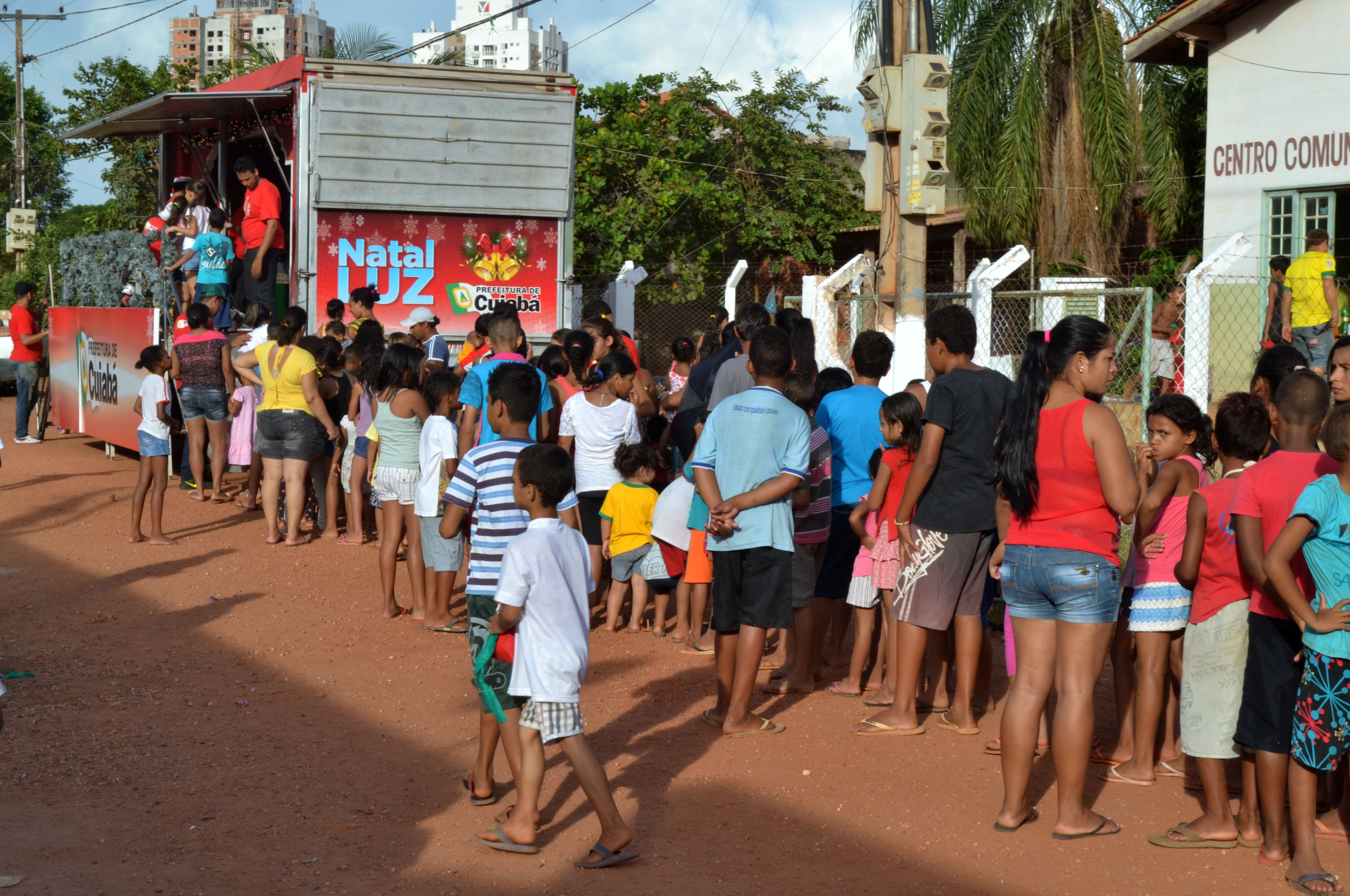 Mais de 500 crianças do bairro Altos da Boa Vista formaram uma enorme fila nesta quarta-feira (17), para aguardar a visita do Caminhão do Papai Noel da Prefeitura de Cuiabá.