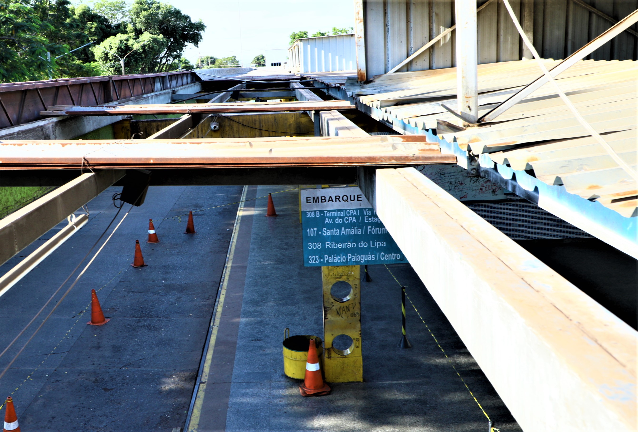 As ações de melhorias na estrutura do Terminal Urbanos do CPA I seguem em plena execução. Coordenado pela Empresa Cuiabana de Zeladoria e Serviços Urbanos (Limpurb), o trabalho abrange, neste momento, a recuperação do telhado. A previsão é de que esta etapa seja concluída em até 120 dias.