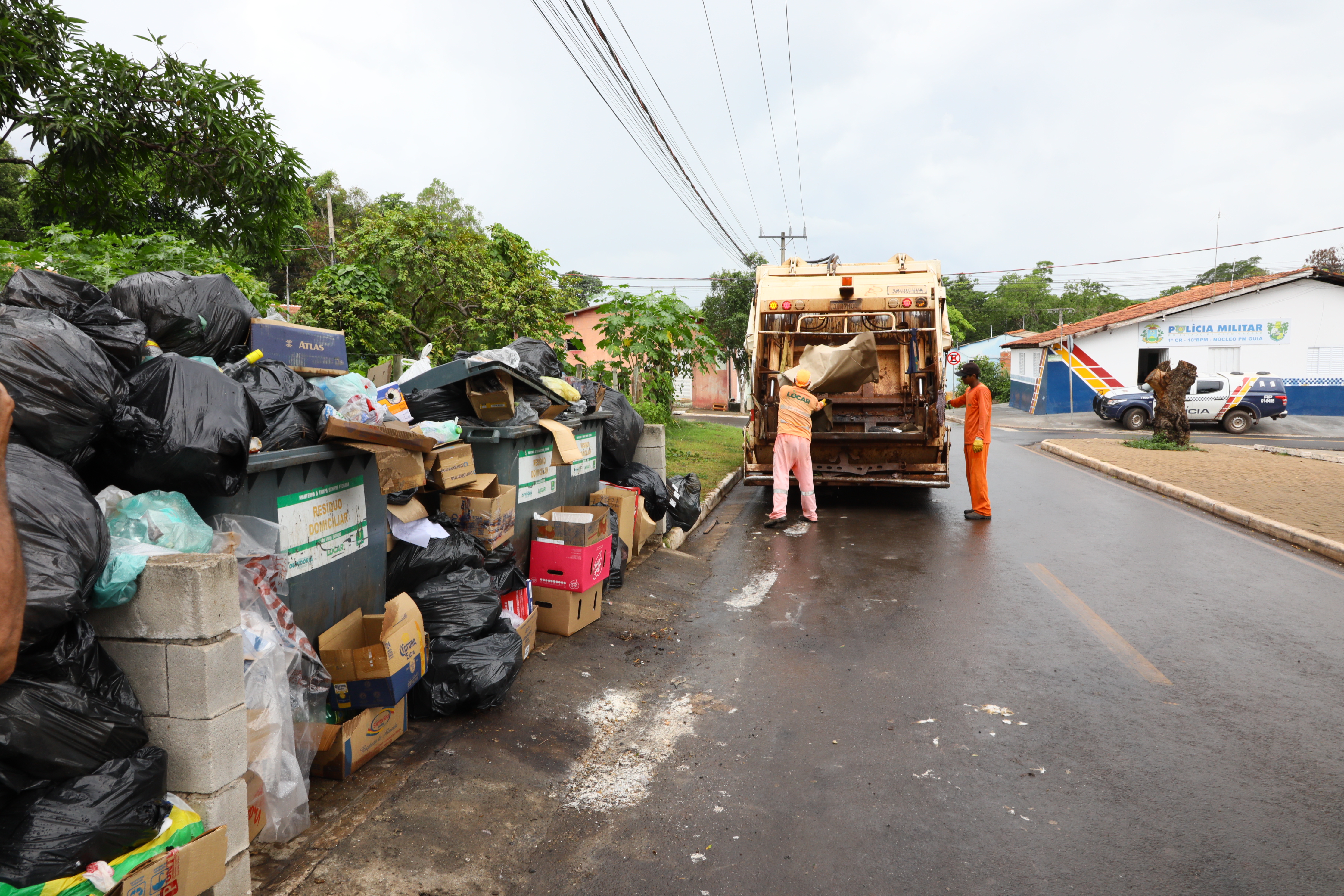 Os caminhões compactadores de lixo percorreram todas as ruas do distrito, além de recolherem os materiais armazenados em contêineres na Rodovia Helder Cândia – MT-010.