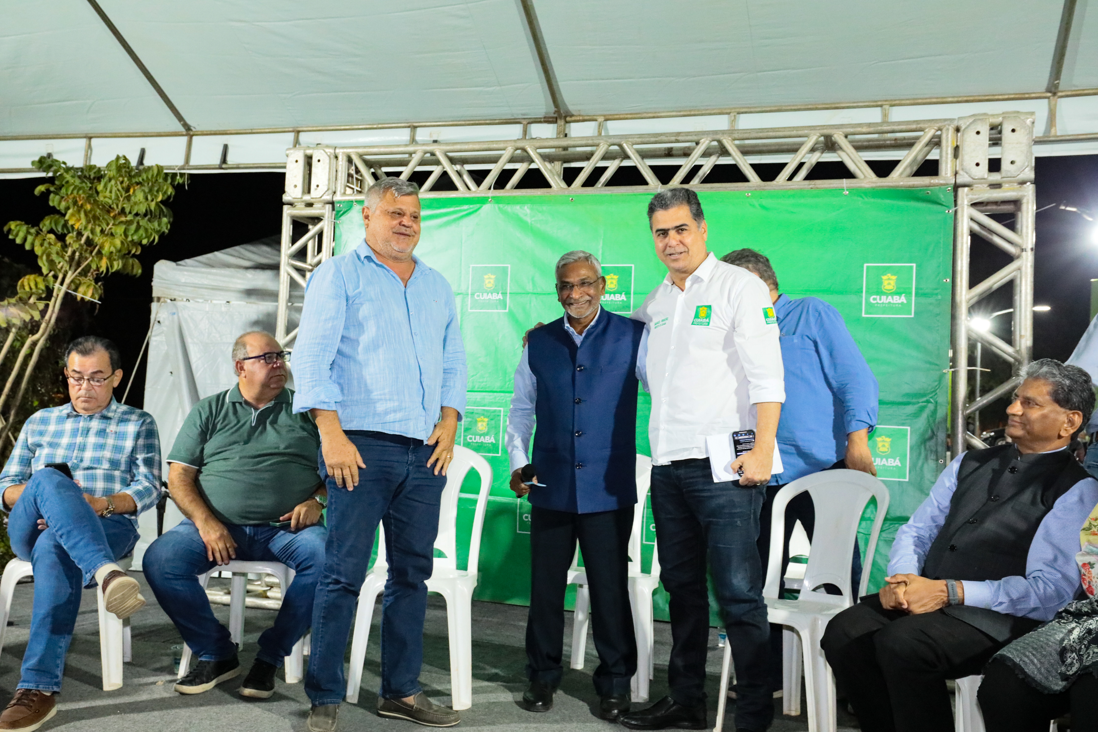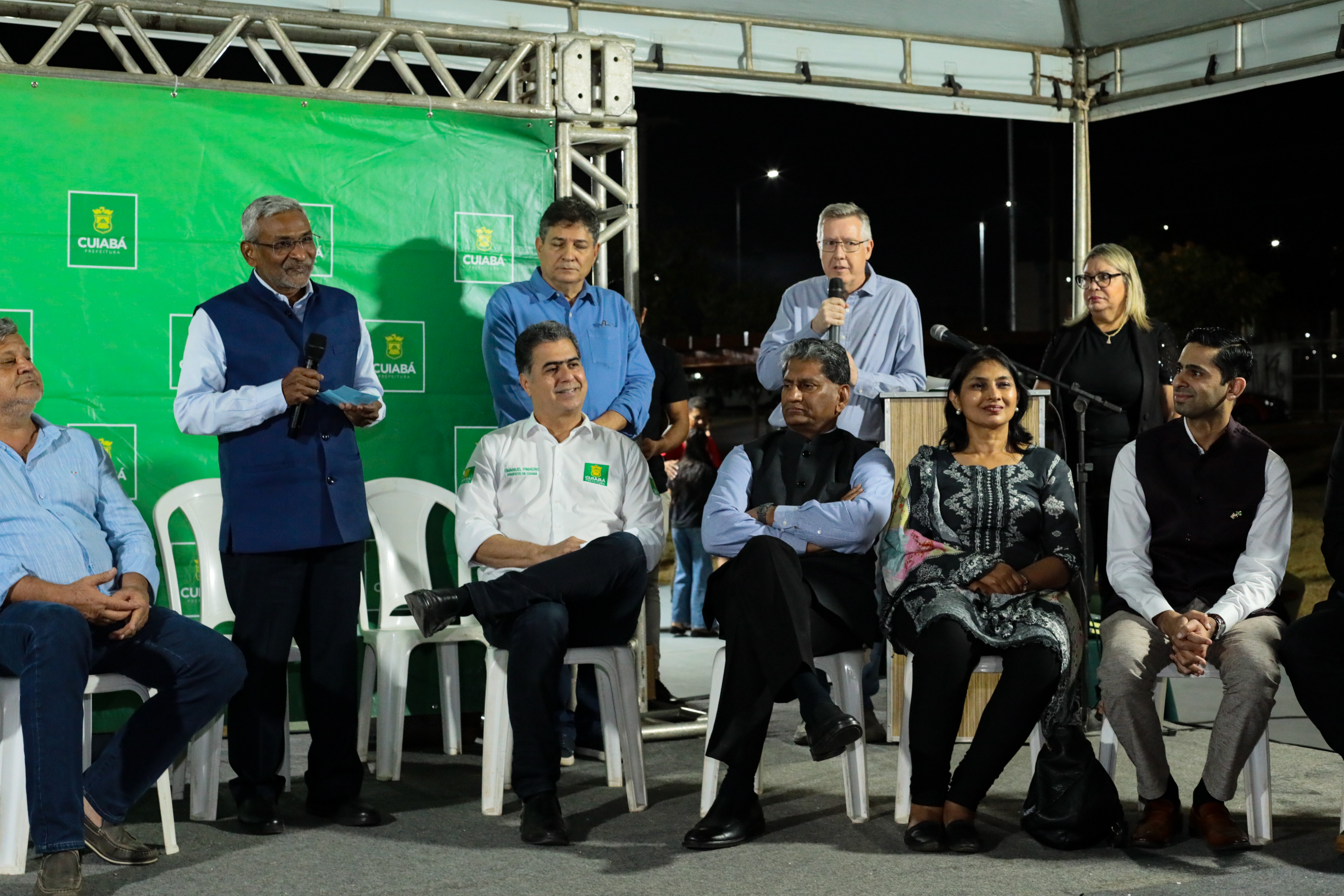Durante a solenidade, o prefeito Emanuel Pinheiro entregou um título de cidadão cuiabano ao Dr. Umesh Mukhi, indiano residente na capital e representante do povo indiano em Cuiabá.