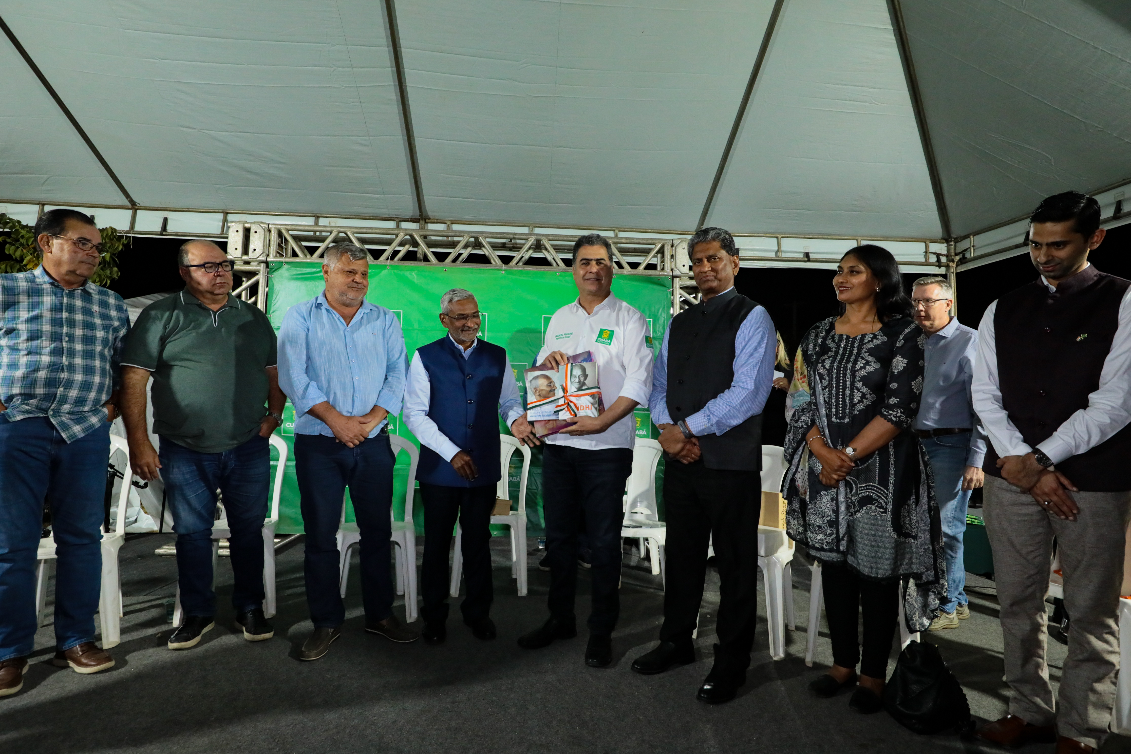 Durante seu discurso, o embaixador Suresh Reddy destacou as belezas de Cuiabá, agradeceu pela utilização da imagem de Gandhi para estimular a paz na população e mencionou os avanços da capital desde sua última visita em 2022.