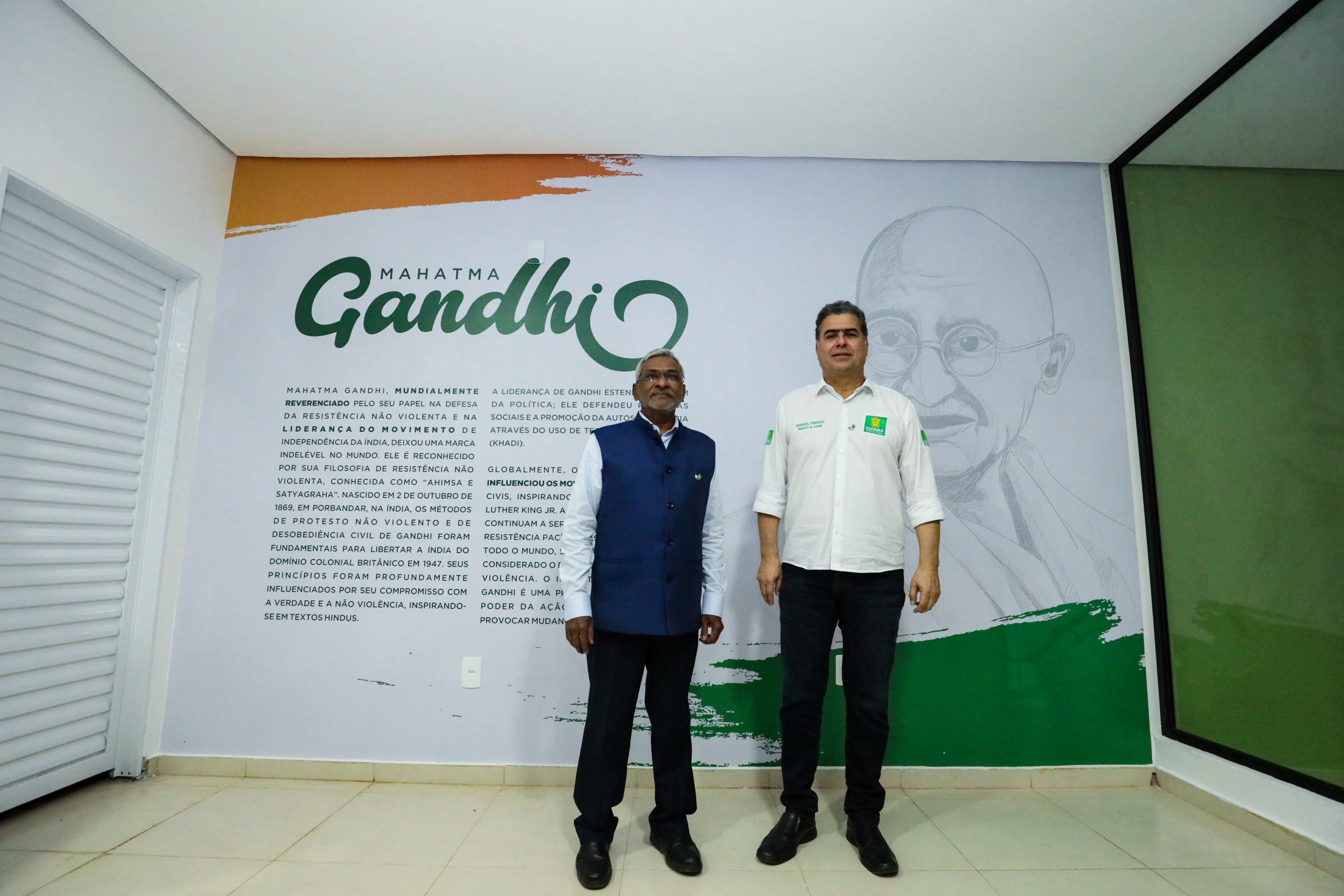 "Este momento histórico foi planejado ainda no meu primeiro mandato, quando, através do deputado federal Emanuel Pinheiro Neto, fomos recebidos pelo embaixador Suresh Reddy na Embaixada da Índia, em Brasília. Desde o início, as autoridades indianas se mostraram interessadas em conhecer nossa capital, nossa cultura e estreitar os laços. Através dessa proximidade, pudemos perceber de perto o vasto potencial da Índia, uma nação extraordinária, com 1,4 bilhão de habitantes, uma das mais populosas e uma das grandes potências mundiais. E é aí que entra a figura universal de um dos maiores ícones da história humana, Mahatma Gandhi", explicou o prefeito.