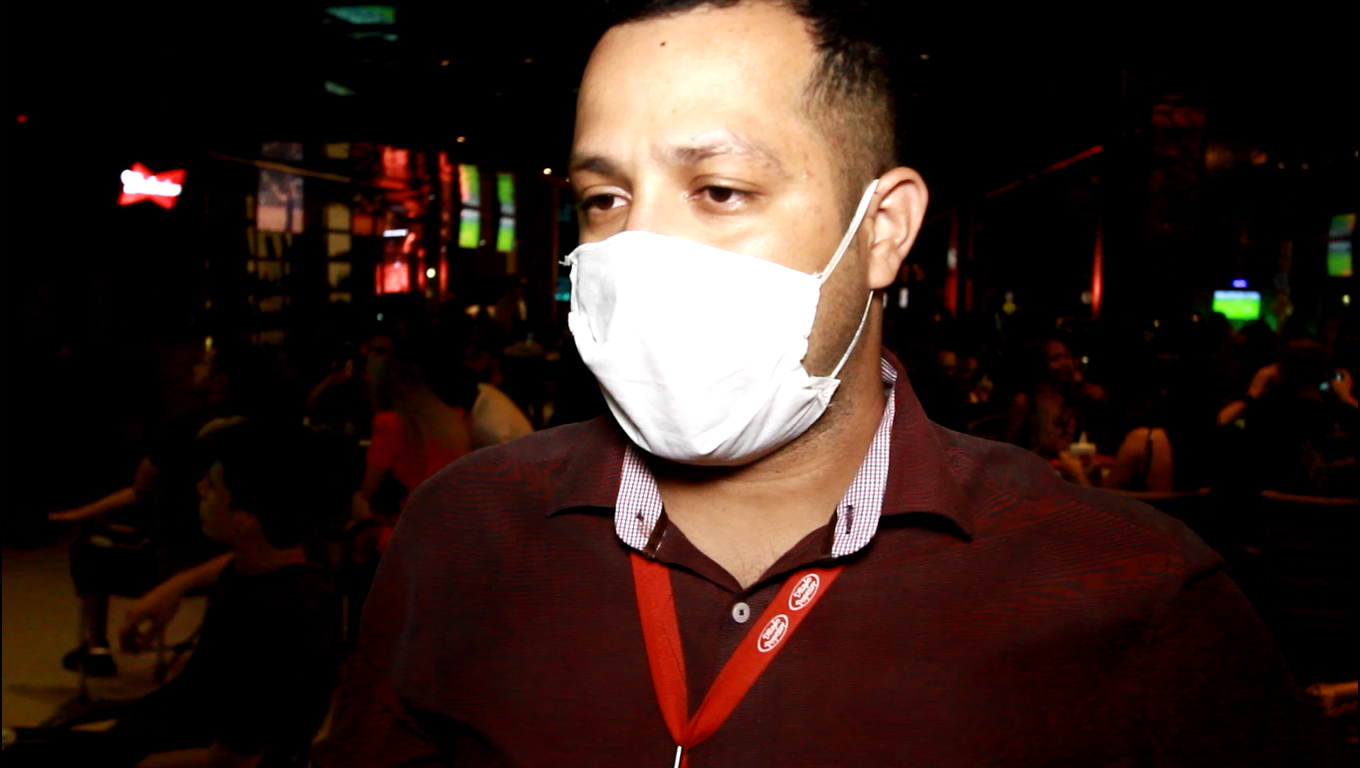 Mas ele também aponta que alguns pedidos são incompatíveis com a realidade, por exemplo, pedir que as pessoas utilizem máscaras quando estão sentadas, pois é quando elas estão comendo e bebendo. “Eu já fui bem sincero pro fiscal e falei pra ele que dessa forma é muito difícil trabalhar. A gente exige, quando eles vão ao banheiro ou ao caixa, que eles usem máscara para não ter contato com outras pessoas, mas, na mesa é bem complicado. Eu acho que quando ele está sentado na mesa dele com sua família, um grupo de amigos, eles têm que ficar a vontade, pelo menos isso, né?”, avalia o gerente.