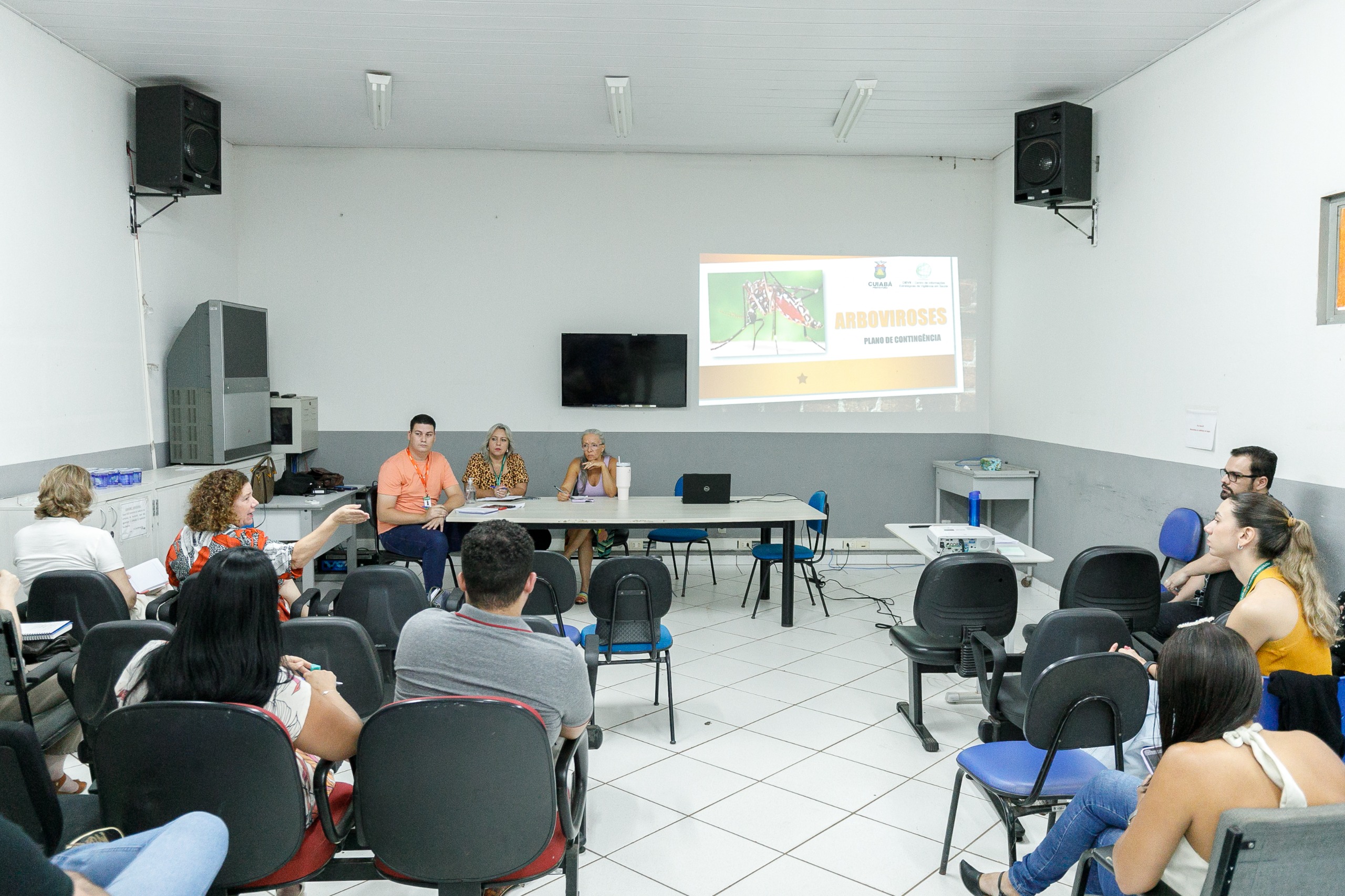 O Comitê de Contenção às Arboviroses, composto por representantes de diversos setores da Vigilância Sanitária, reuniu-se na quinta (31), no auditório da unidade, com a secretária municipal de Saúde de Cuiabá, Lúcia Helena Barboza Sampaio, para discutir as estratégias e ações articuladas para o enfrentamento ao avanço das doenças transmitidas pelo mosquito Aedes aegypti, como Dengue e Chikungunya.
