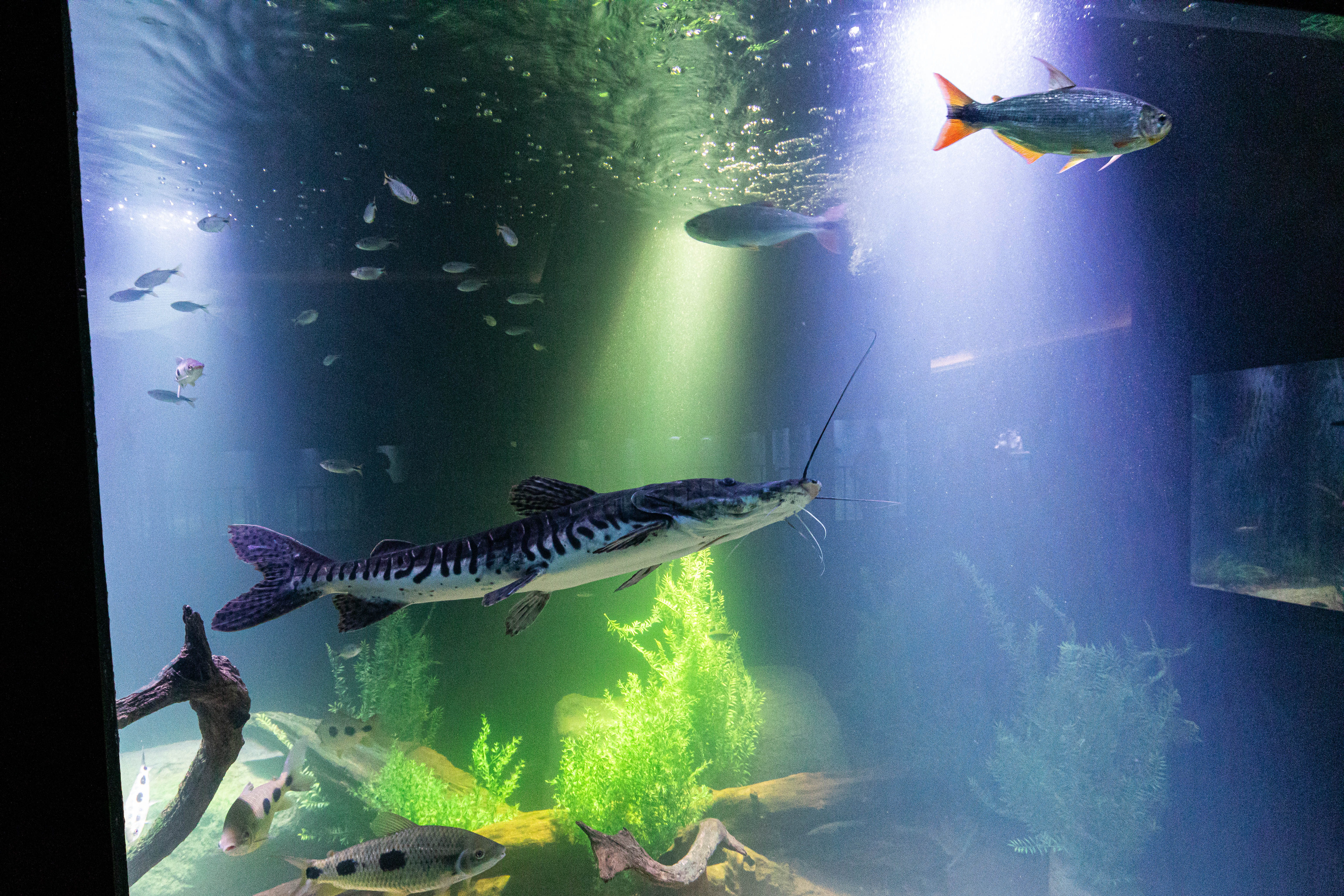 O Aquário abriga aproximadamente 1.500 peixes de 22 espécies diferentes dos biomas Amazônia, Pantanal e Cerrado. Exemplares de pirarucu, tambaqui, pirarara, dourado, cachara, jaú e jundiá despertam curiosidade e encantamento, especialmente entre crianças e estudantes, reforçando o caráter educativo do passeio.