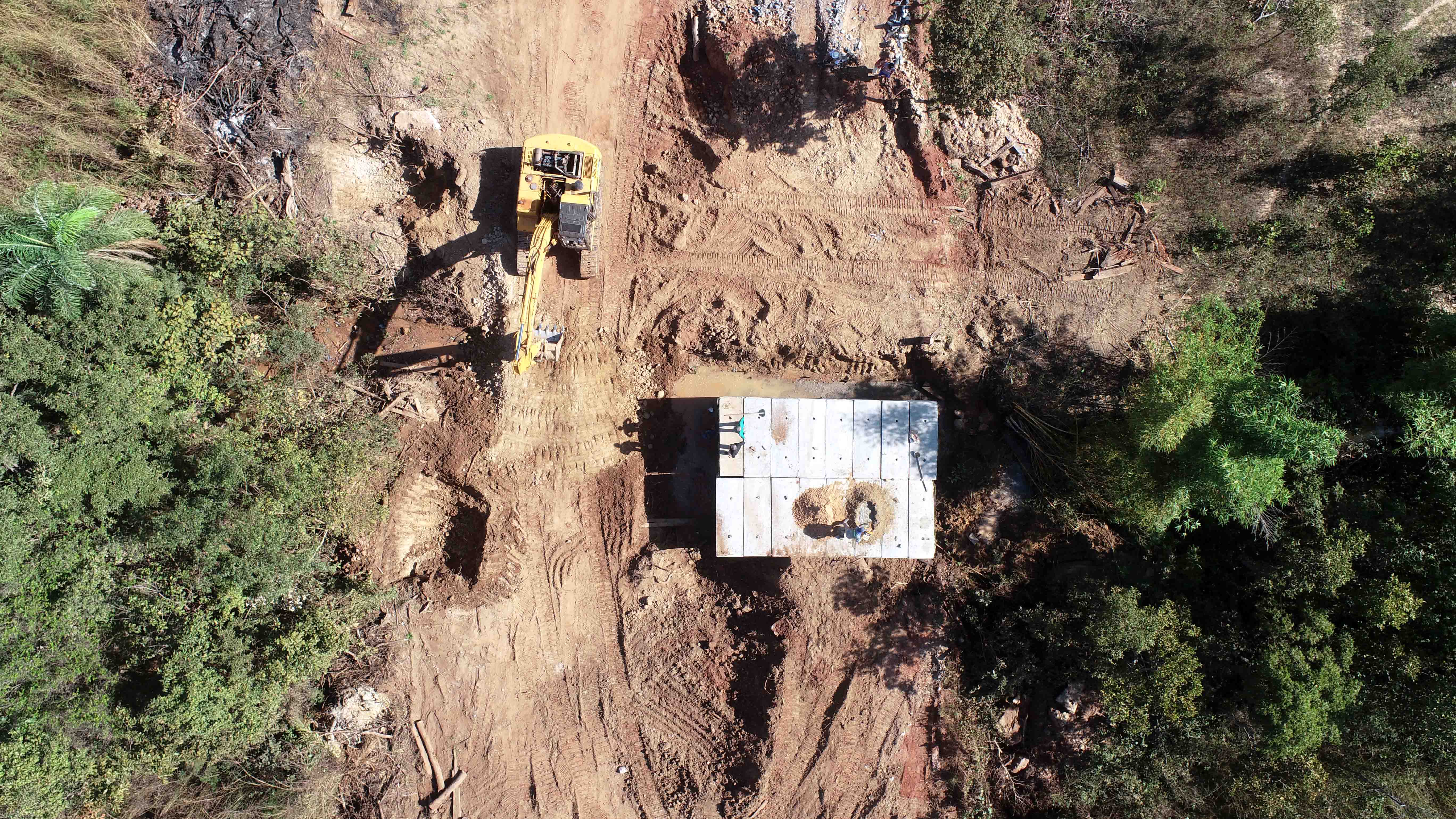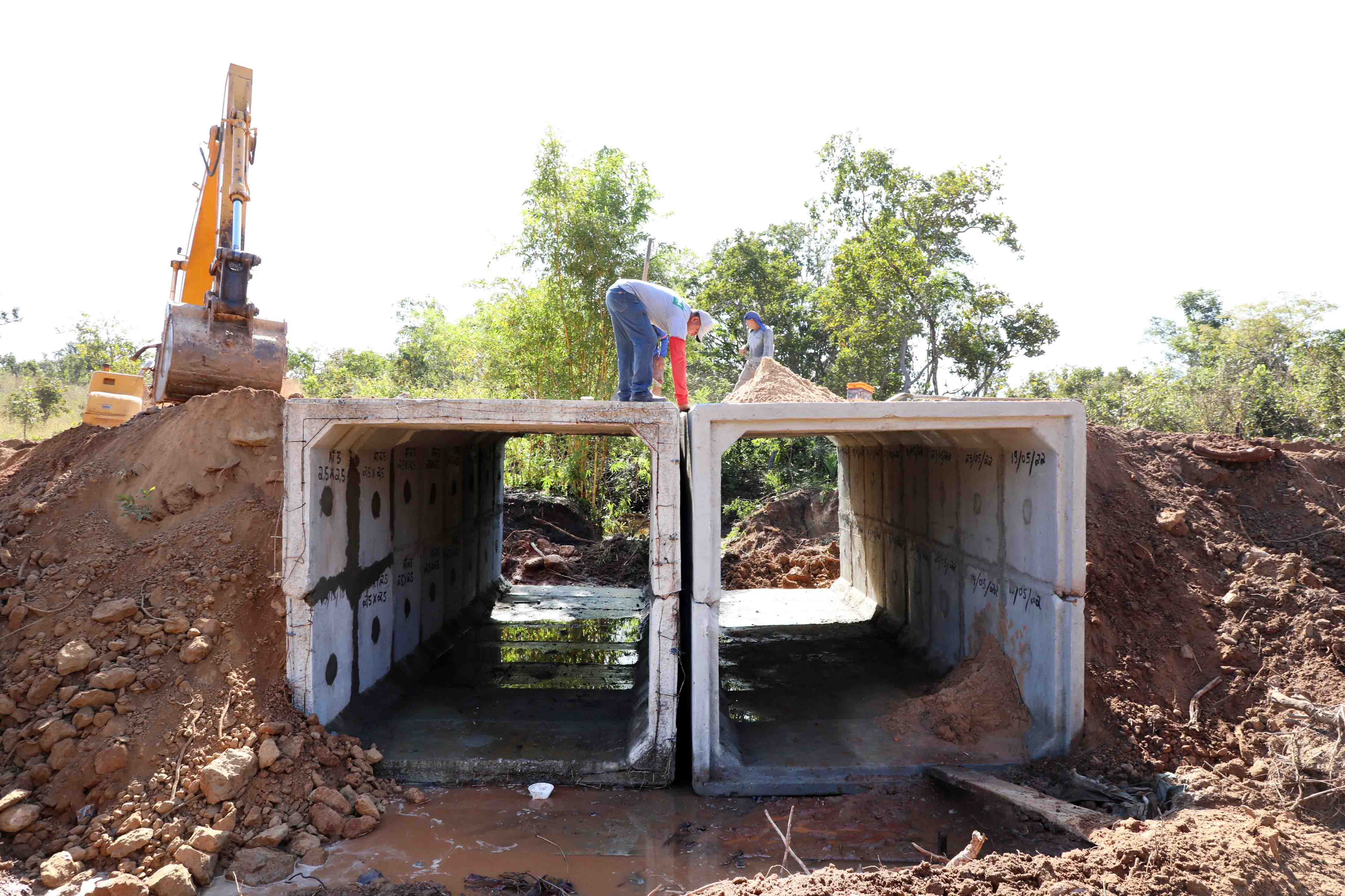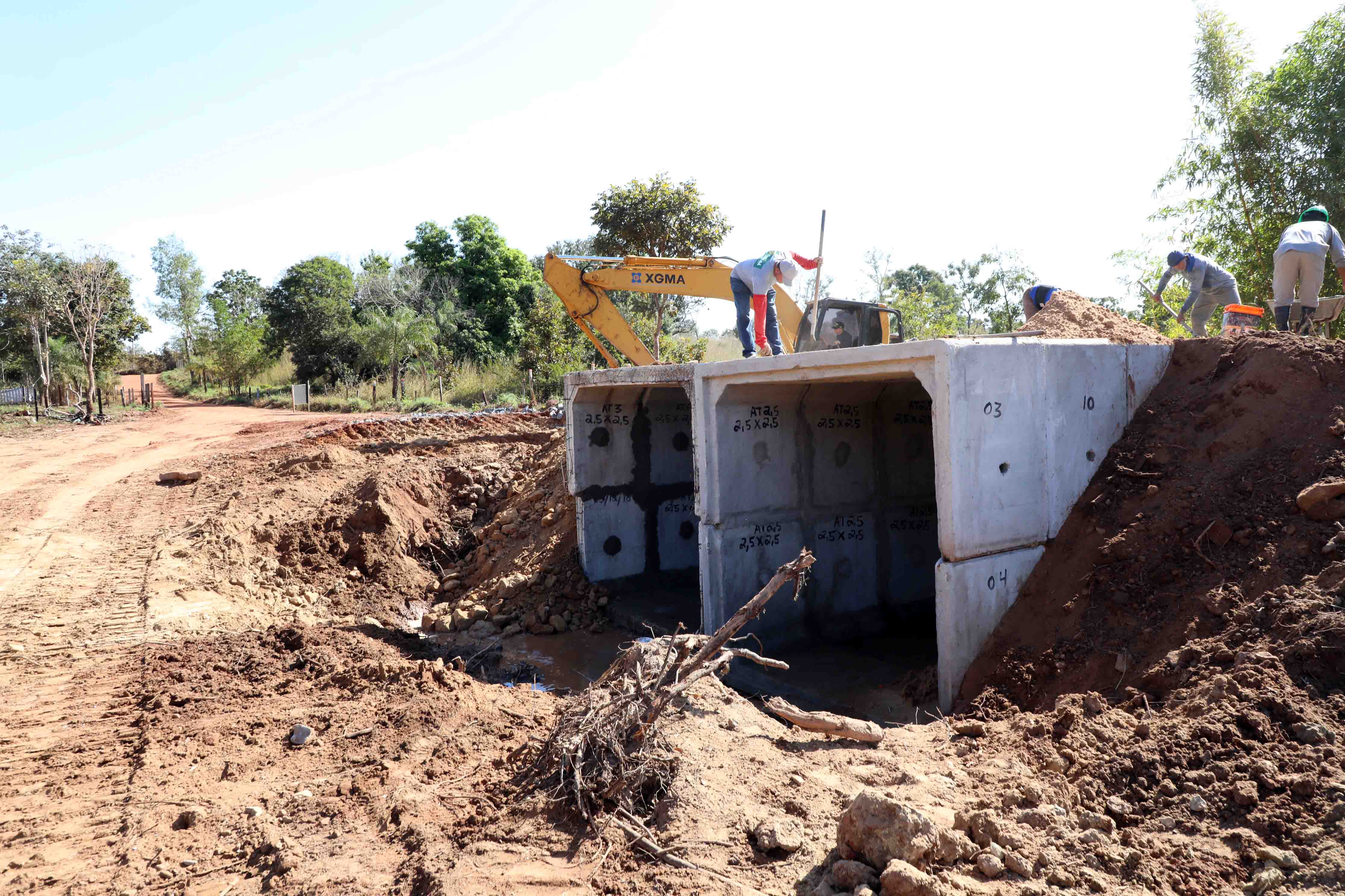 Dando sequência ao atendimento das demandas da zona rural municipal, a Prefeitura de Cuiabá, por meio da Secretaria de Obras Públicas (SMOP), executa, na Comunidade do Chaparral, a construção de uma travessia de concreto sobre o Córrego Capitão. Os trabalhos estão concentrados no procedimento de fixação das aduelas e, posteriormente, seguirá para a parte de compactação das cabeceiras.