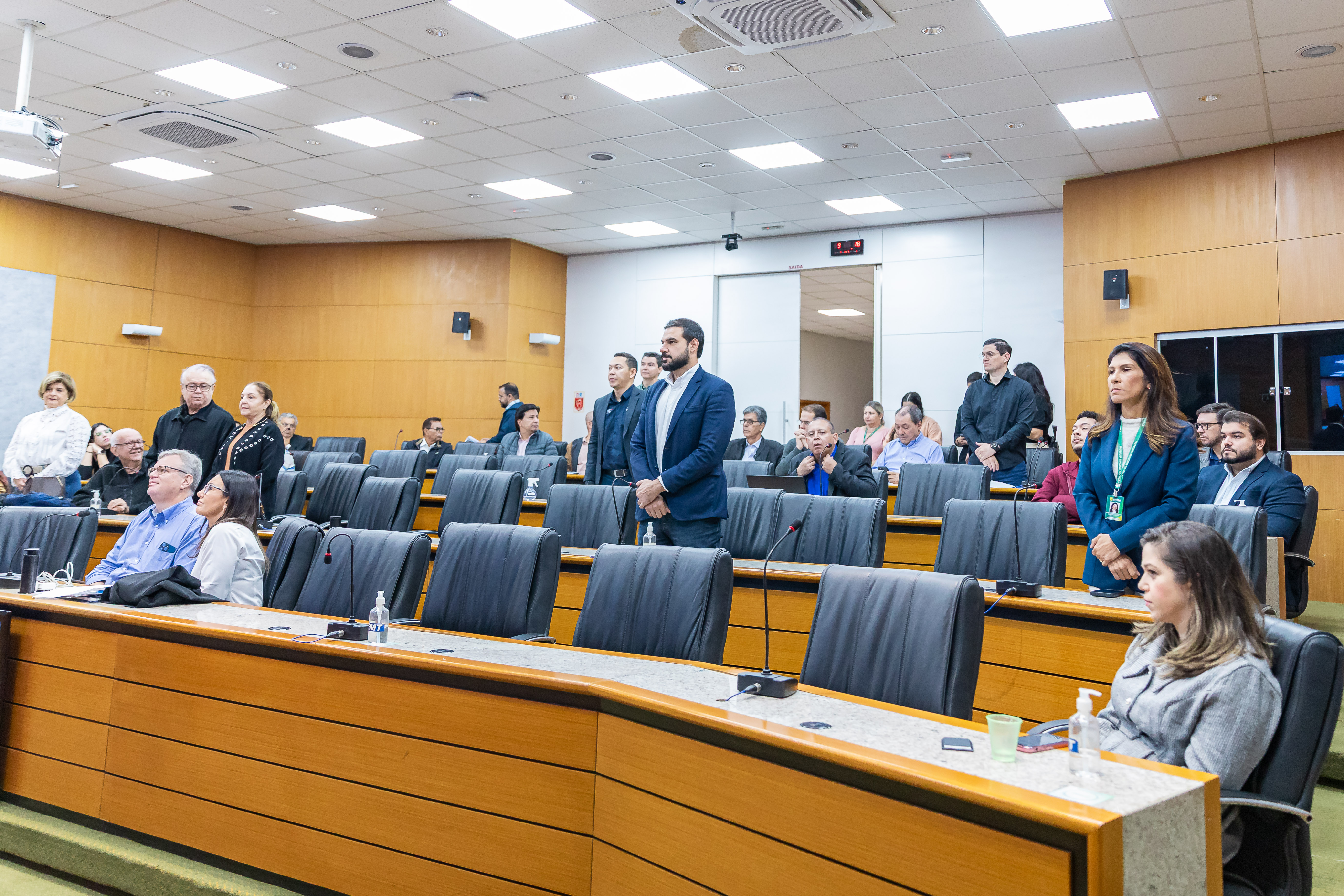 Ele também reforçou sua urgência em avançar com projetos para Cuiabá, sendo aplaudido pelos conselheiros presentes.