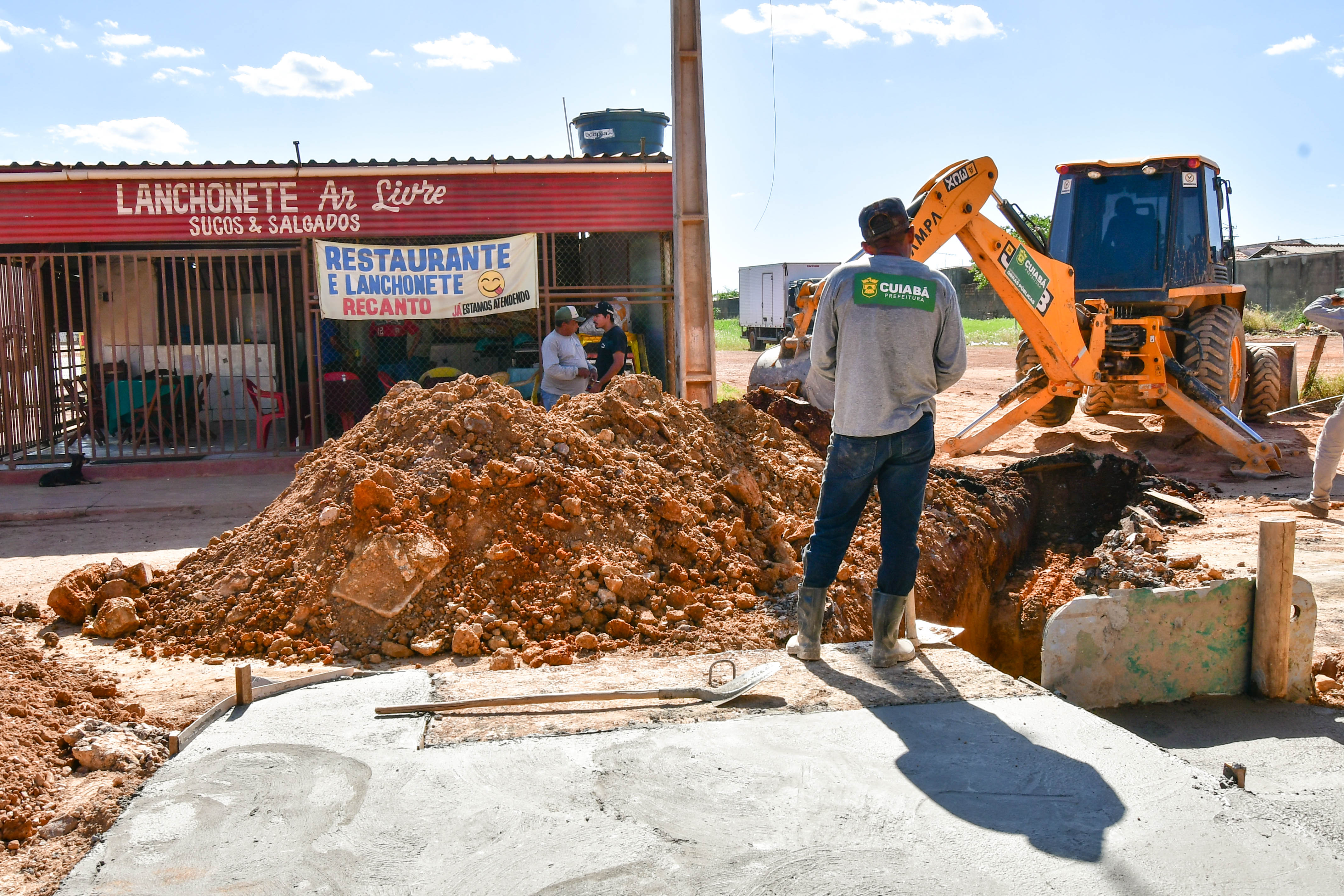 Construção da rede de drenagem do bairro Nova Conquista avança em Cuiabá
