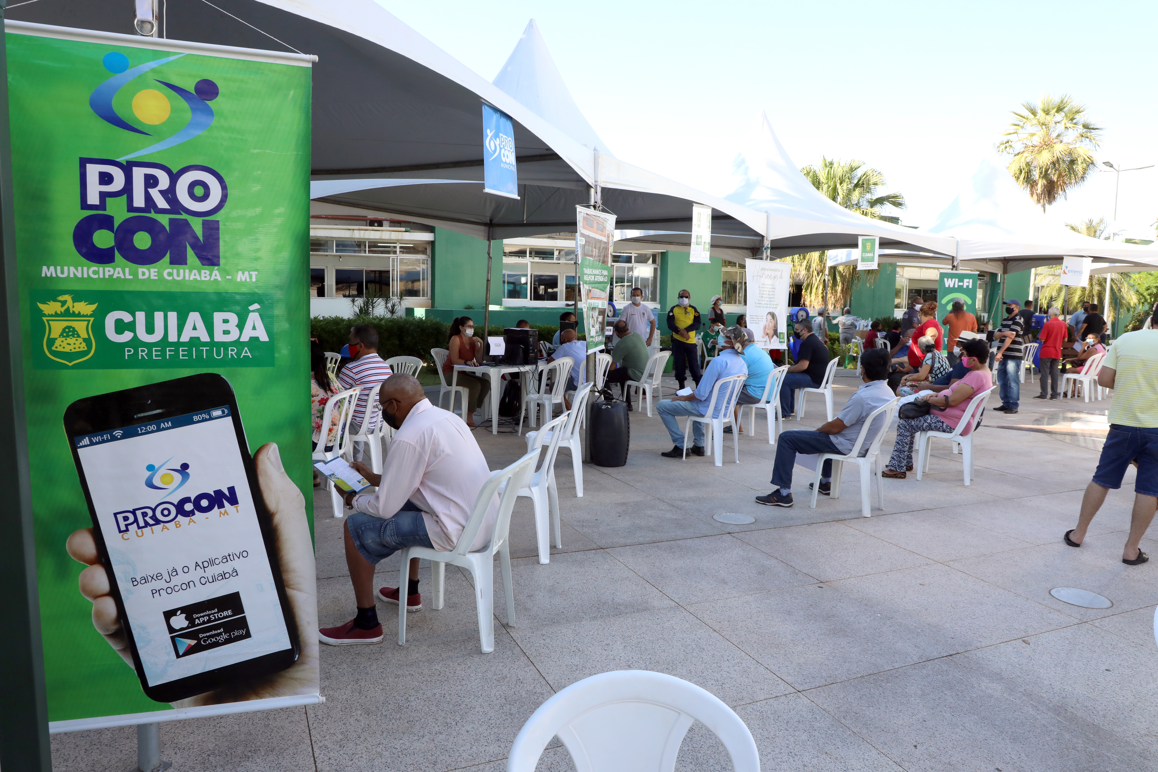 No segundo dia do “Mutirão do Consumidor”, os contribuintes buscaram atendimentos para sanar pendências monetárias e de serviços. A ação é realizada na Praça Moreira Cabral, em frente à Câmara de Vereadores de Cuiabá. Dentre os órgãos envolvidos, por determinação do prefeito Emanuel Pinheiro que mostra-se sensível à situação econômica em razão do enfrentamento à pandemia causada pela Covid19, está o Procon Municipal, Secretaria de Mobilidade Urbana (Semob), Procuradoria Geral do Município (PGM), Ouvidoria, Defensoria Pública e o Sistema Nacional de Emprego (Sine).