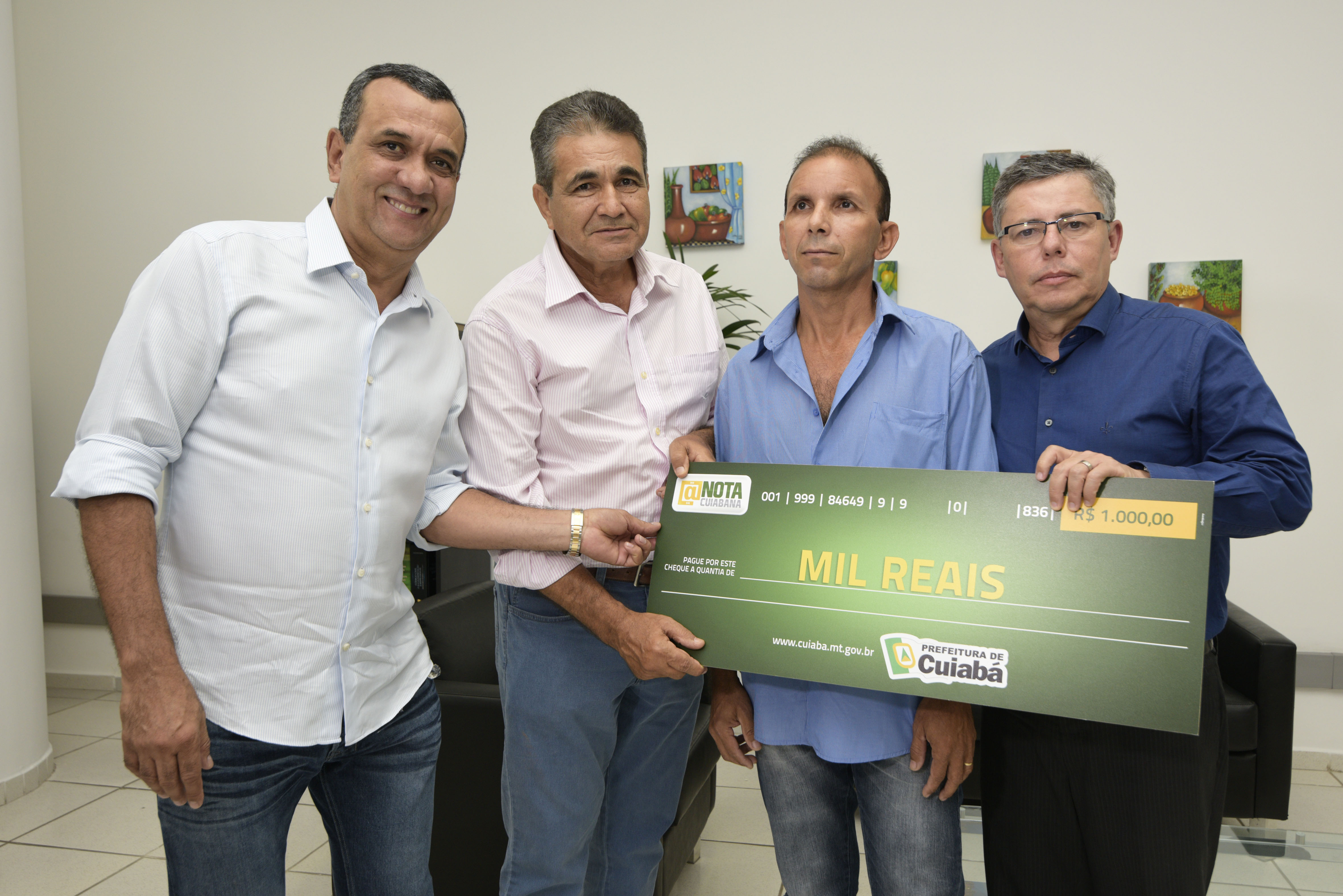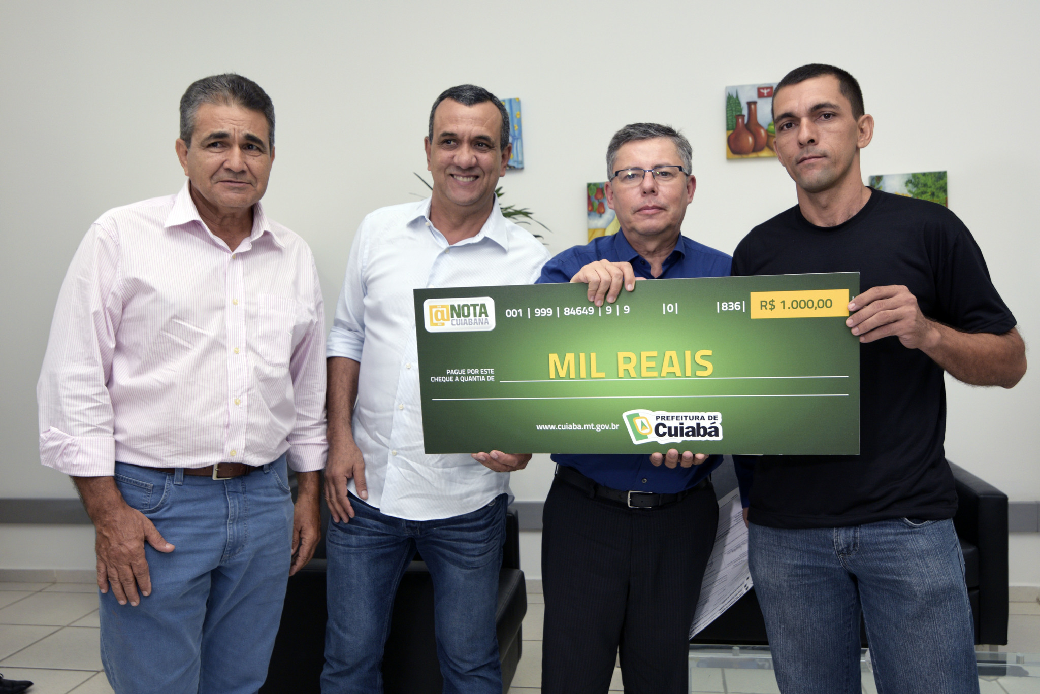 Onze ganhadores do sorteio da Nota Cuiabana receberam R$ 30 mil em prêmios na tarde desta segunda-feira (28), sendo um prêmio de R$ 20 mil e outros 10 prêmios de R$ 1 mil. O dinheiro foi entregue pelo secretário municipal de Fazenda, Pascoal Santullo Neto.
