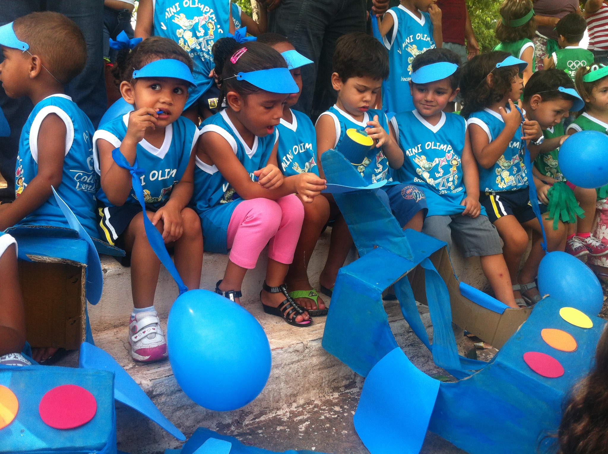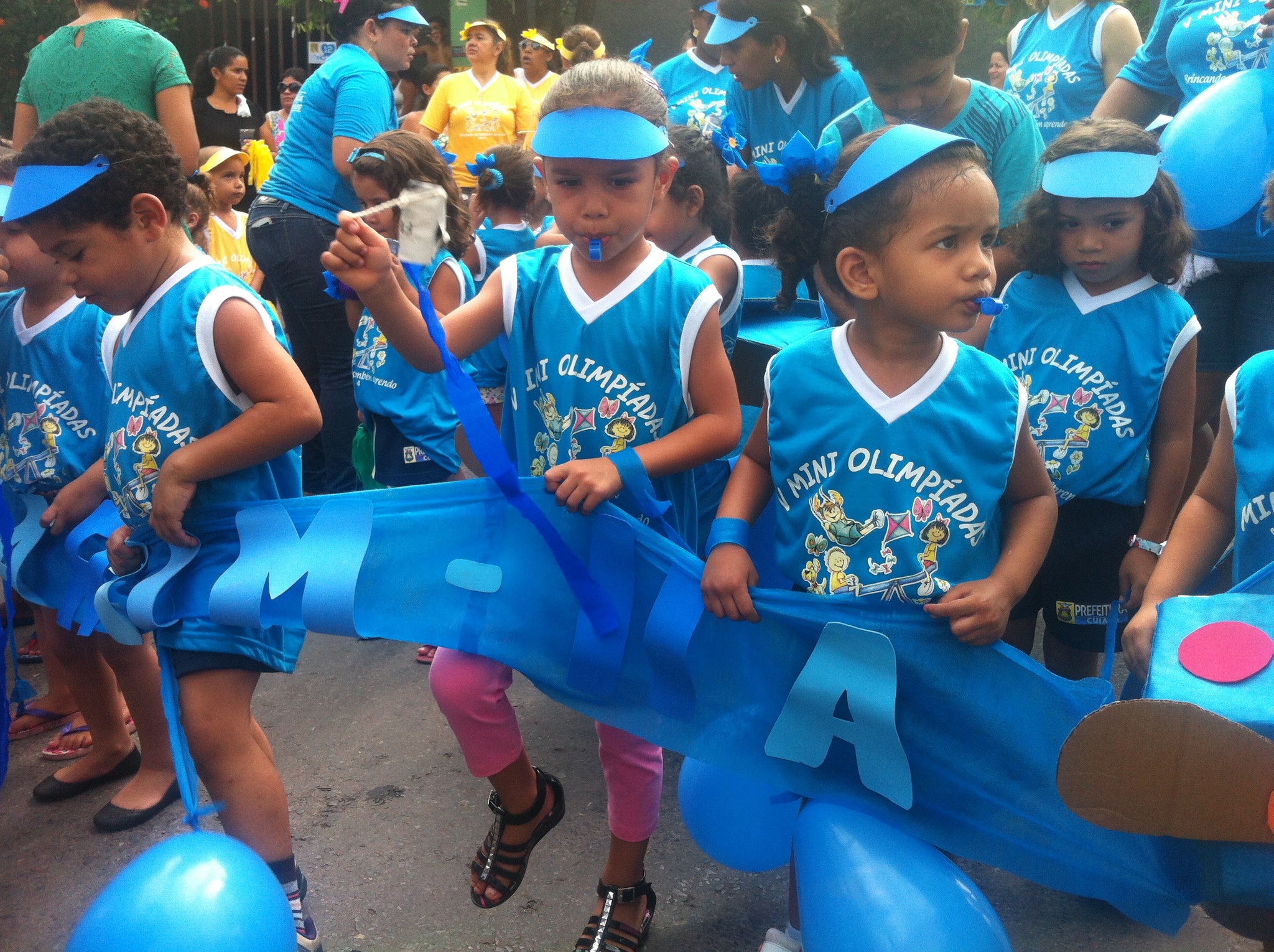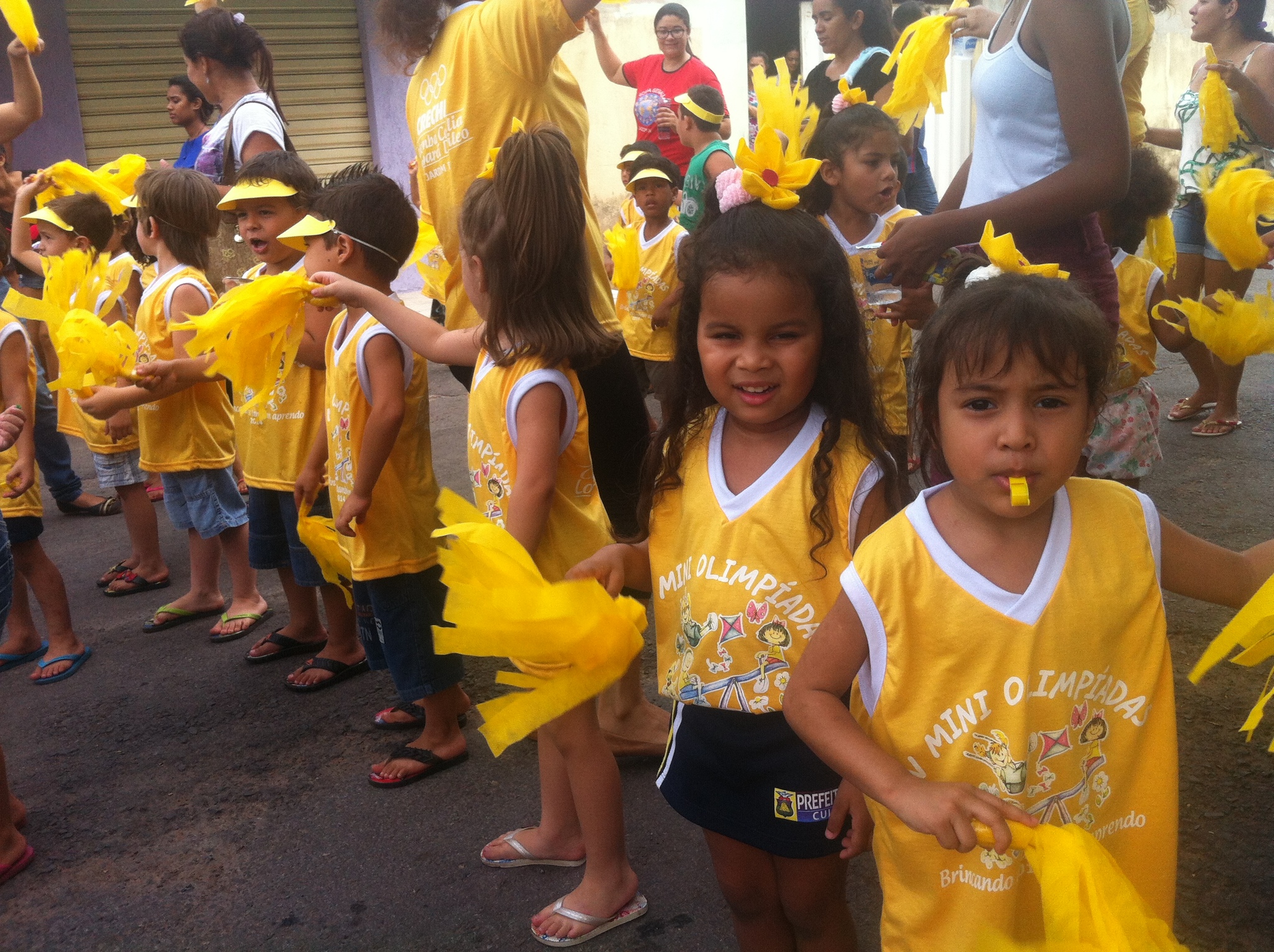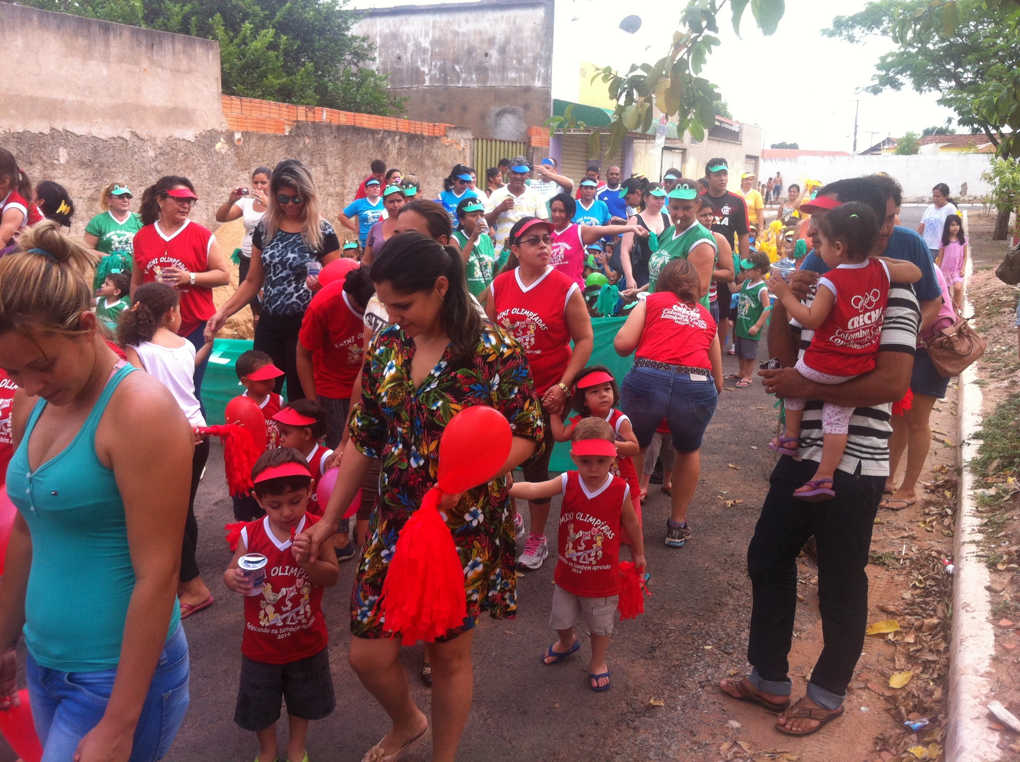 Pelo menos 100 alunos, com idade de 2 e 3 anos, participaram da abertura da olimpíada. Vestidos com camisetas nas cores primárias (verde, vermelho, azul e amarelo) os alunos percorreram as ruas do entorno da creche. “A caminhada é uma forma de divulgar para a comunidade o trabalho que é realizado na creche e trazer os pais para dentro da instituição”, explica a diretora da creche, Mara Marcia Gomes.