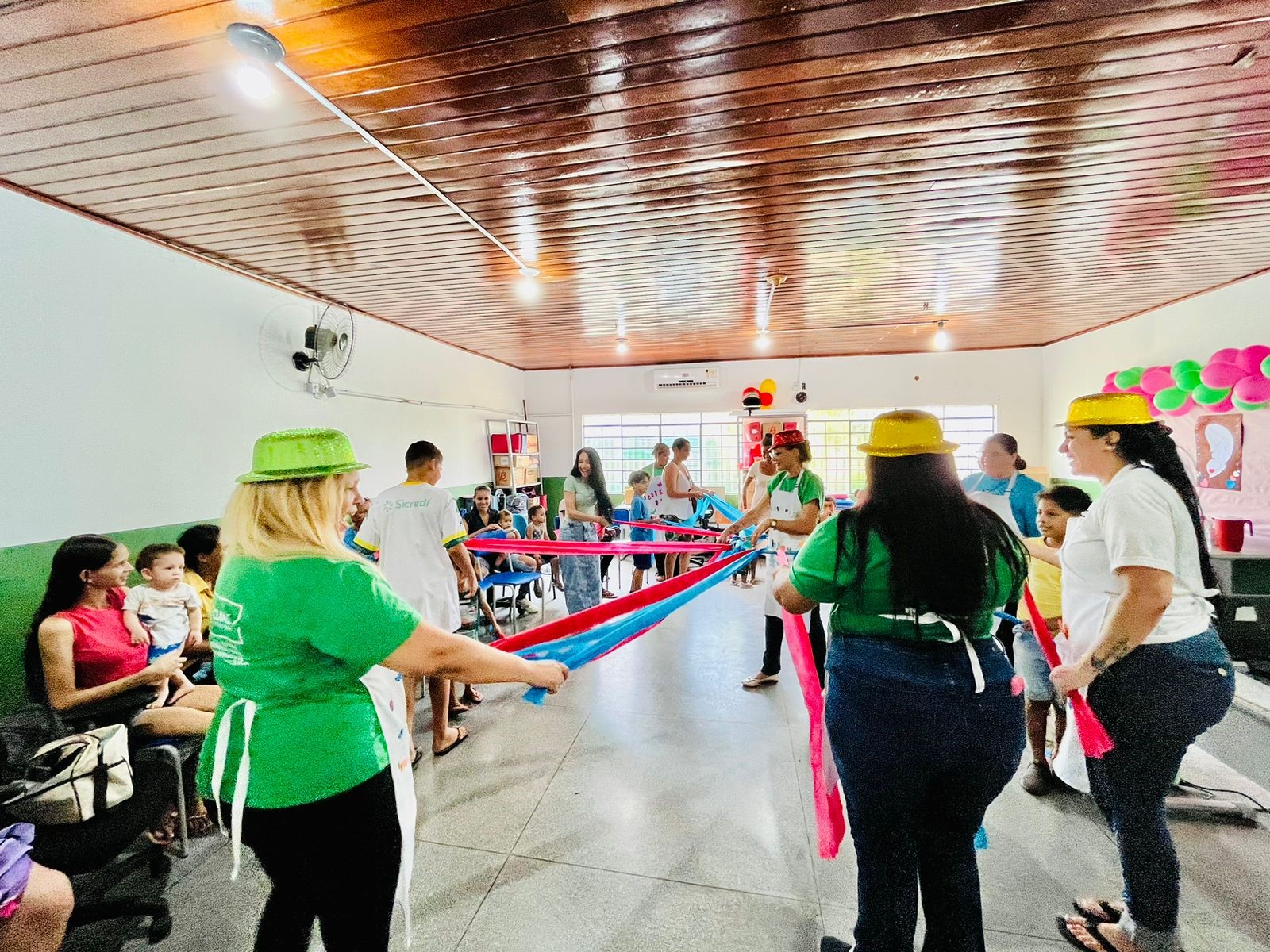 Tudo foi cuidadosamente preparado para receber as mães, gestantes e crianças atendidas pelo programa Criança Feliz, nesta quarta-feira (16), na sede do Centro de Referência de Assistência Social (CRAS) do bairro CPA. Com a sala cheia e um ambiente repleto de harmonia e alegria, as crianças aprenderam sobre a importância da música desde o ventre materno. Aproveitando as comemorações do Dia das Crianças, celebrado no dia 12 de outubro, os participantes foram presenteados com guloseimas, pipocas e belas canções conhecidas como Cantigas de Roda, reconhecendo o valor dessas canções tradicionais no repertório infantil. Elas proporcionam calma, alegria e uma oportunidade única de interação.