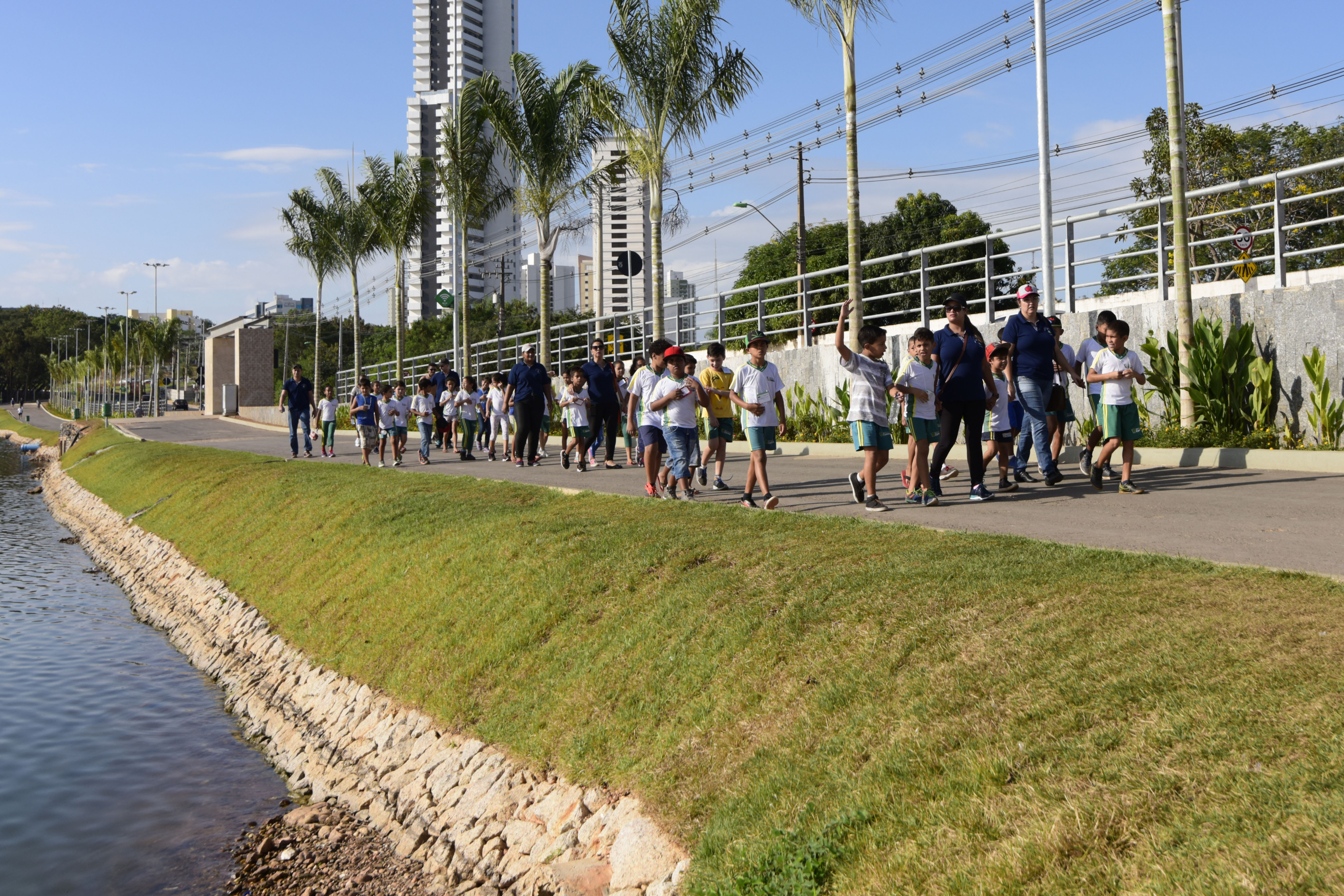 Mais de 200 crianças da rede municipal de ensino vivenciariam o Parque das Águas por uma ótica diferenciada. Ao longo da manhã desta segunda-feira (05), elas celebraram o Dia Mundial do Meio Ambiente com um passeio ecológico pelo espaço. Ao lado de mais 50 alunos do Centro Integrado Pedagógico de Ensino Especial, elas tiveram uma aula de educação ambiental, descobrindo quais espécies fazem envolvem a lagoa e sua importância para a sobrevivência da vida humana, como um todo.
