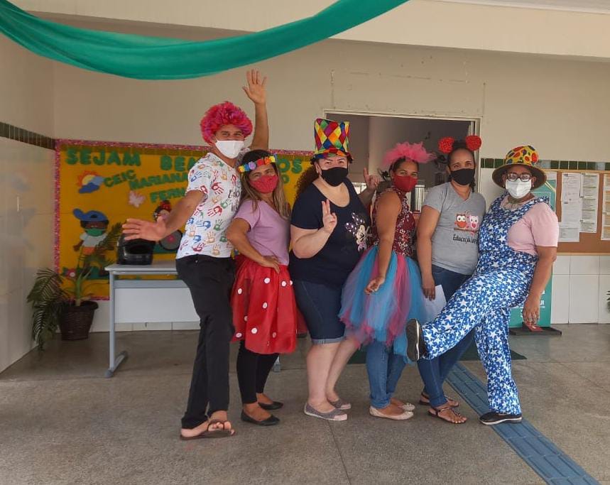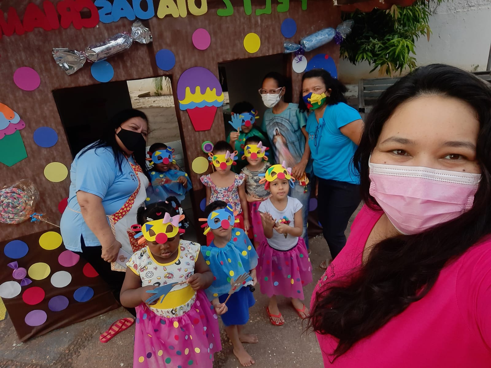 No Centro Municipal de Educação Infantil (CMEI) Cel. José Meirelles as comemorações também tiveram início nesta semana. Com o tema ‘Sítio do Pica Pau Amarelo’, a unidade junto com as crianças está resgatando as brincadeiras regionais como amarelinhas, pique-esconde, brincadeiras de roda, ciranda e outras. “Na semana que vem entre as atividades que estão sendo organizadas, as crianças farão desenhos, colagens e com objetos trazidos de casa, como caixas de leite, vão construir brinquedos alternativos”, contou a diretora Cláudia Araújo dos Santos. A unidade com 226 crianças matriculadas está funcionando todos os dias, com grupos alternados. Cerca de 60% dos nossos alunos estão em atividades presenciais. Para atender os que estão em atividades remotas, os professores reservam uma parte do dia para interagir com as crianças.