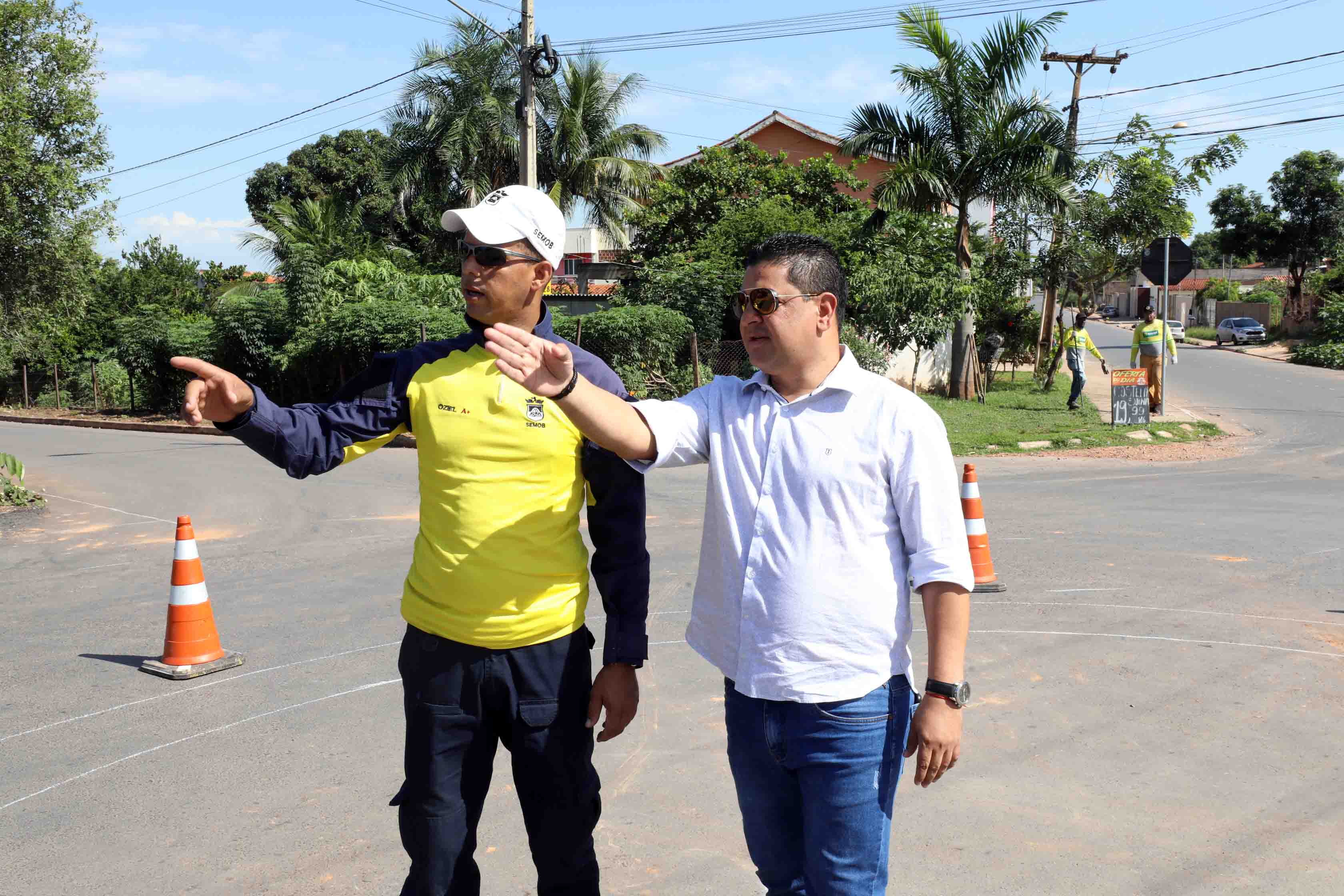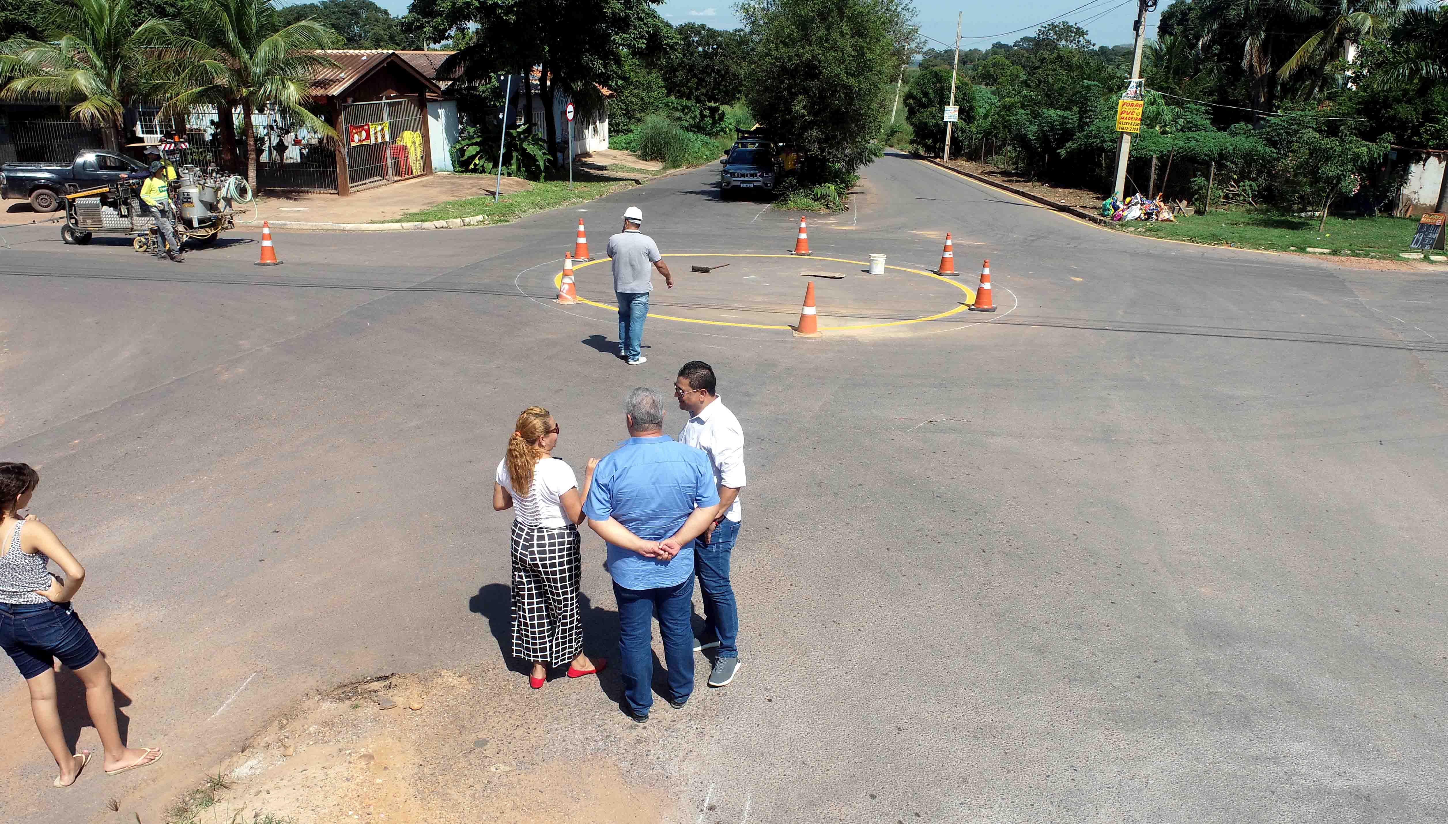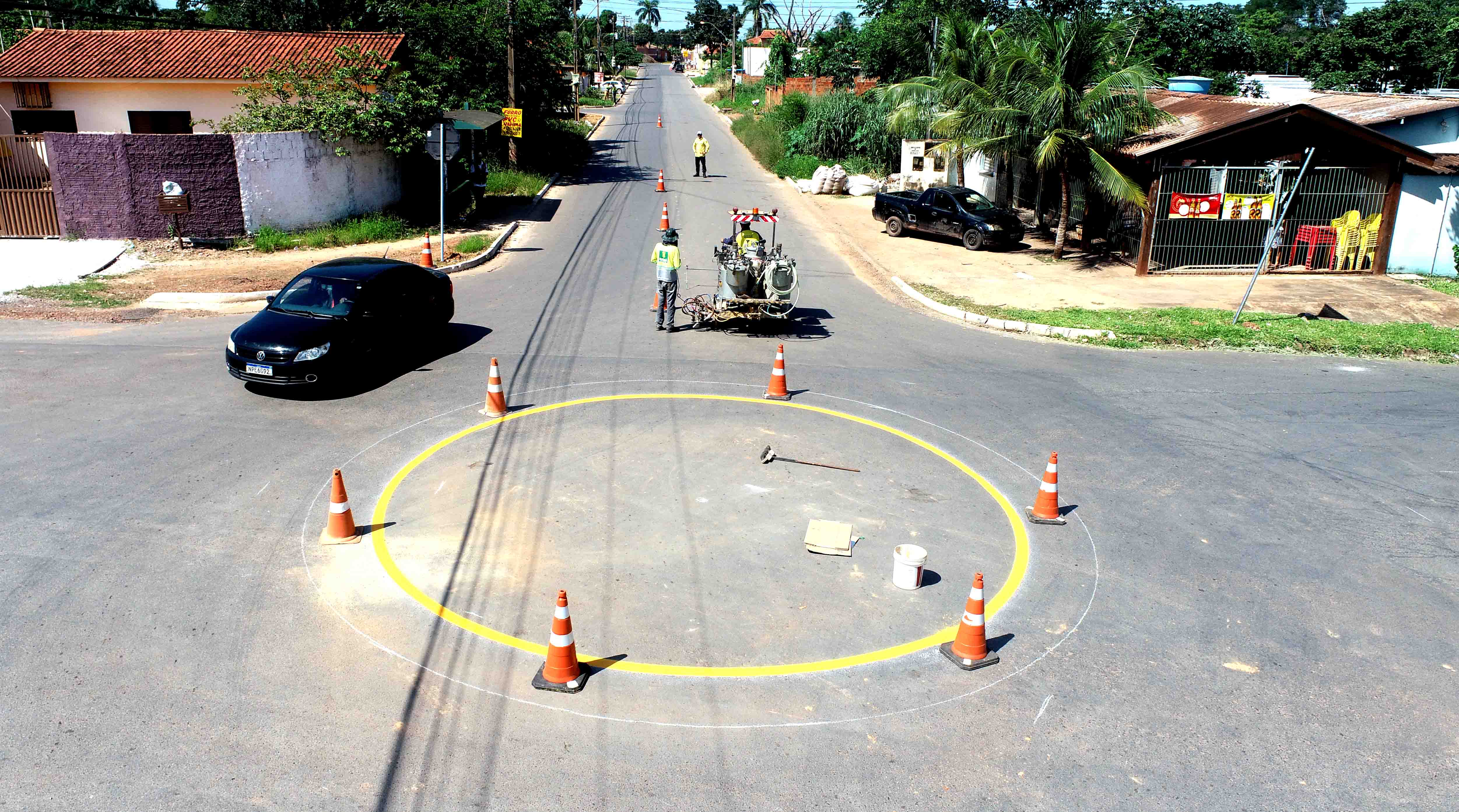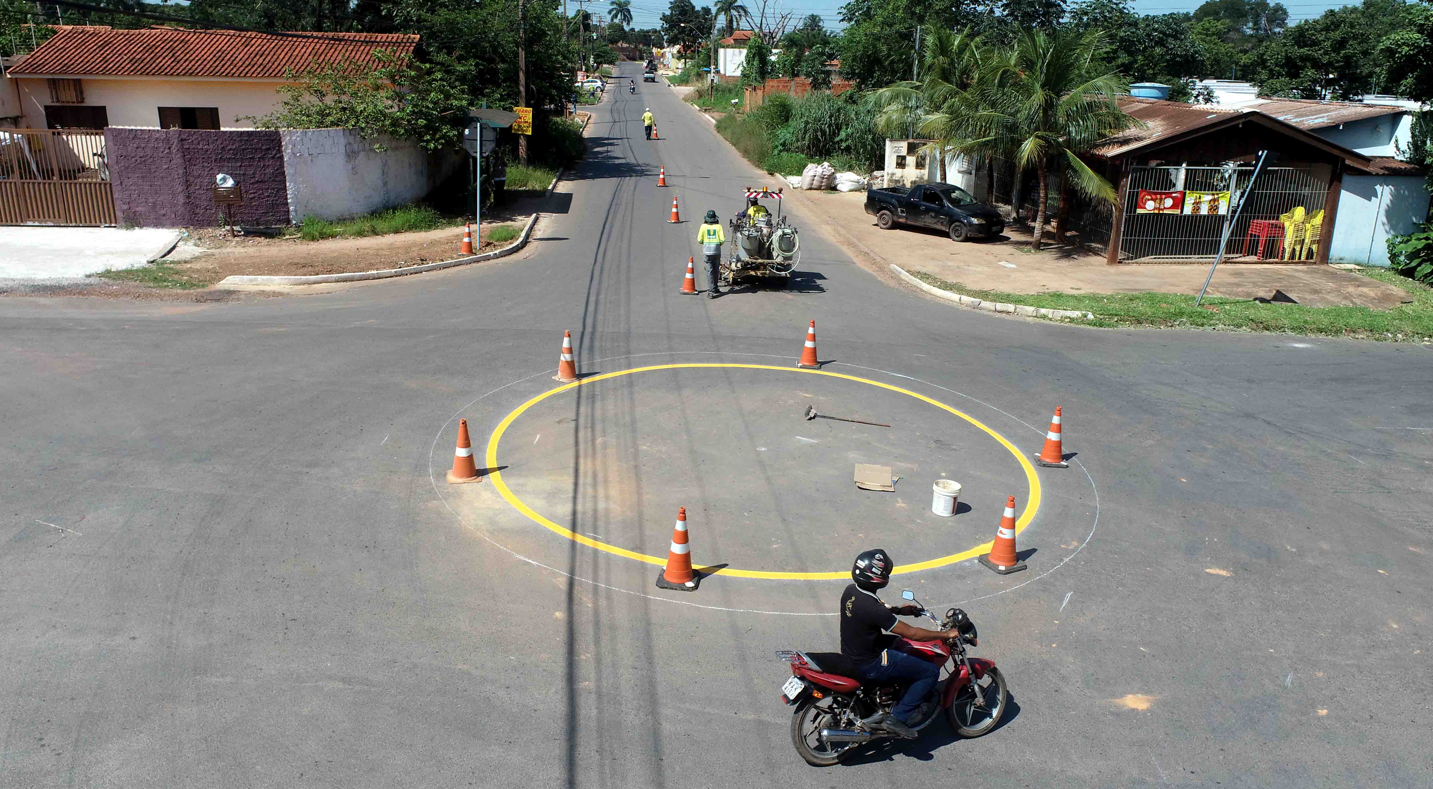 A Prefeitura de Cuiabá vem realizando obras nos quatro cantos da Capital e levando mais qualidade de vida à população dos bairros mais distantes da área central. As regiões do Jardim Paulicéia, Parque Cuiabá e Real Parque foram alguns deles. Nesta terça-feira (5), a Prefeitura de Cuiabá, por meio da Secretaria de Mobilidade Urbana (Semob), atendeu a uma solicitação da população do bairro Real Parque, e implantou uma rotatória de tachões, mais 16 placas de sinalizações, 4 aproximações (divisores de fluxo) e 3 linhas de bordo. Ainda, nesta semana serão construídas faixas de pedestres e demais sinalizações em conformidade com o Código de Trânsito Brasileiro (CTB).